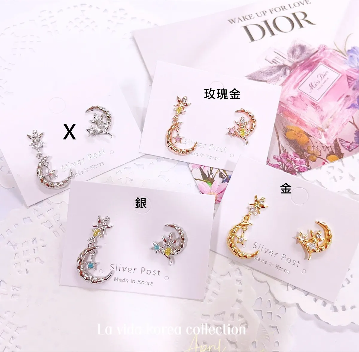 TA1107鑽月精靈不對稱耳環 金 銀 玫瑰金 耳針$250 耳夾(螺旋夾)$270