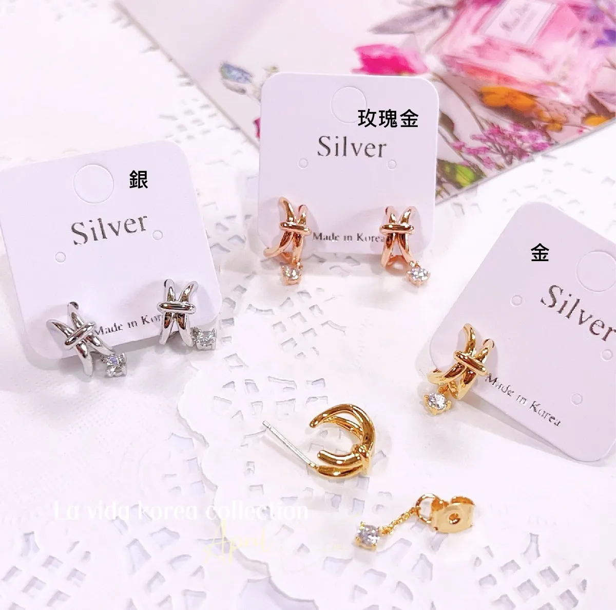 TA1122細緻小搖曳鋯石耳環(只有耳針) 金 銀 玫瑰金 耳針$220 耳夾(矽膠夾)$240