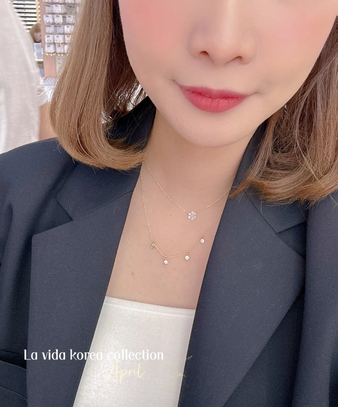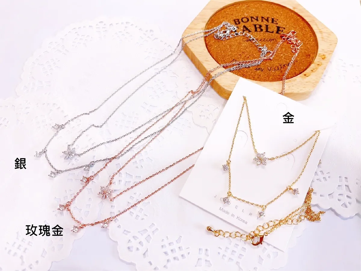 TA1141推薦款層次感雙鍊鋯石小花項鍊 金 銀 玫瑰金 $299