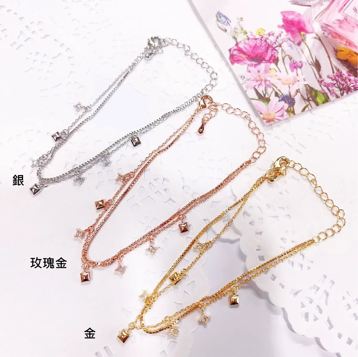 TA1156精緻鑽菱雙鍊手鍊 金 銀 玫瑰金 $277