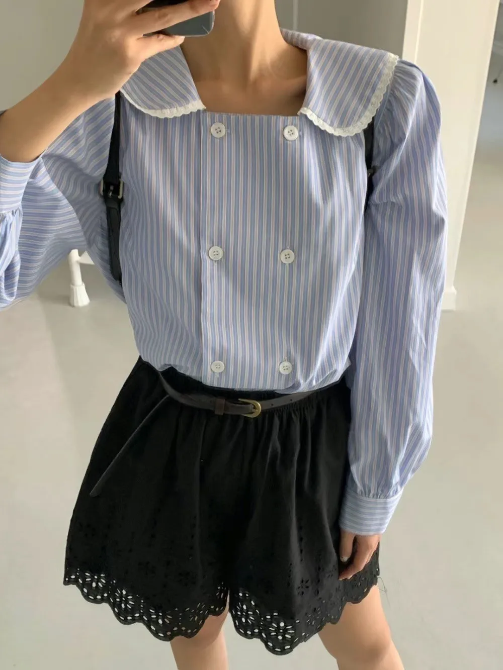 棉+聚酯 雙排扣 方領蕾絲滾邊 排釦穿脫 春季合適
