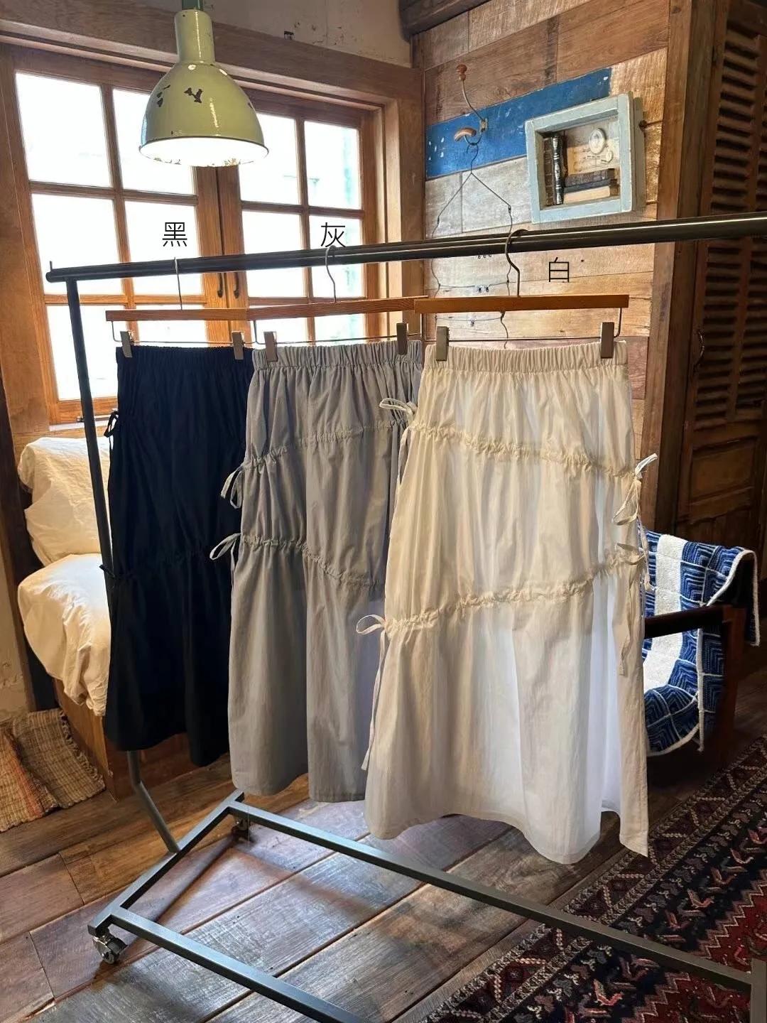 棉+尼龍 全腰鬆緊 側面有蝴蝶結 日常不易皺 有內裡 L號友善 無口袋