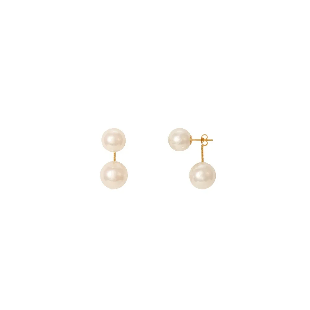 金色款的金屬,只有耳針款,前後疊穿戴,前後各一個珍珠