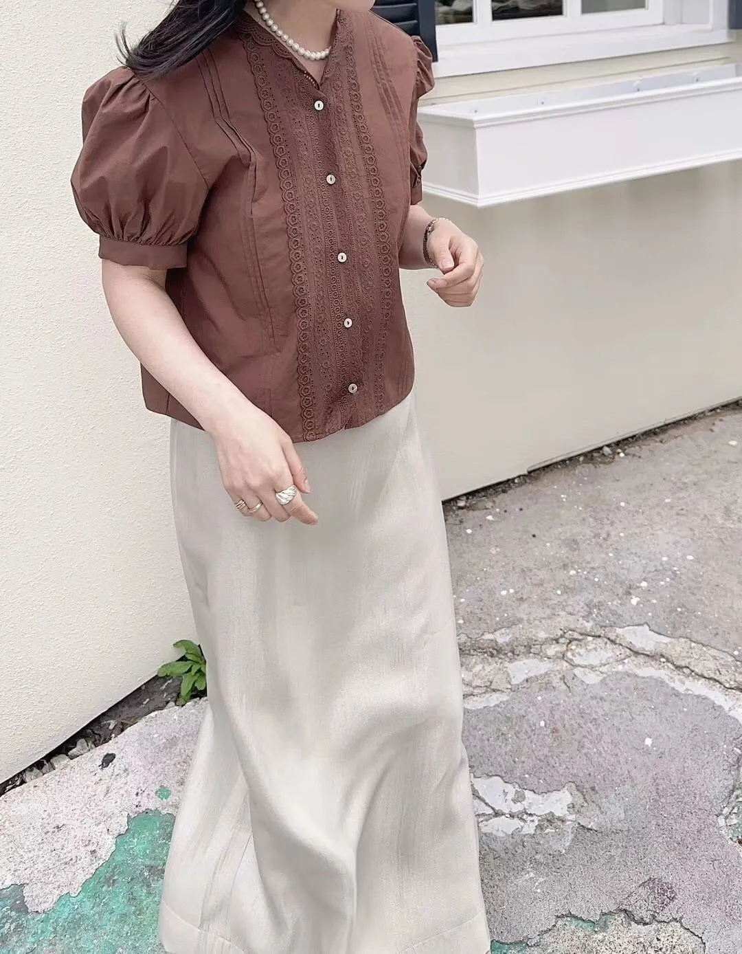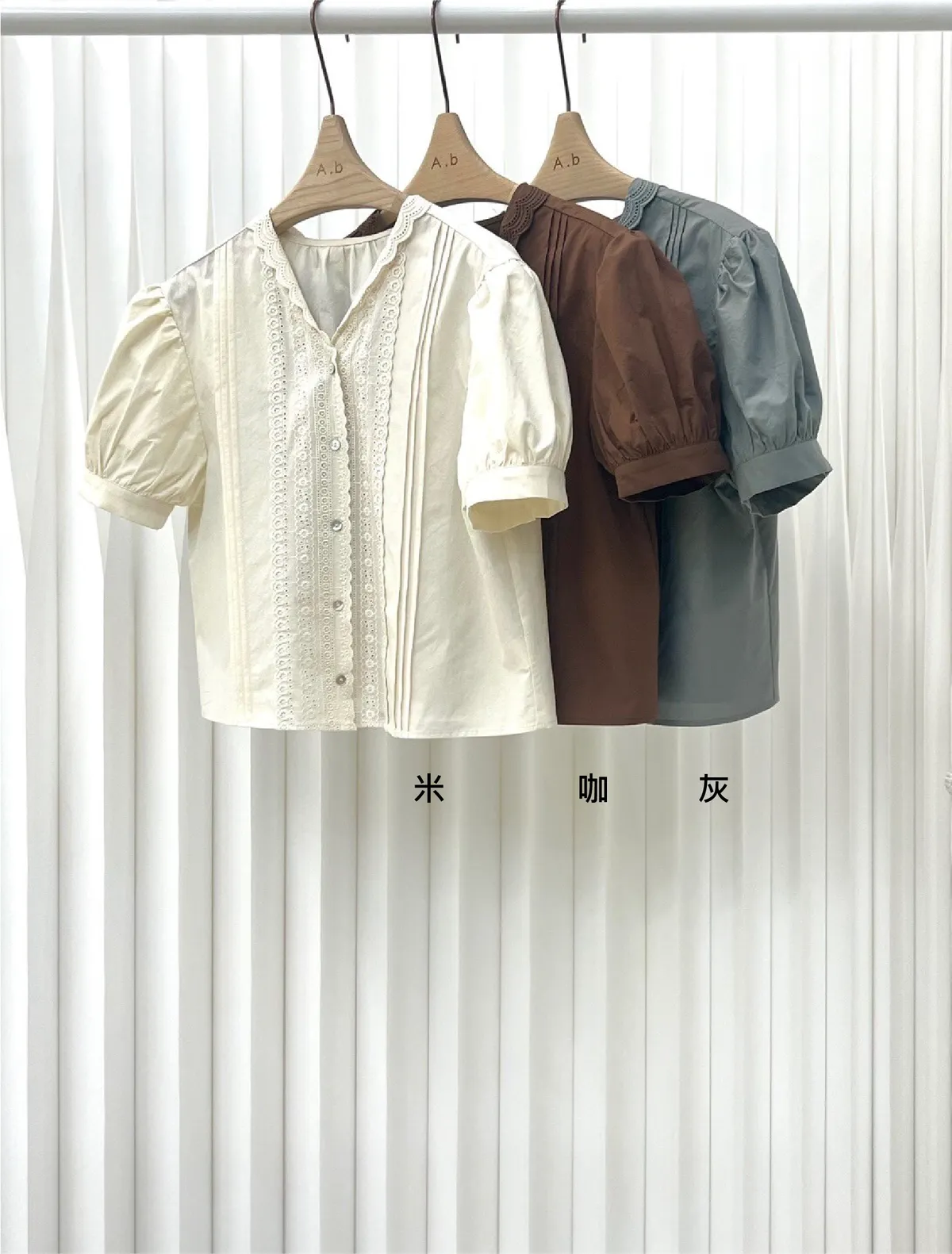 棉 花朵秀氣翻V領 微涼感 薄款適合夏天
