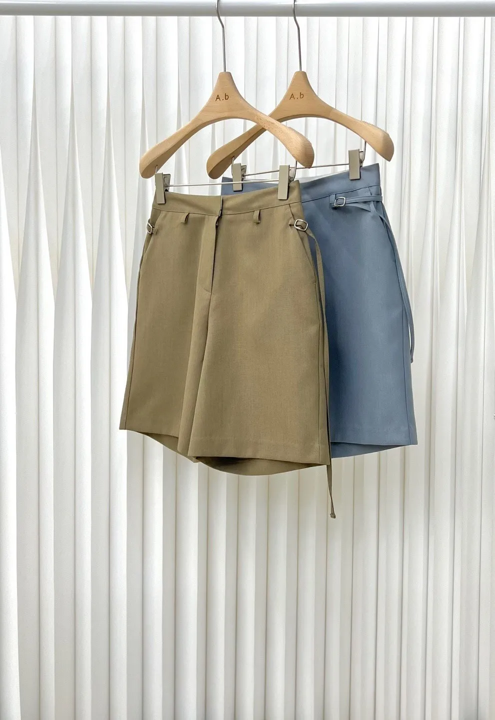 人造絲+聚酯 涼感西裝面料 細腰帶 拉鍊穿脫 有口袋