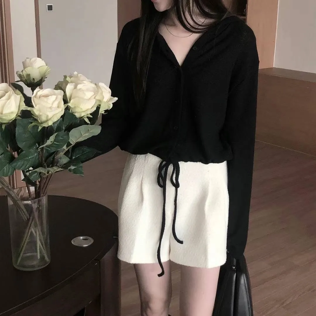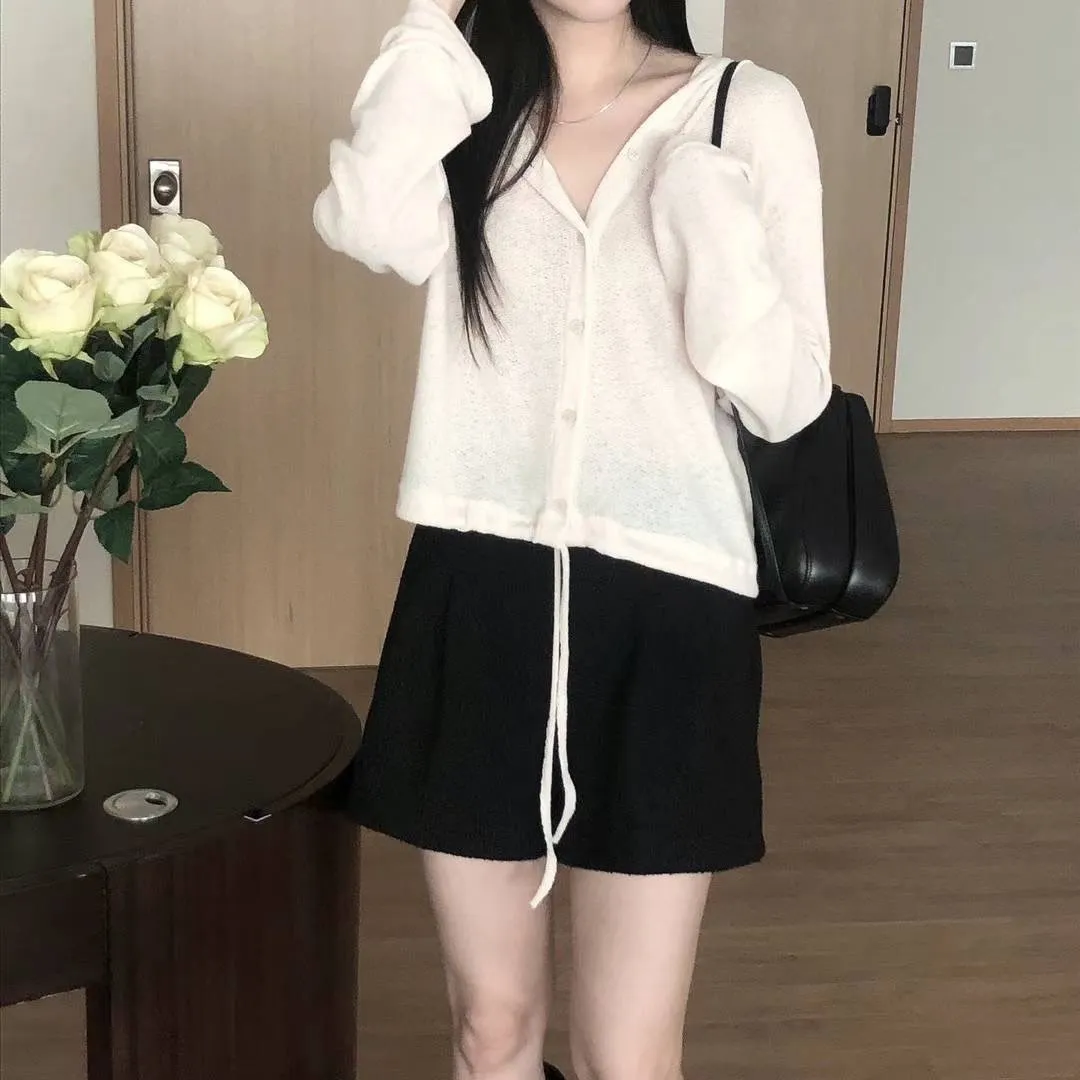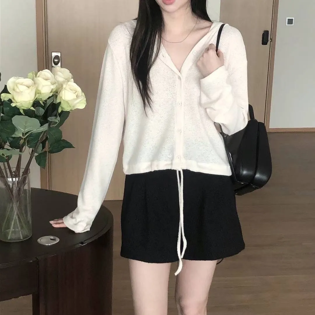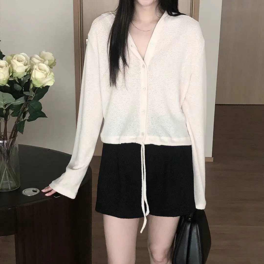 針織 體感舒適 柔軟有彈性 下擺綁帶 釦子穿脫 連帽設計