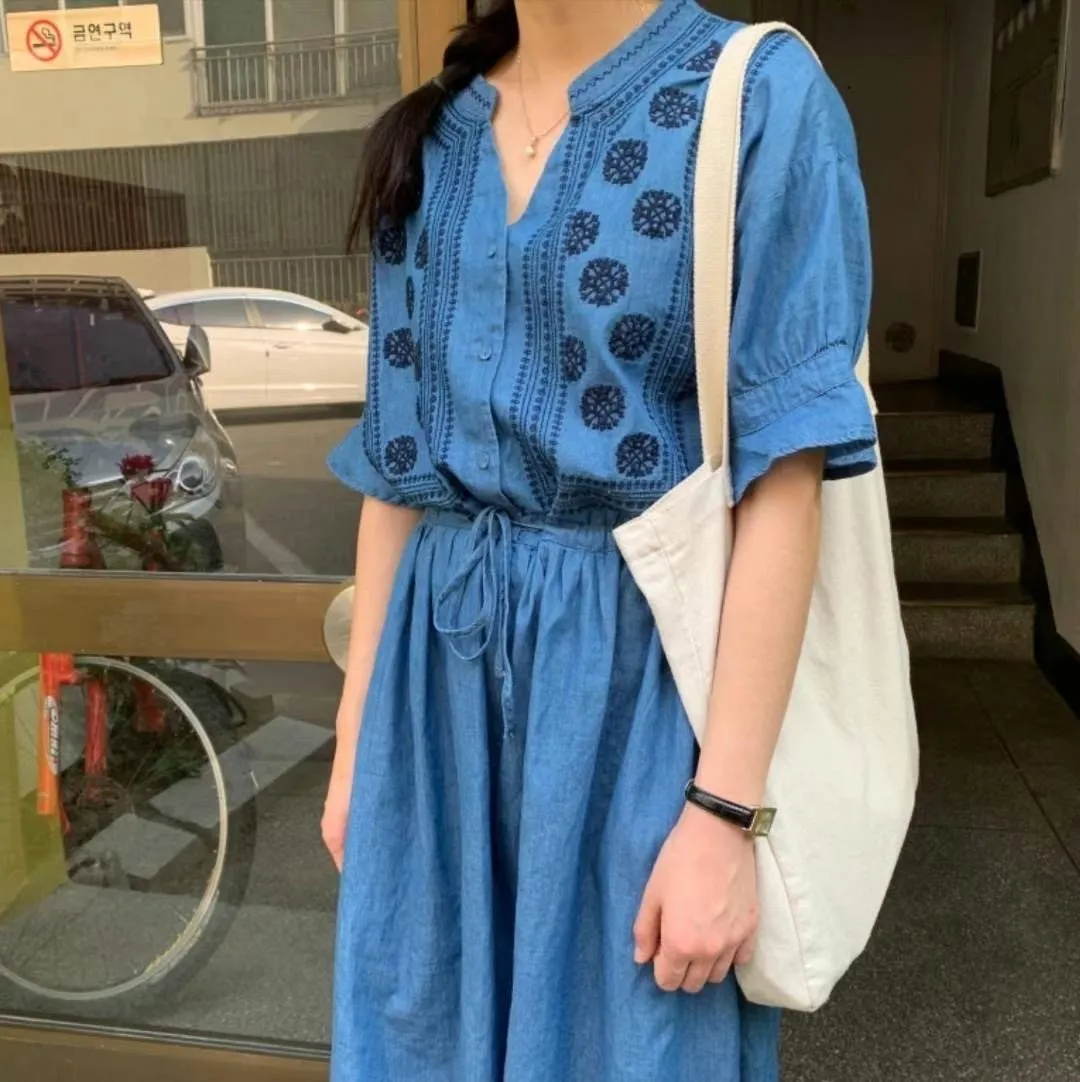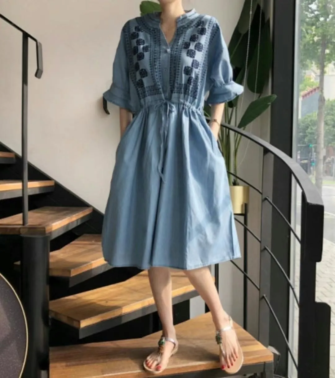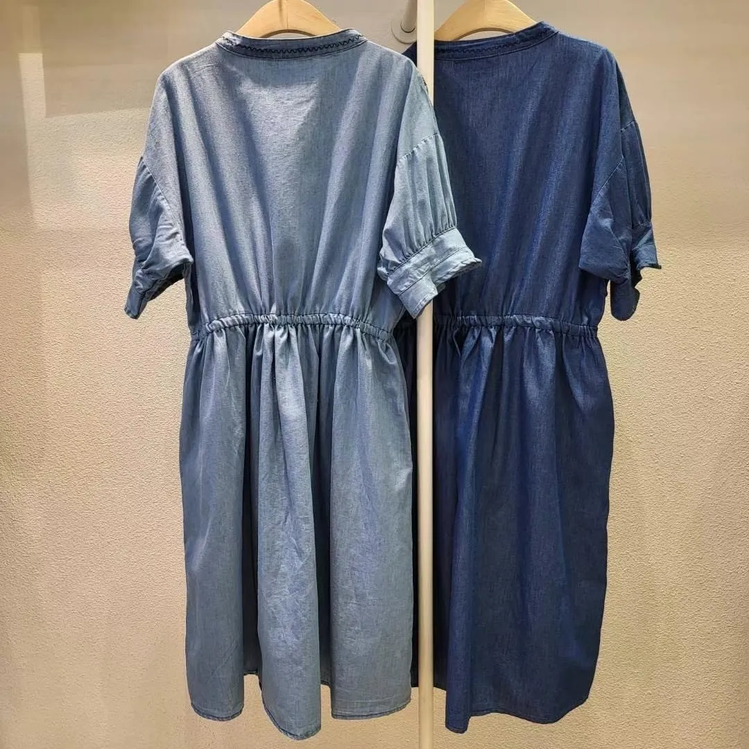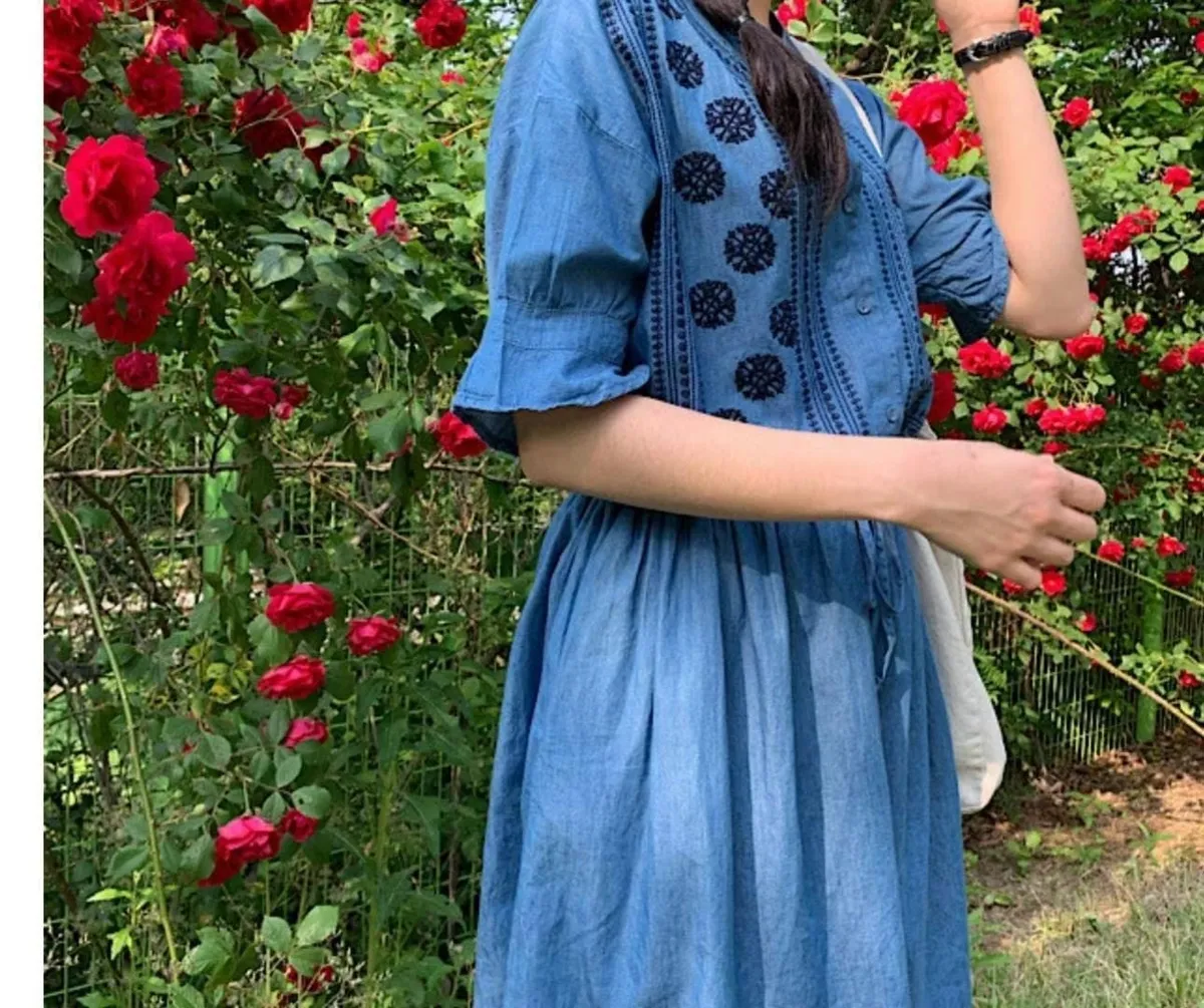 TA1408方塊刺繡荷葉袖洋裝 淺藍 深藍 官網價$950 線上價$920