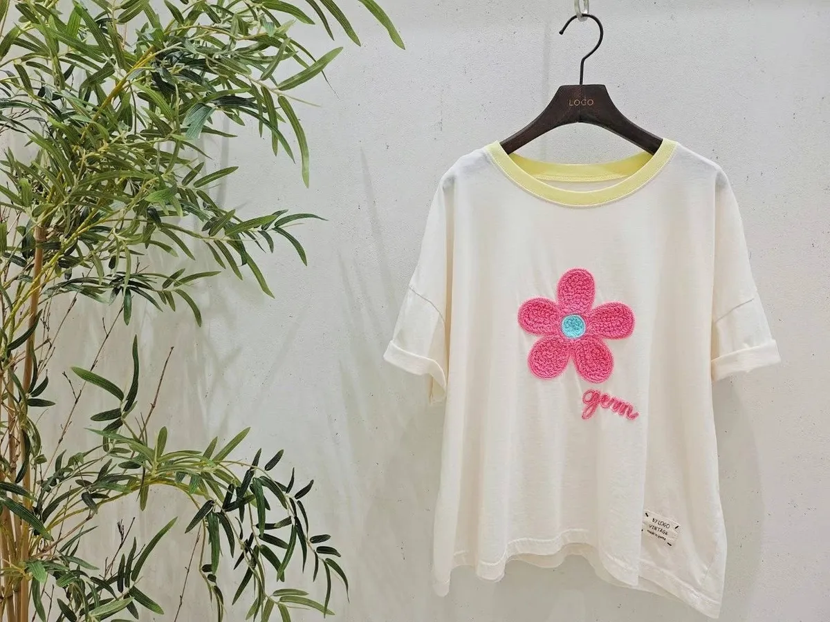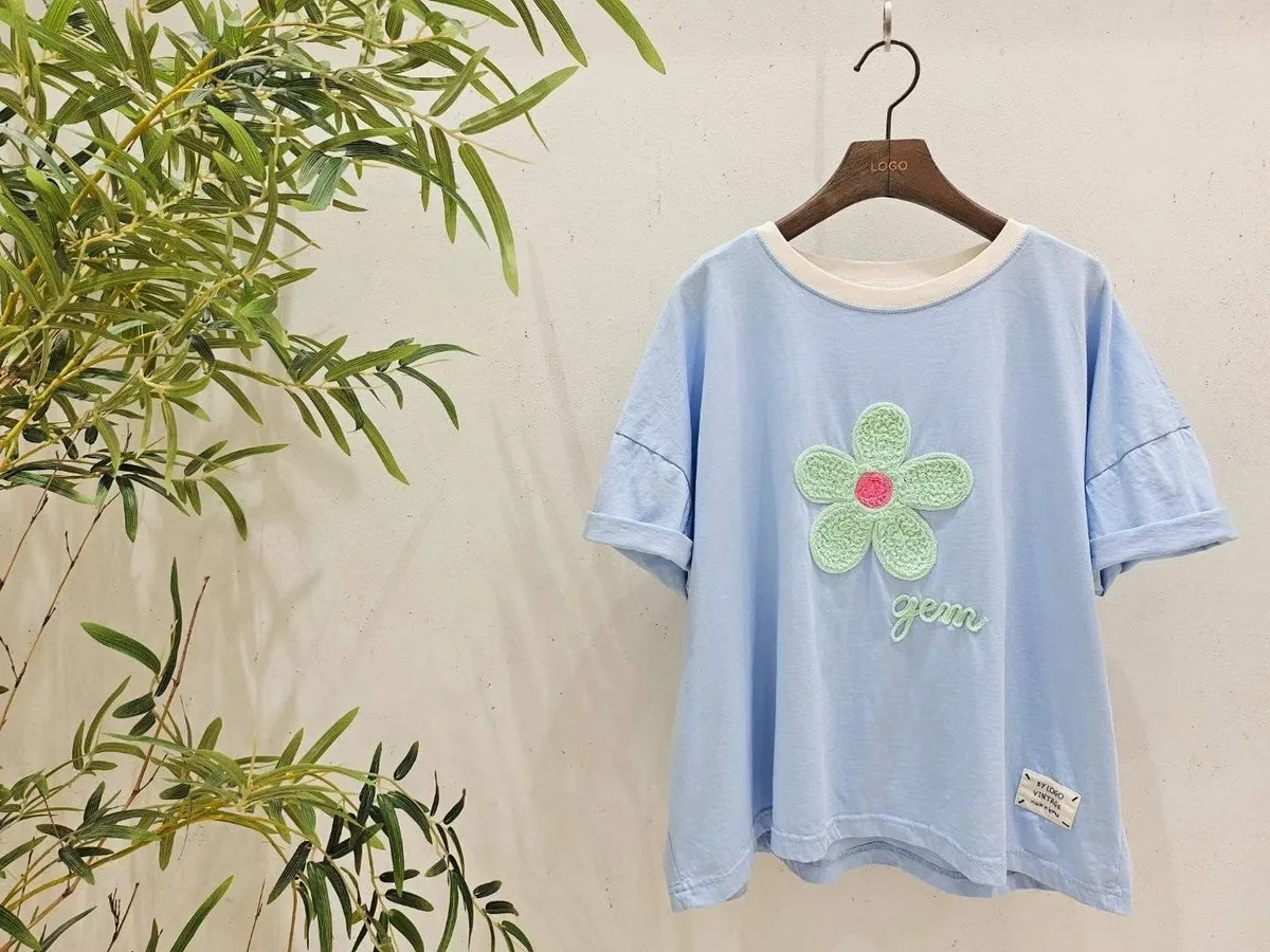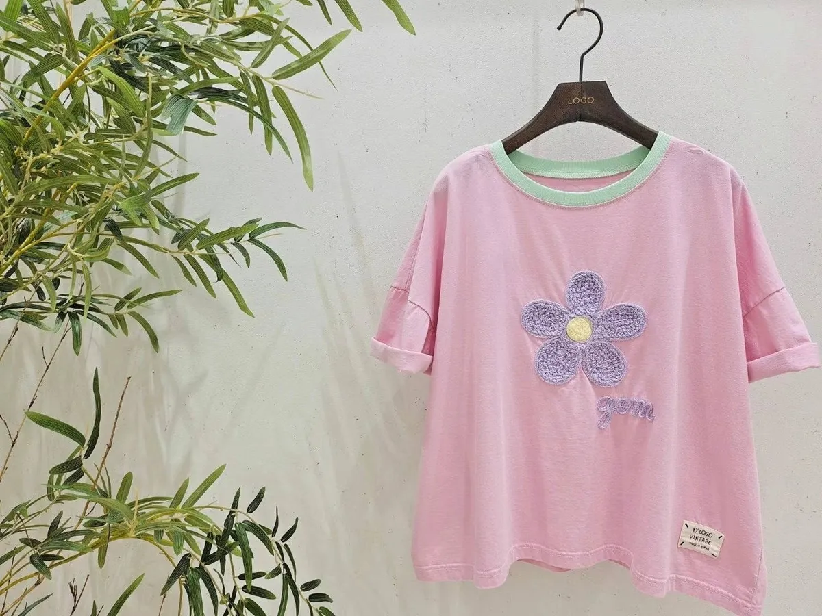 TA1410超薄款刺繡小花夏日Tshirt(logo) 白 藍 粉 官網價$670 線上價$640