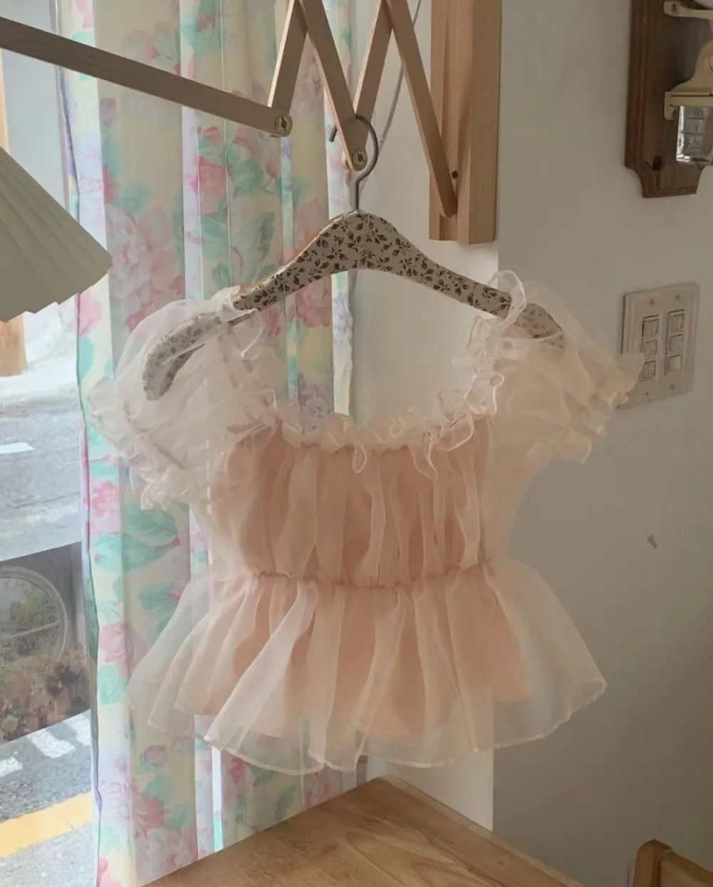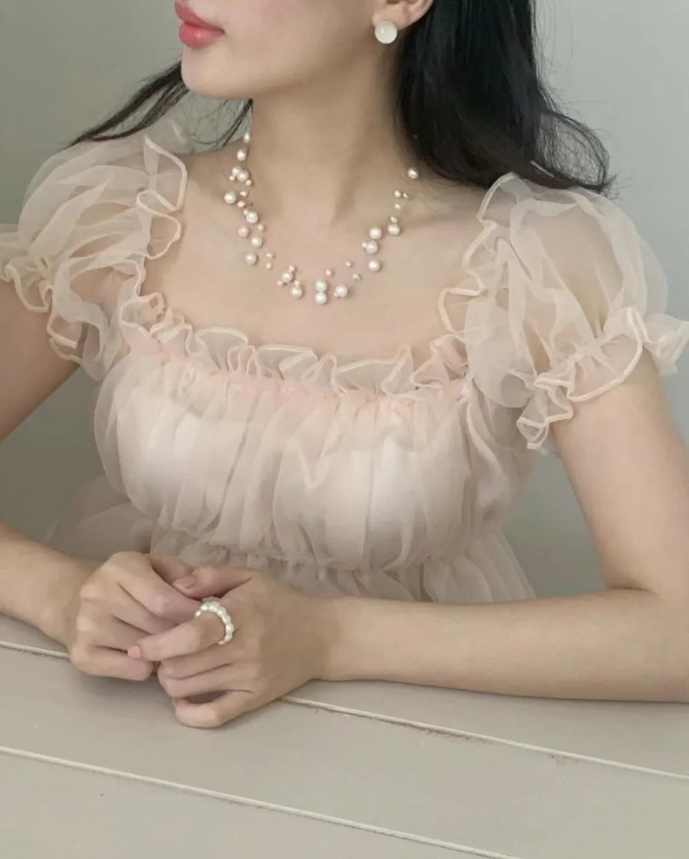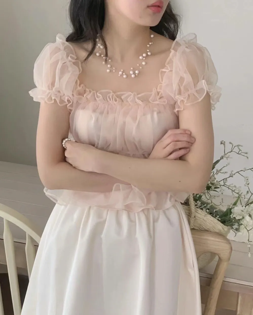 聚酯+歐根紗 彈性鬆緊 可拉一字領 領口袖口有鬆緊 超敏肌略過