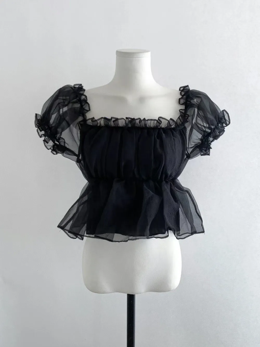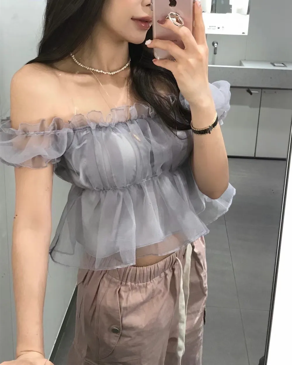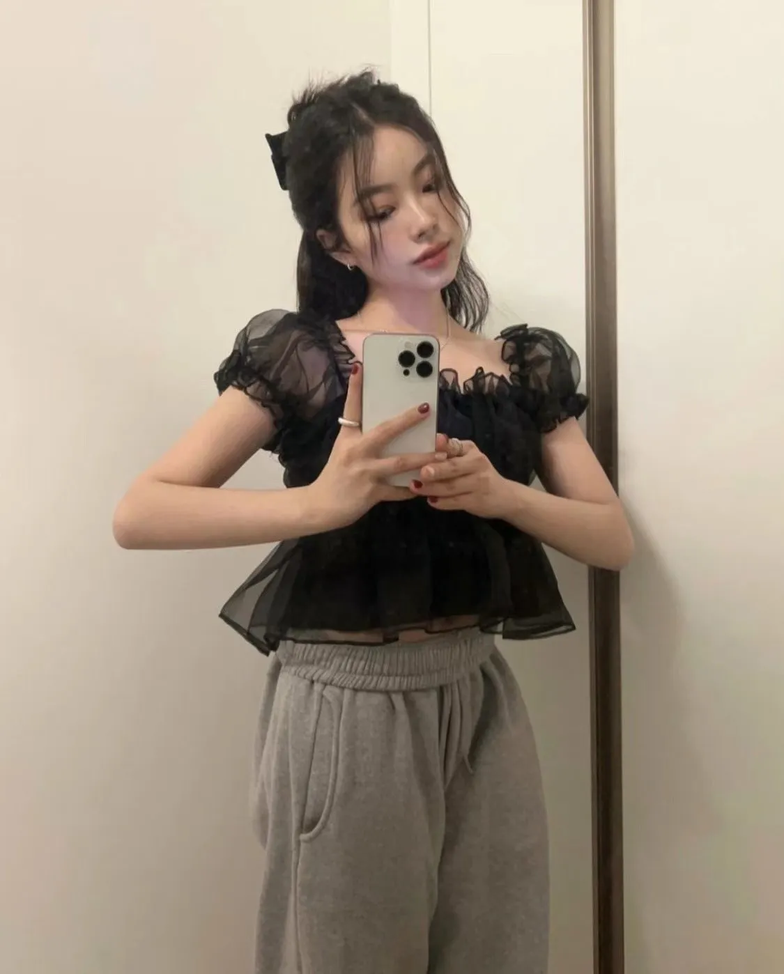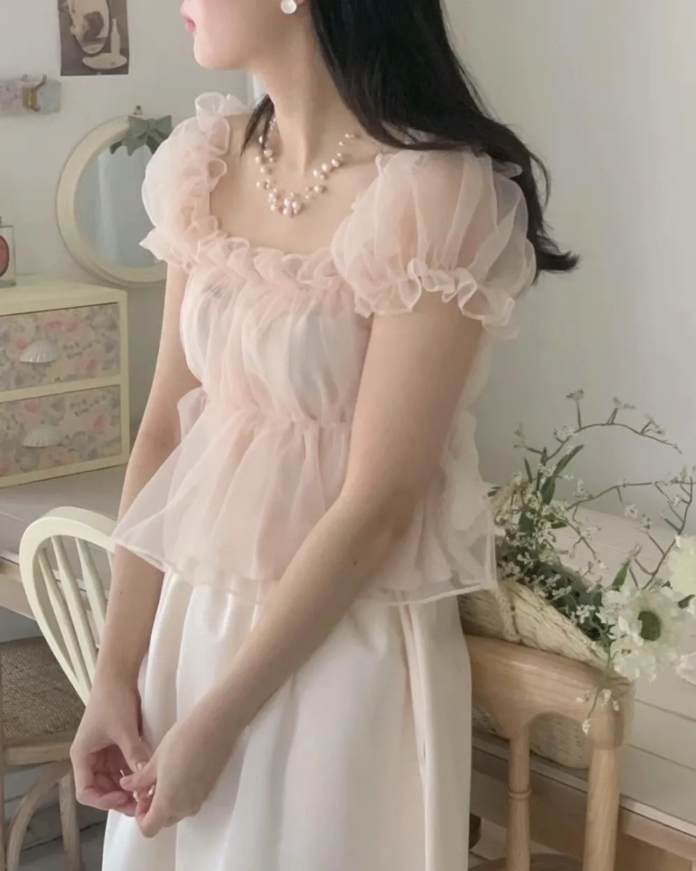 聚酯+歐根紗 彈性鬆緊 可拉一字領 領口袖口有鬆緊 超敏肌略過