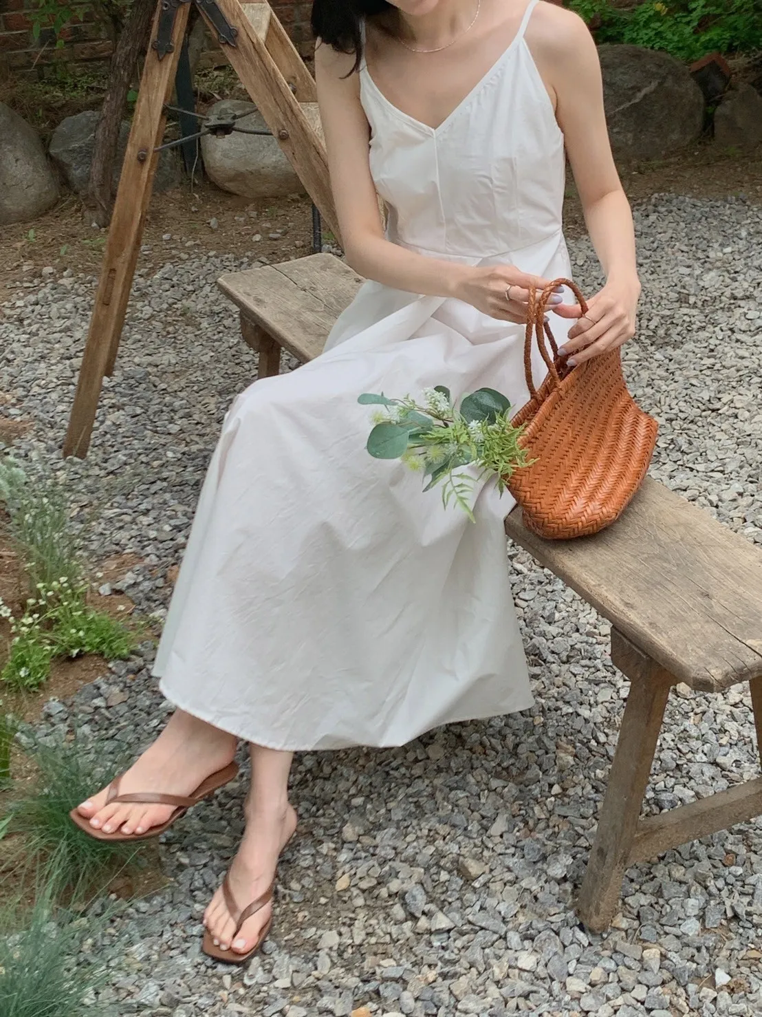 TA1427特價V領細肩帶白色洋裝 S M $720