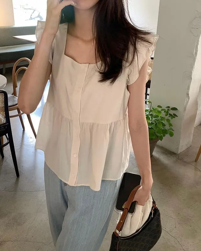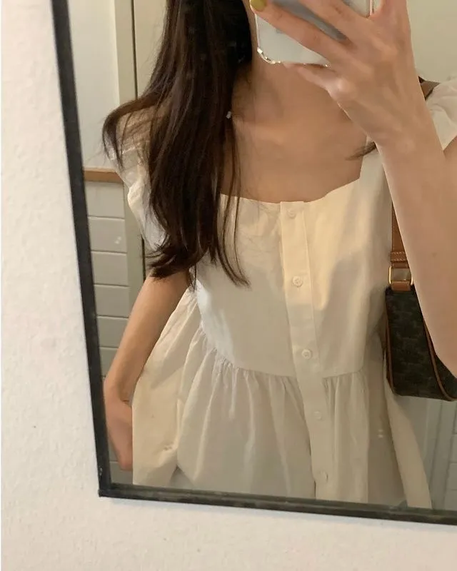 棉 親膚透氣 薄款輕盈 排釦穿脫 娃娃裝下擺 藏肉顯瘦