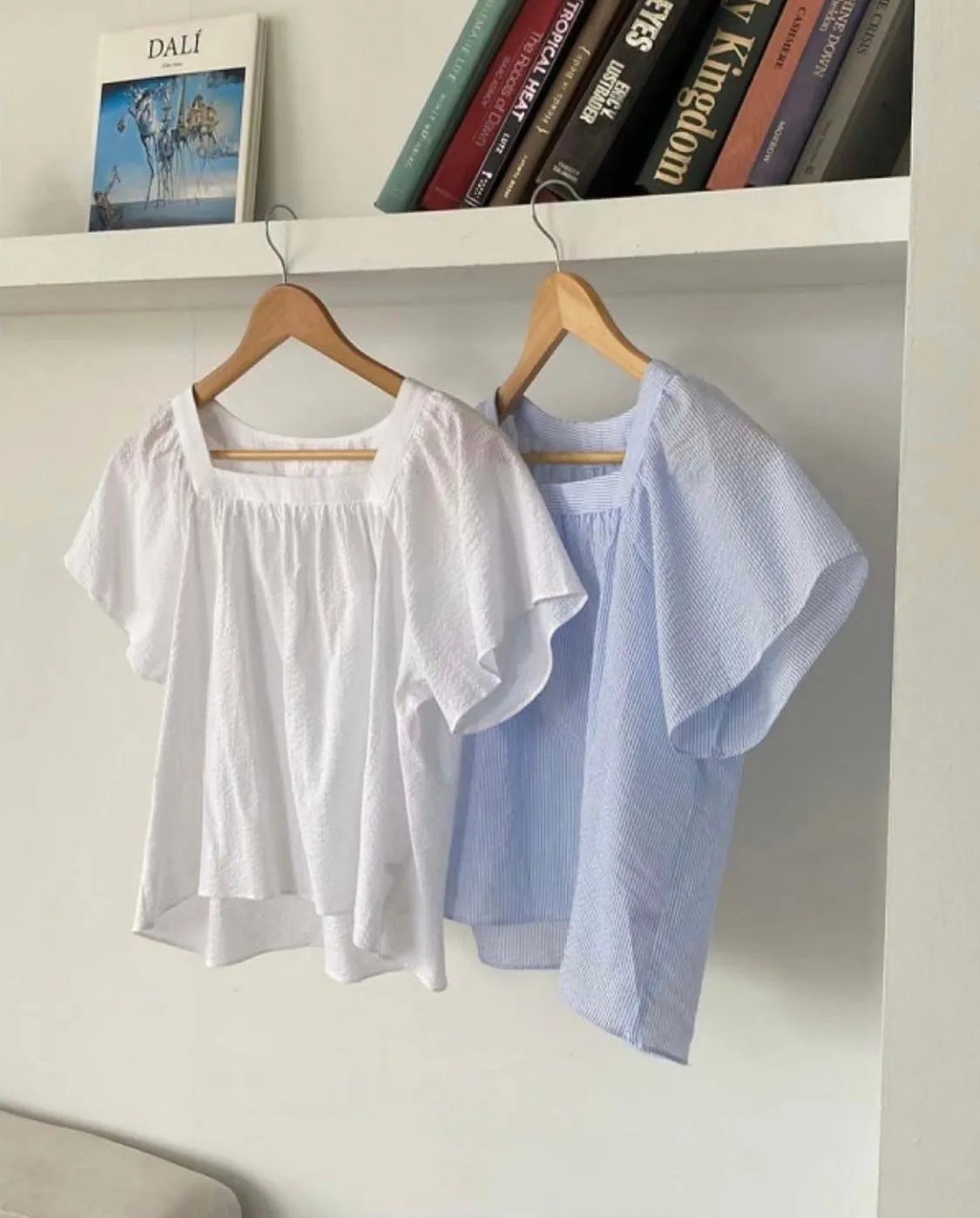 TA150方領娃娃裝兩面穿上衣 白 藍 官網價$750 線上價$720
