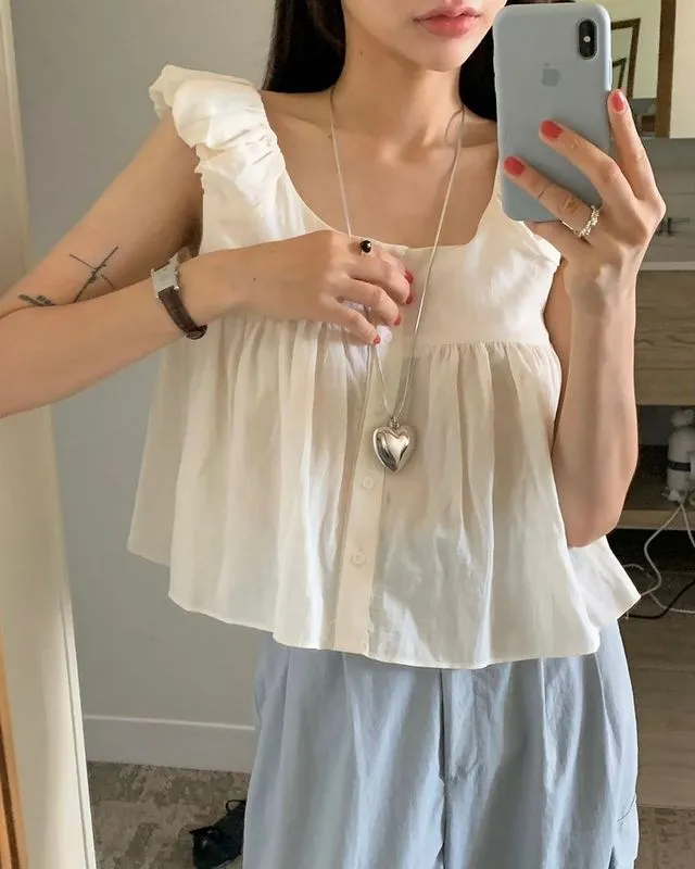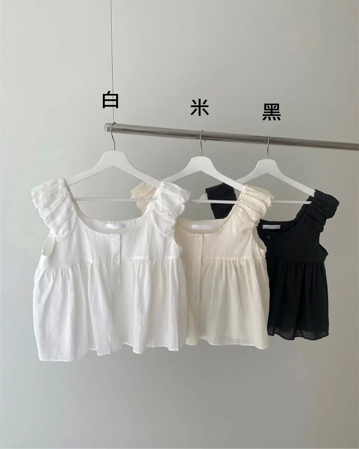TA154薄款立體層次感無袖娃娃裝上衣 白 米 黑 官網價$820 線上價$790
