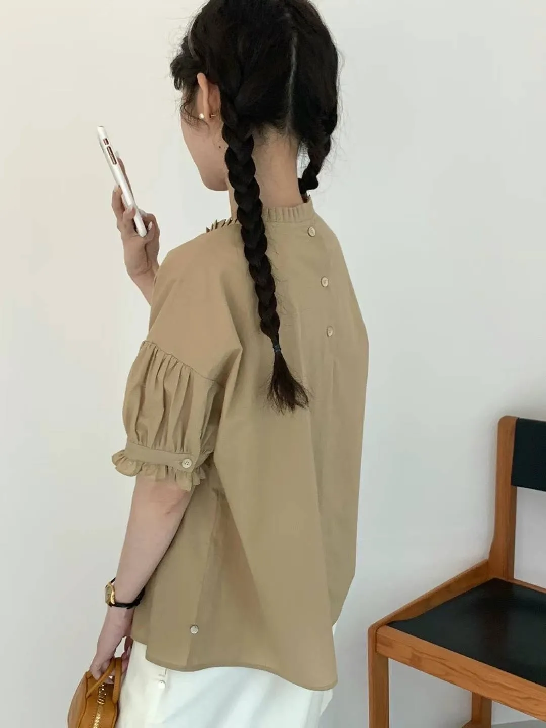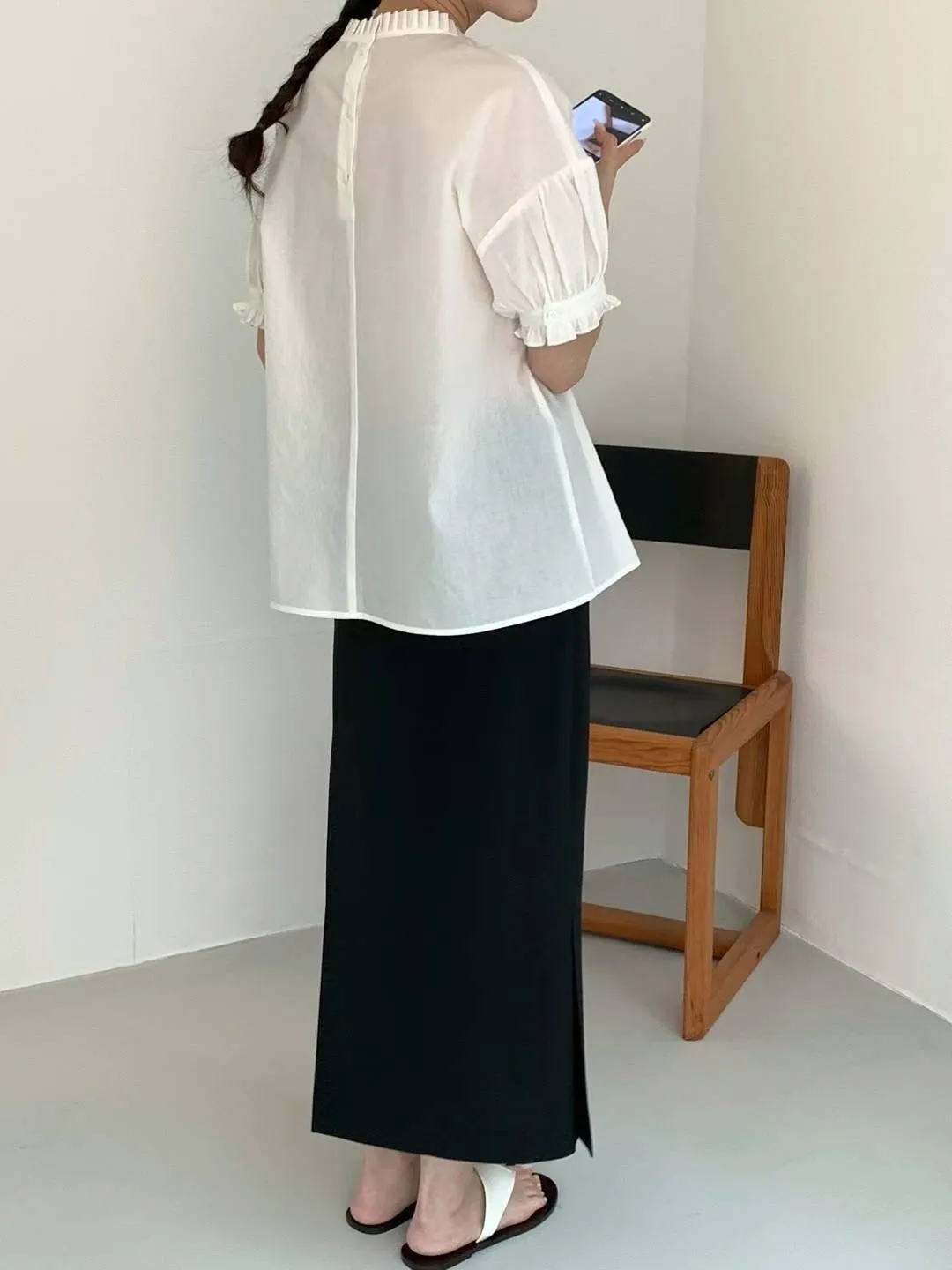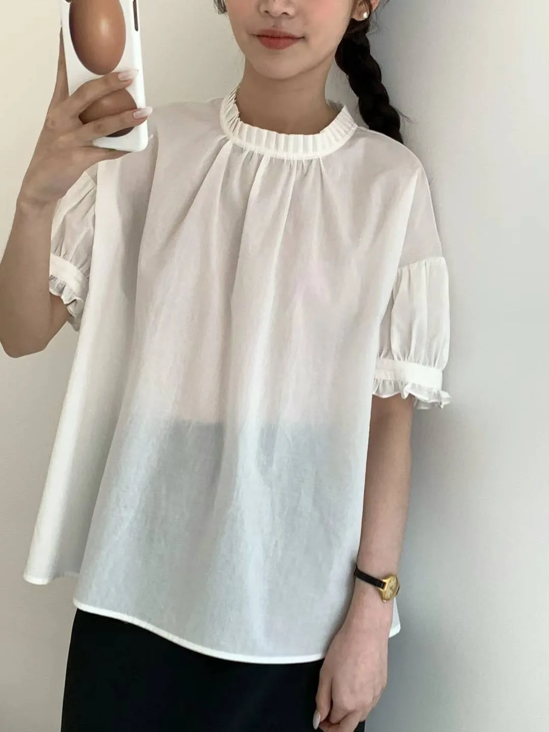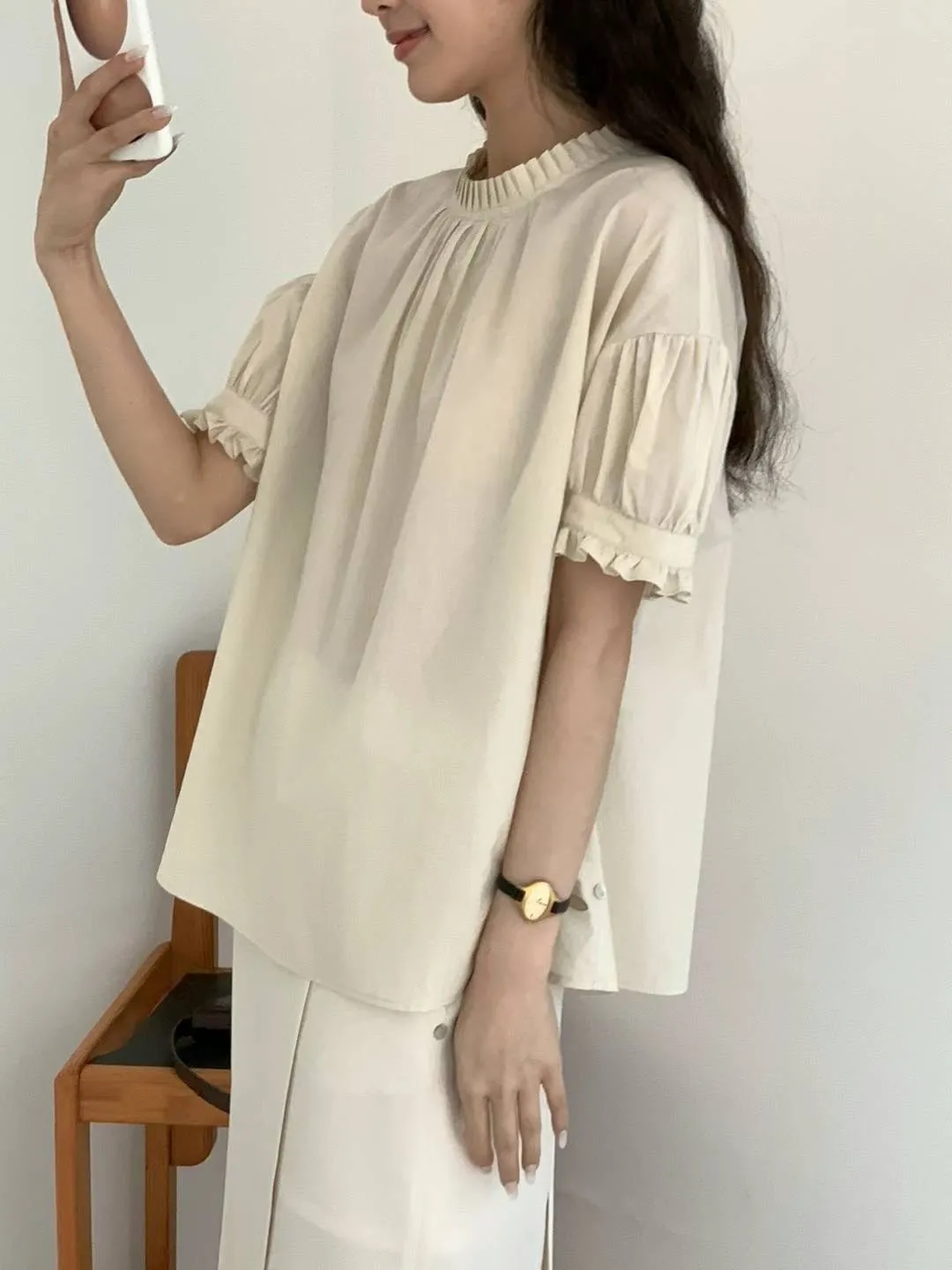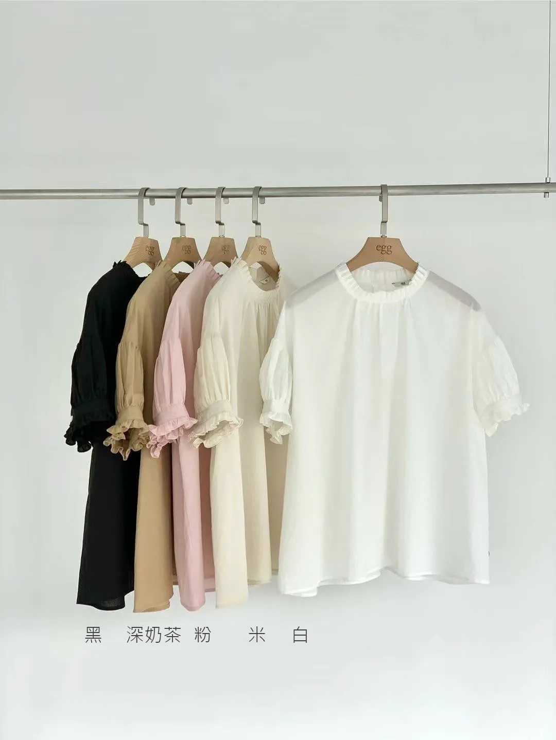 棉 極致輕盈薄款 荷葉領口袖口 像衛生紙一樣薄 貝殼釦穿脫