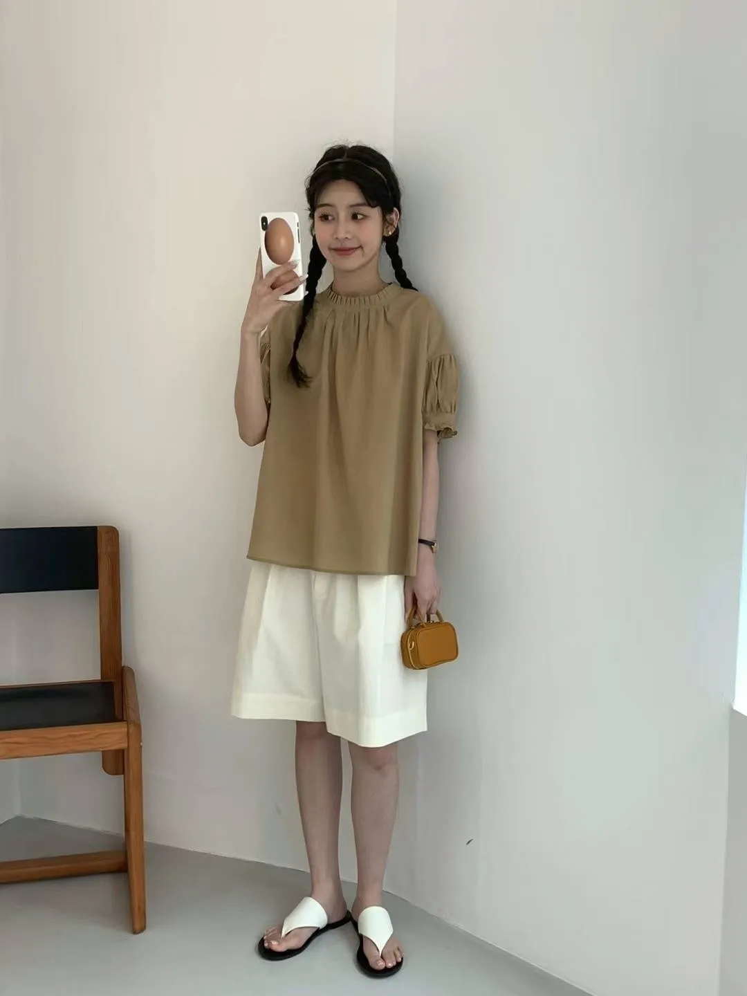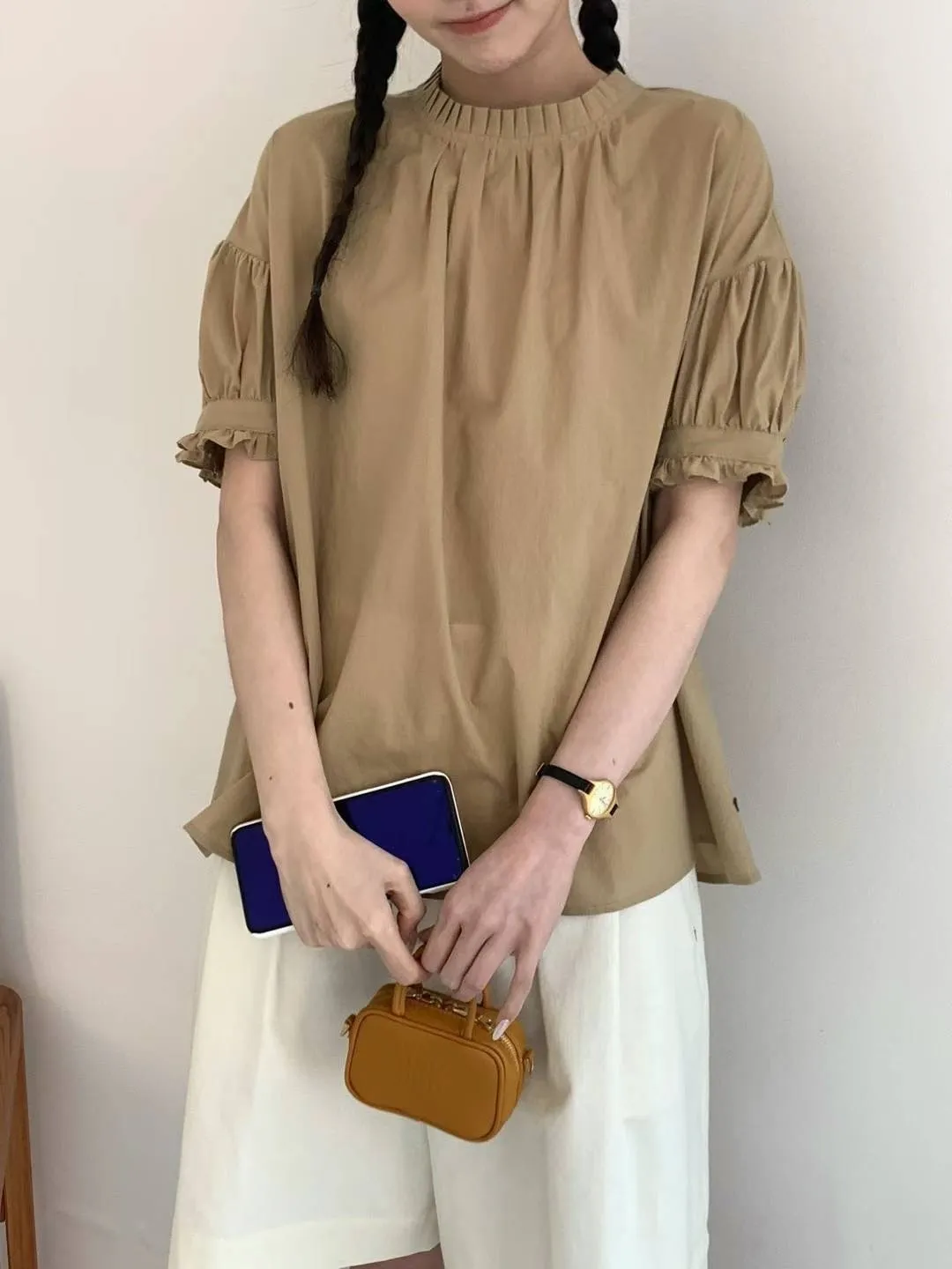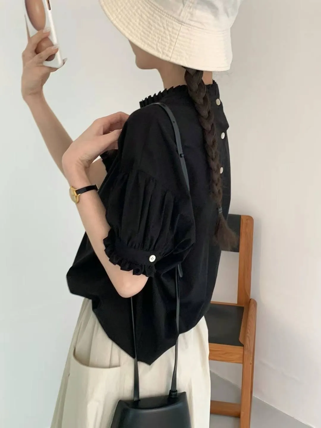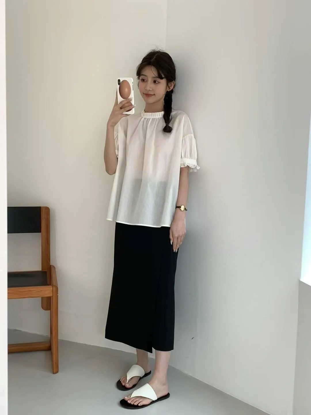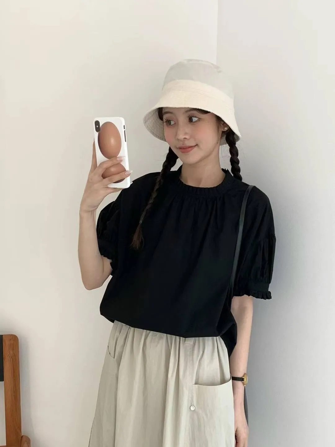棉 極致輕盈薄款 荷葉領口袖口 像衛生紙一樣薄 貝殼釦穿脫