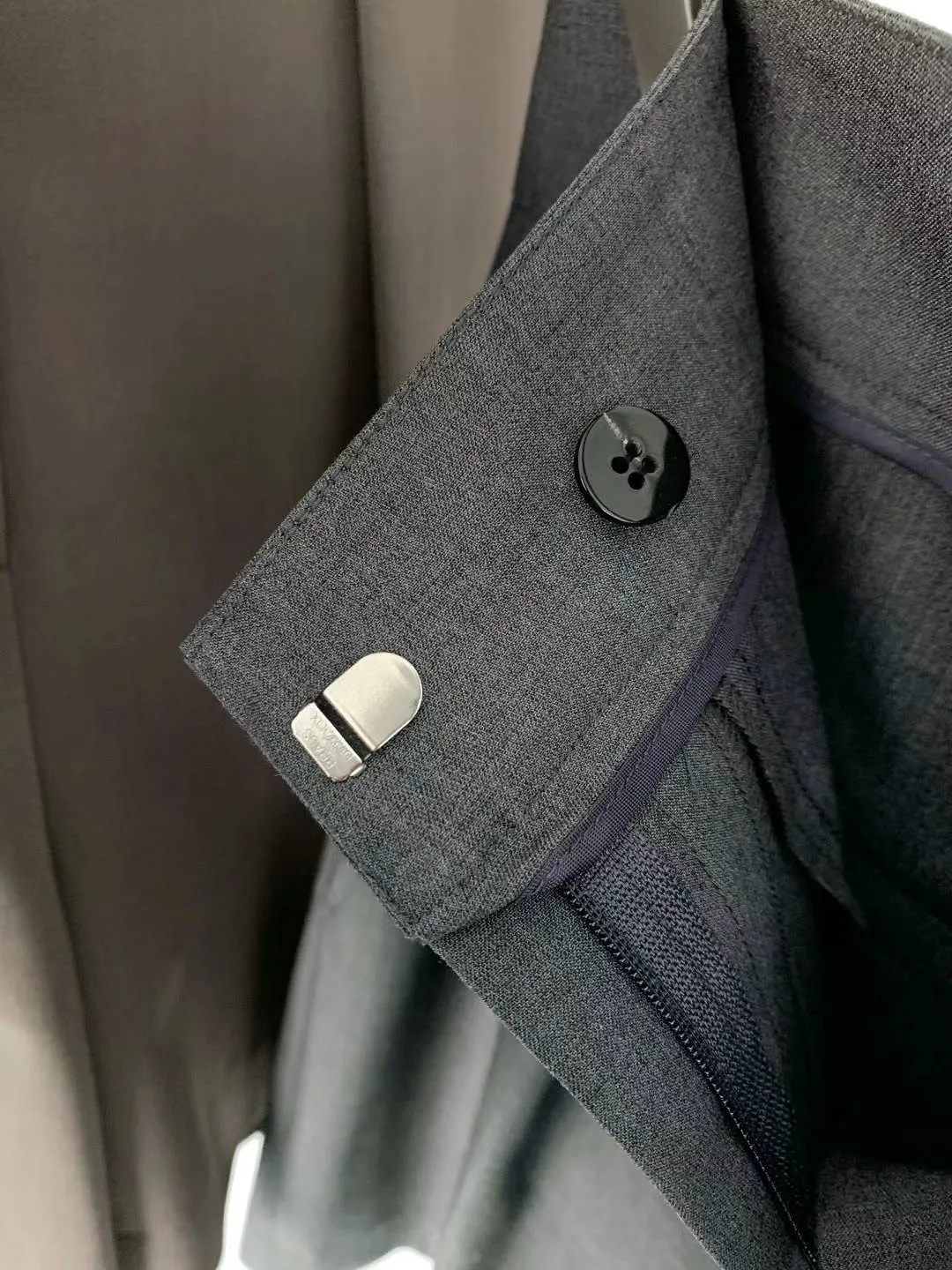 西裝面料 薄款面料 勾釦鍊穿脫 前打摺 有口袋
