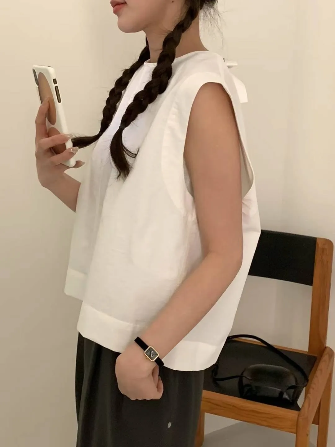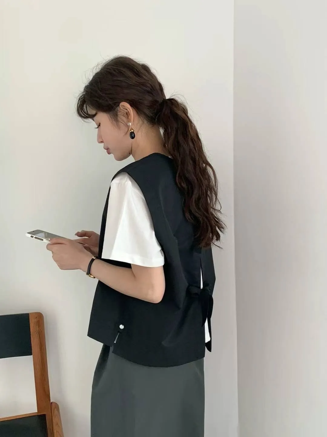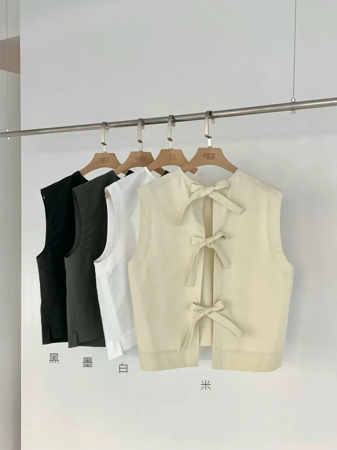 棉+尼龍 背後簍空三個蝴蝶結 圓領無袖 側開叉 觸感絲滑 厚度1.6