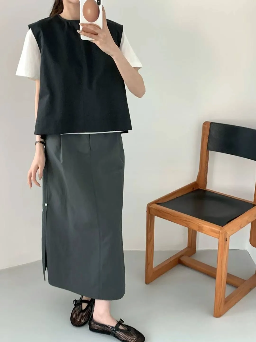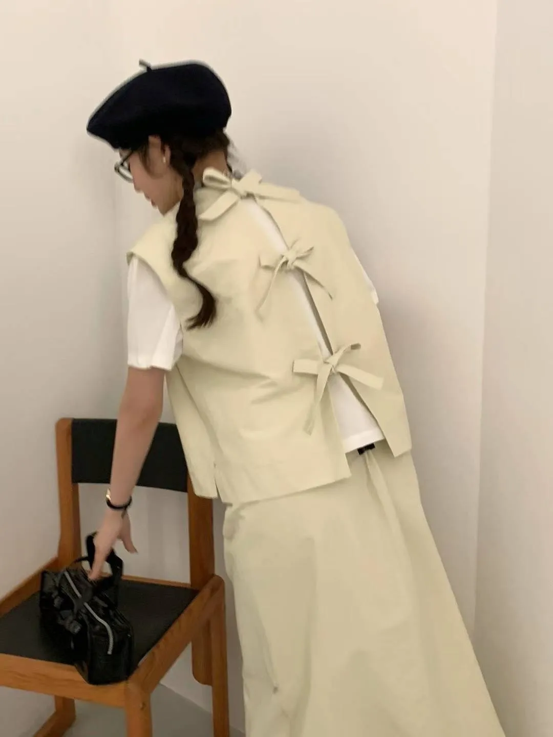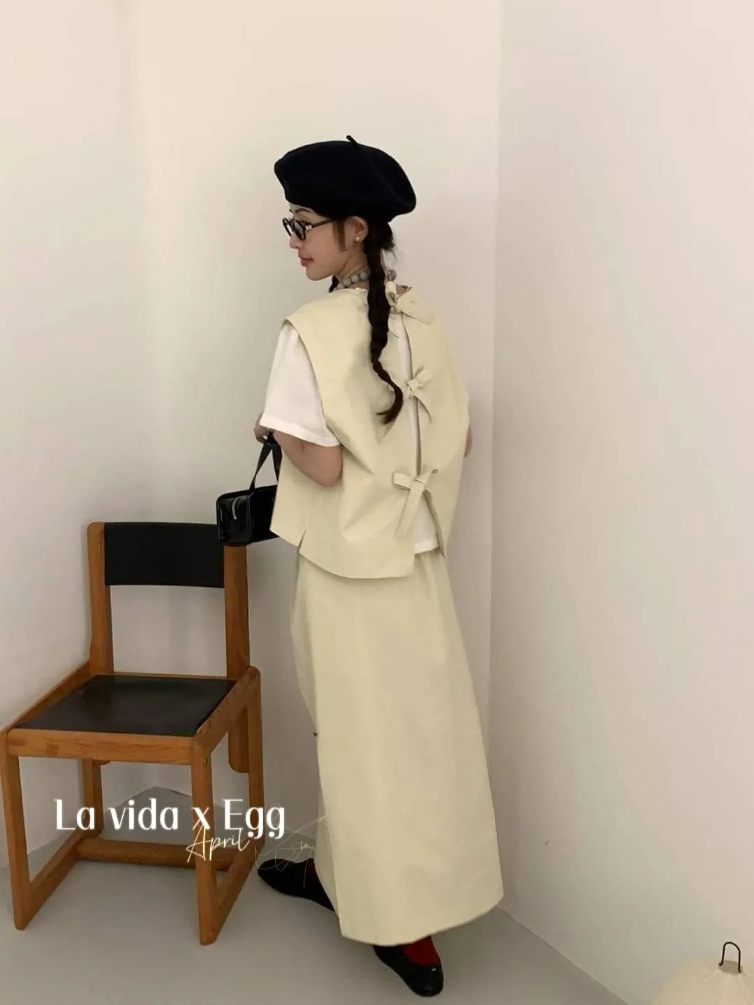 棉+尼龍 背後簍空三個蝴蝶結 圓領無袖 側開叉 觸感絲滑 厚度1.6