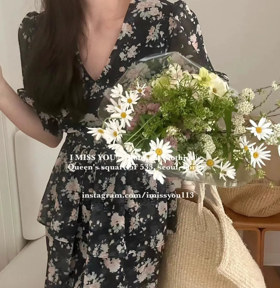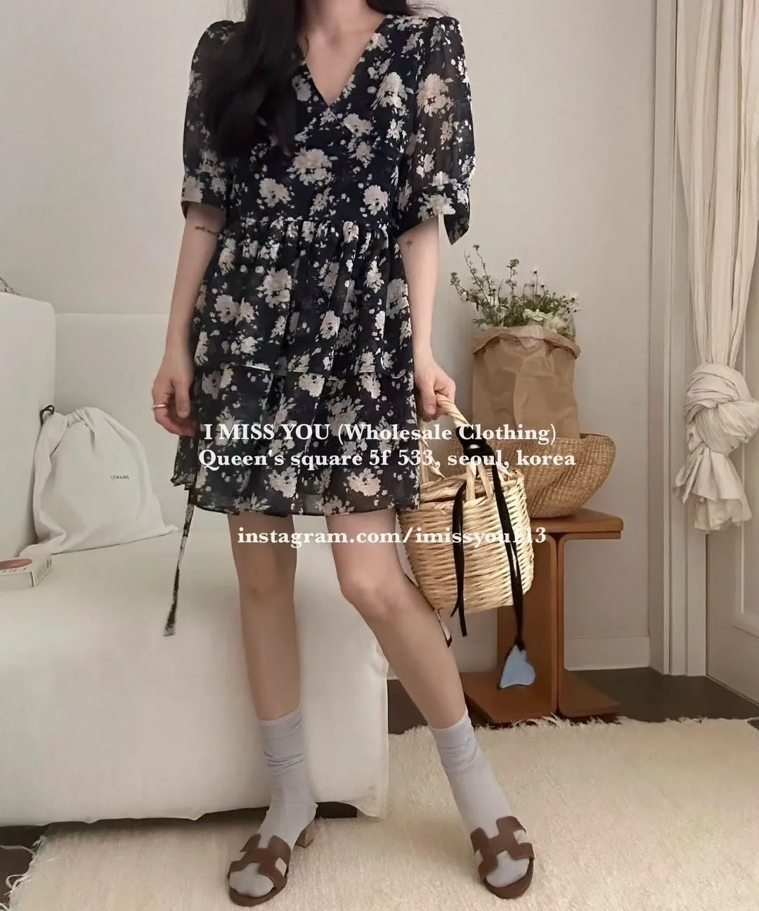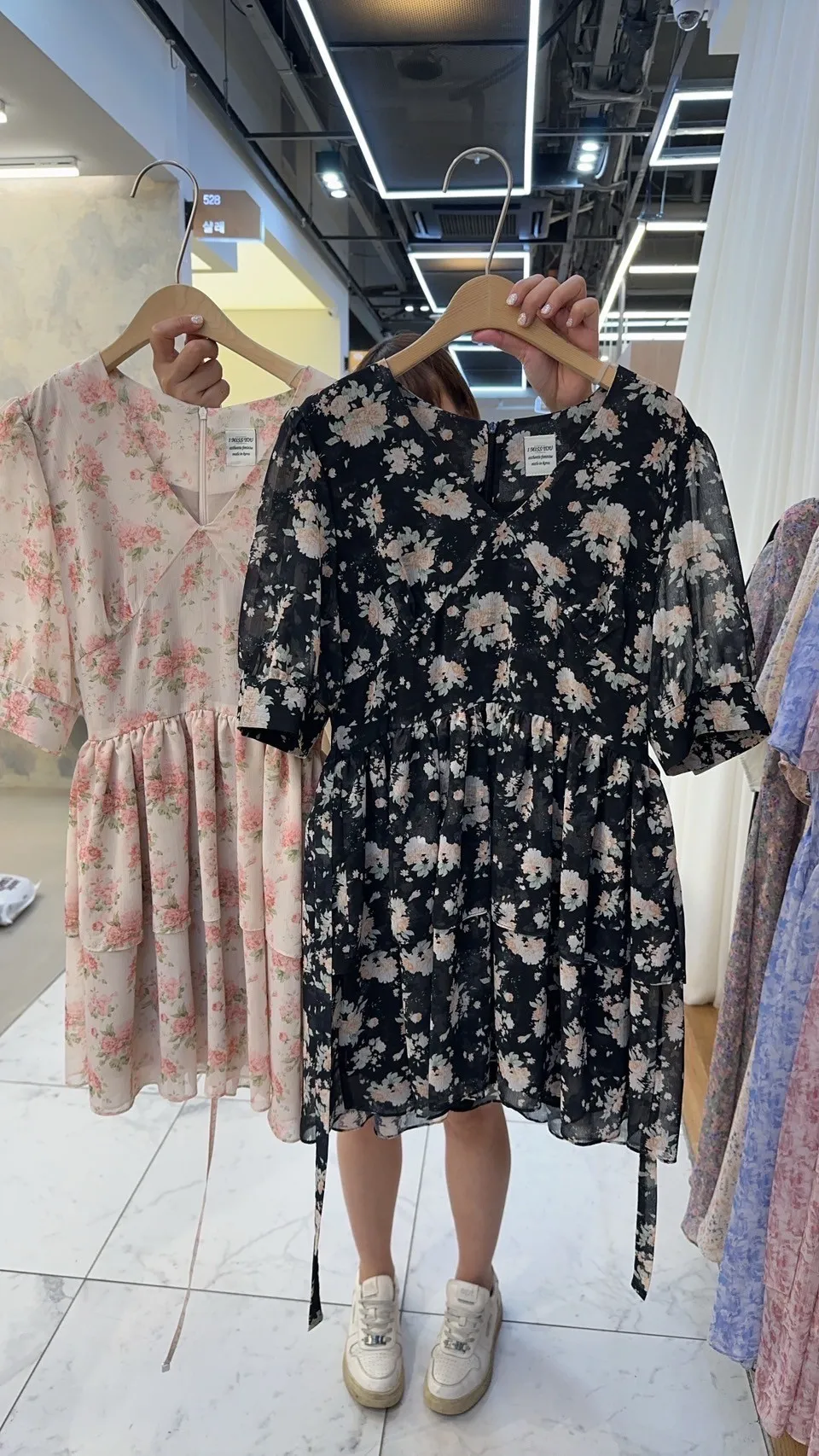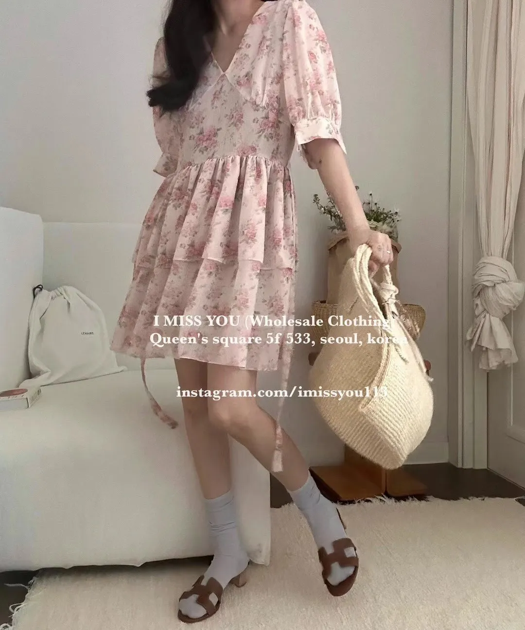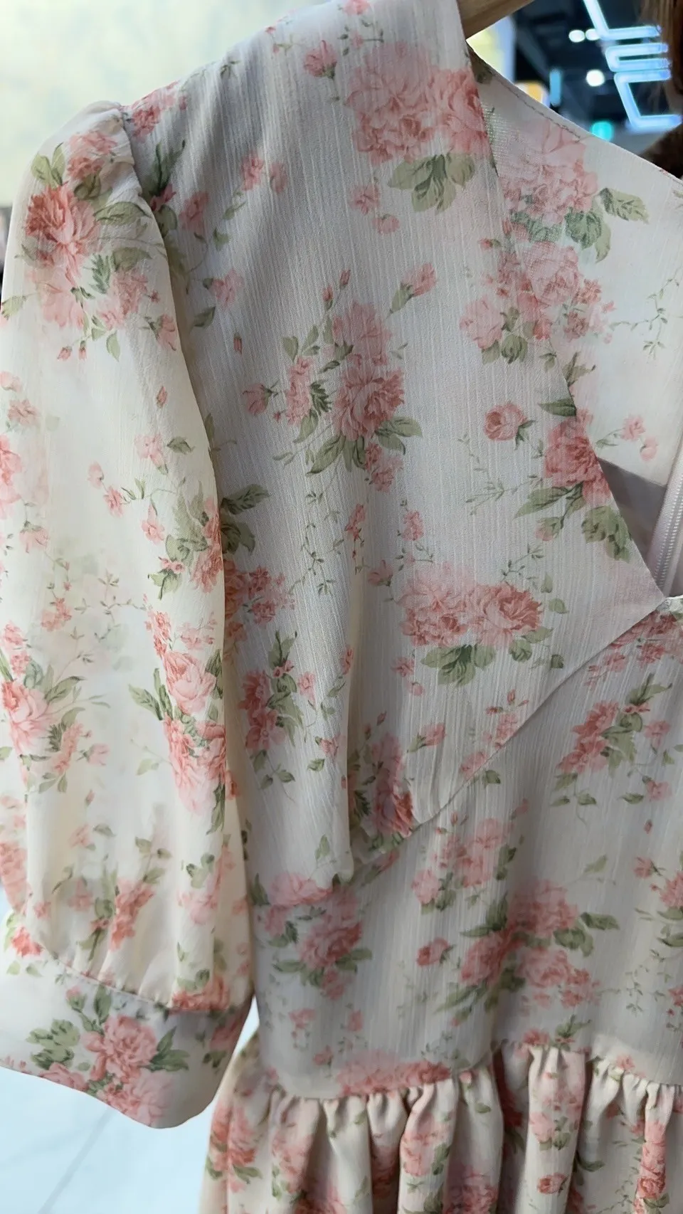 雪紡 腰綁帶 有內裡 雙層蛋糕下擺 V領短袖適合台灣 腰無鬆緊