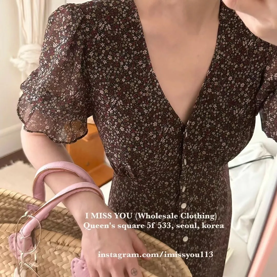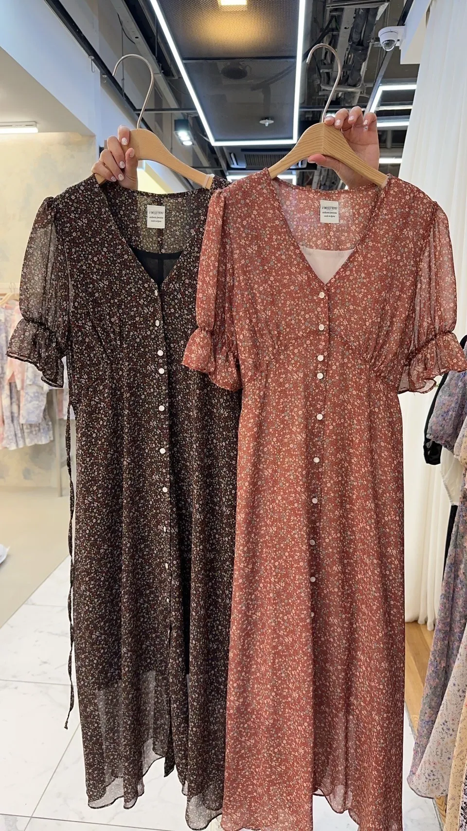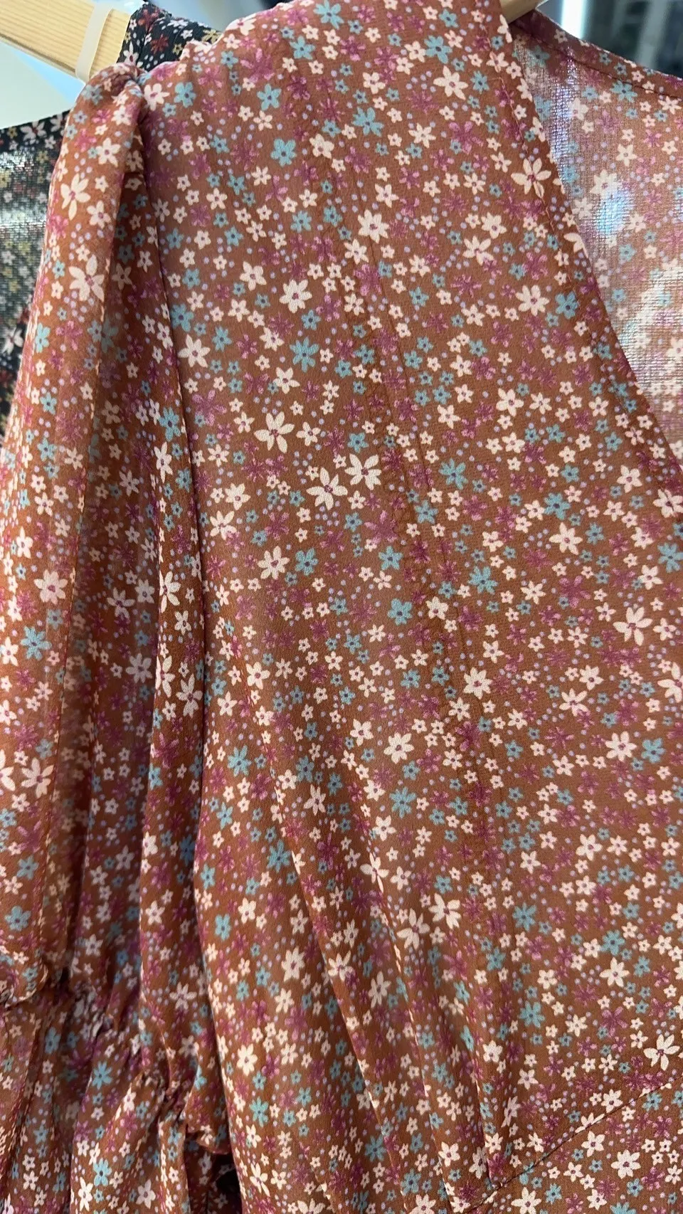雪紡 古香小星星碎花 輕盈滑順飄逸 排釦穿脫 後腰綁帶 穿到M號