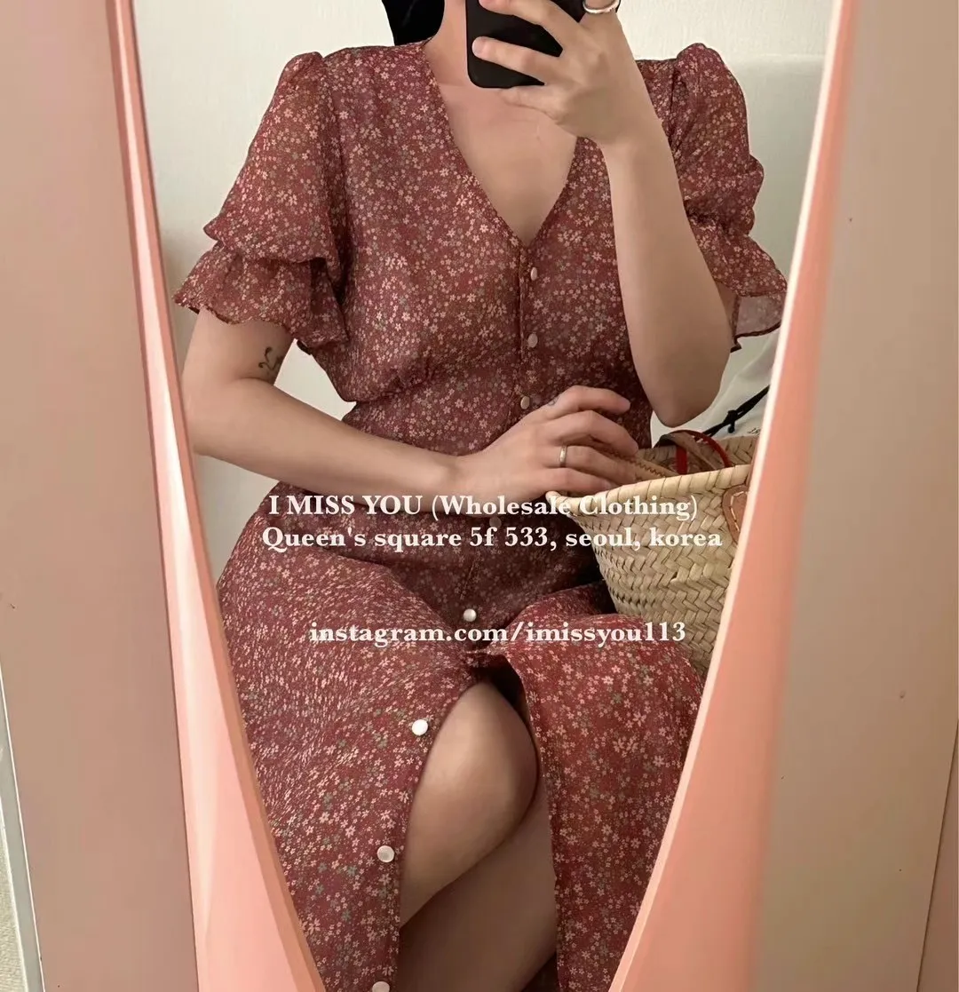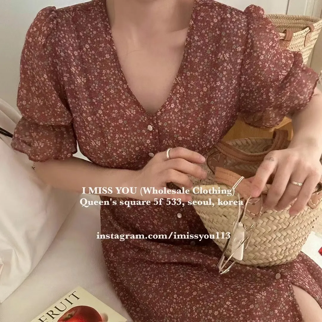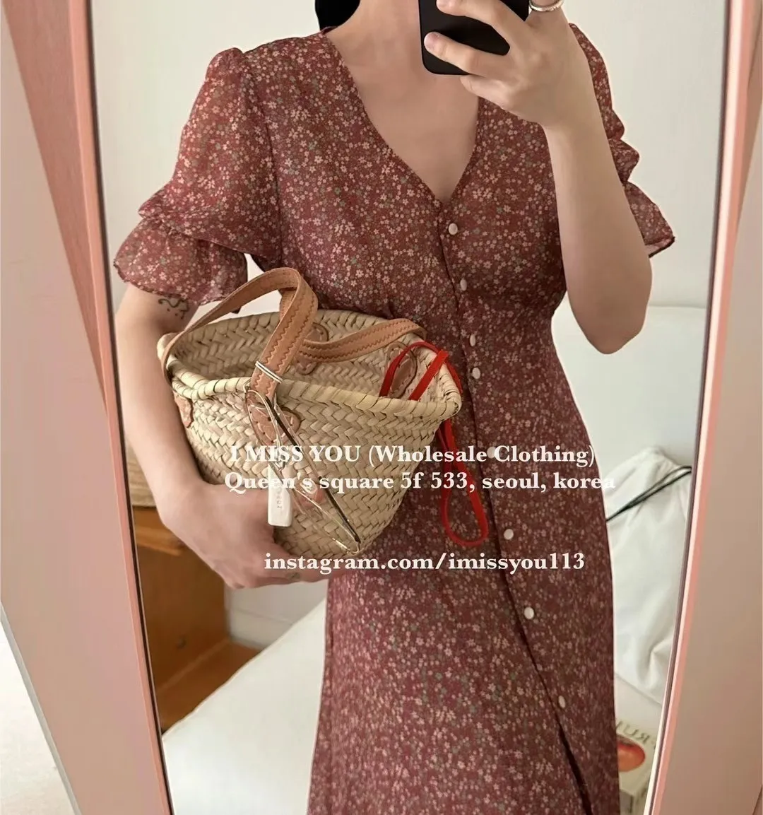 雪紡 古香小星星碎花 輕盈滑順飄逸 排釦穿脫 後腰綁帶 穿到M號