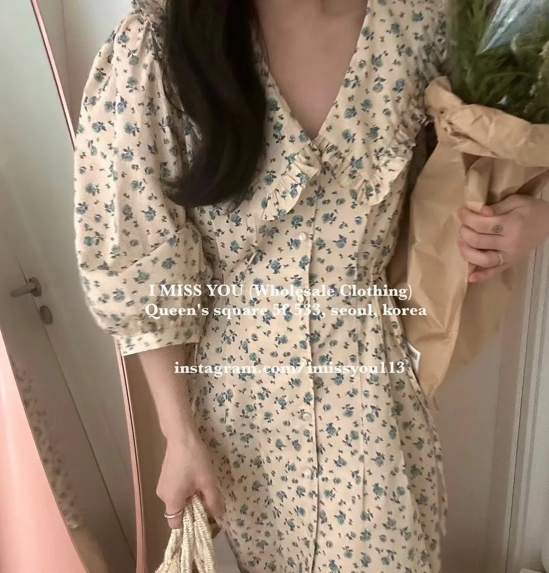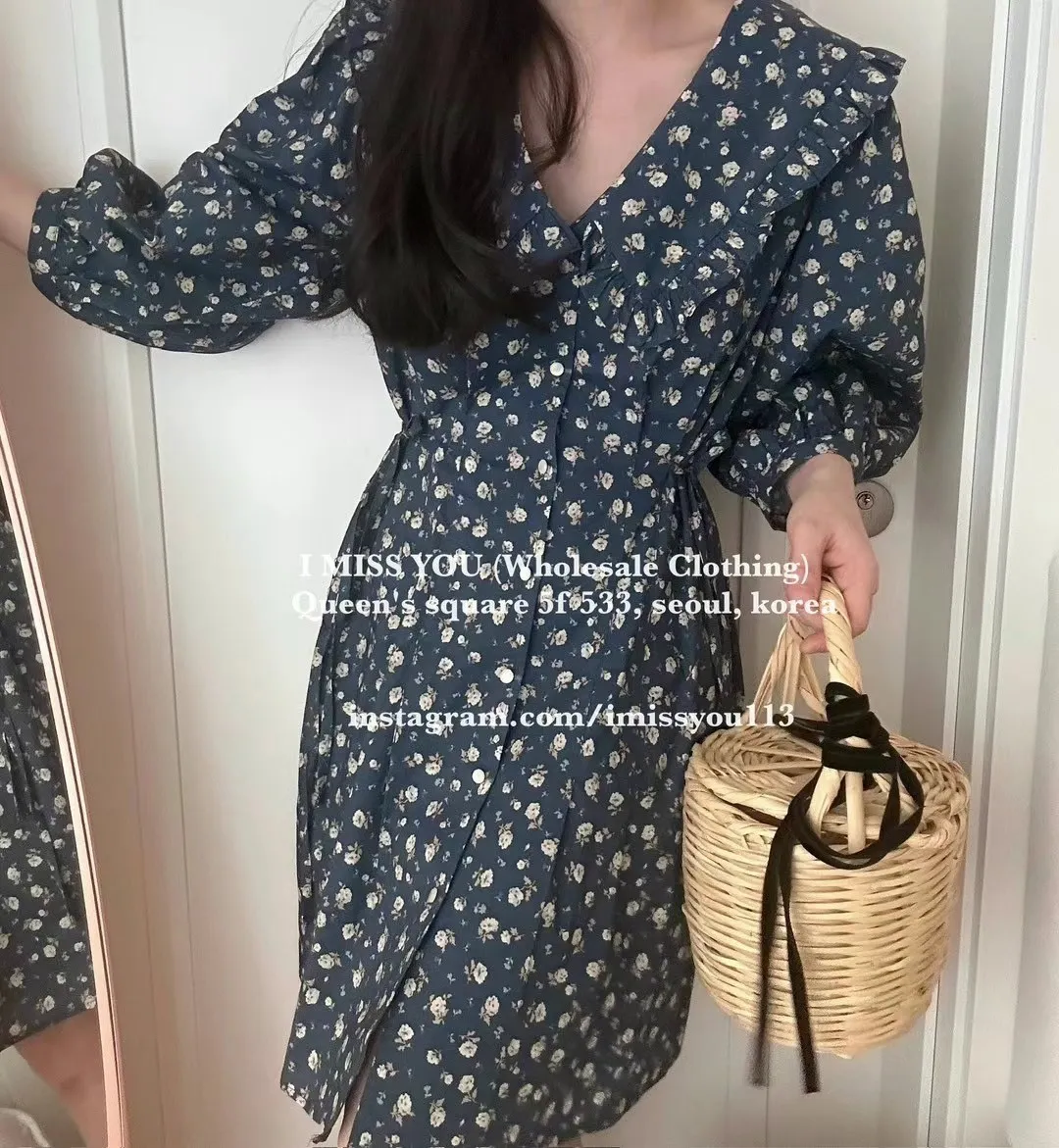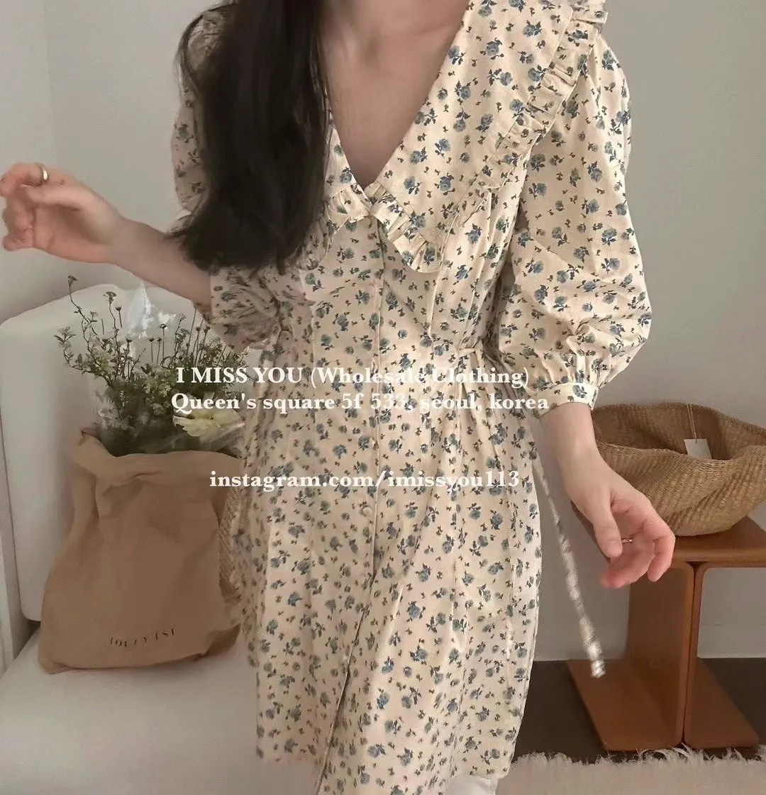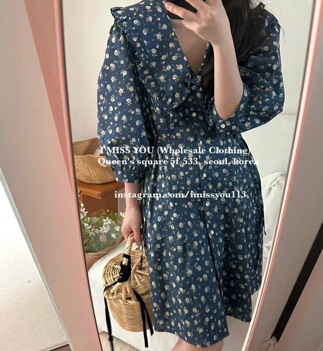 TA215荷葉滾邊雲朵大翻領洋裝 米 藍 官網價$1740 線上價$1710