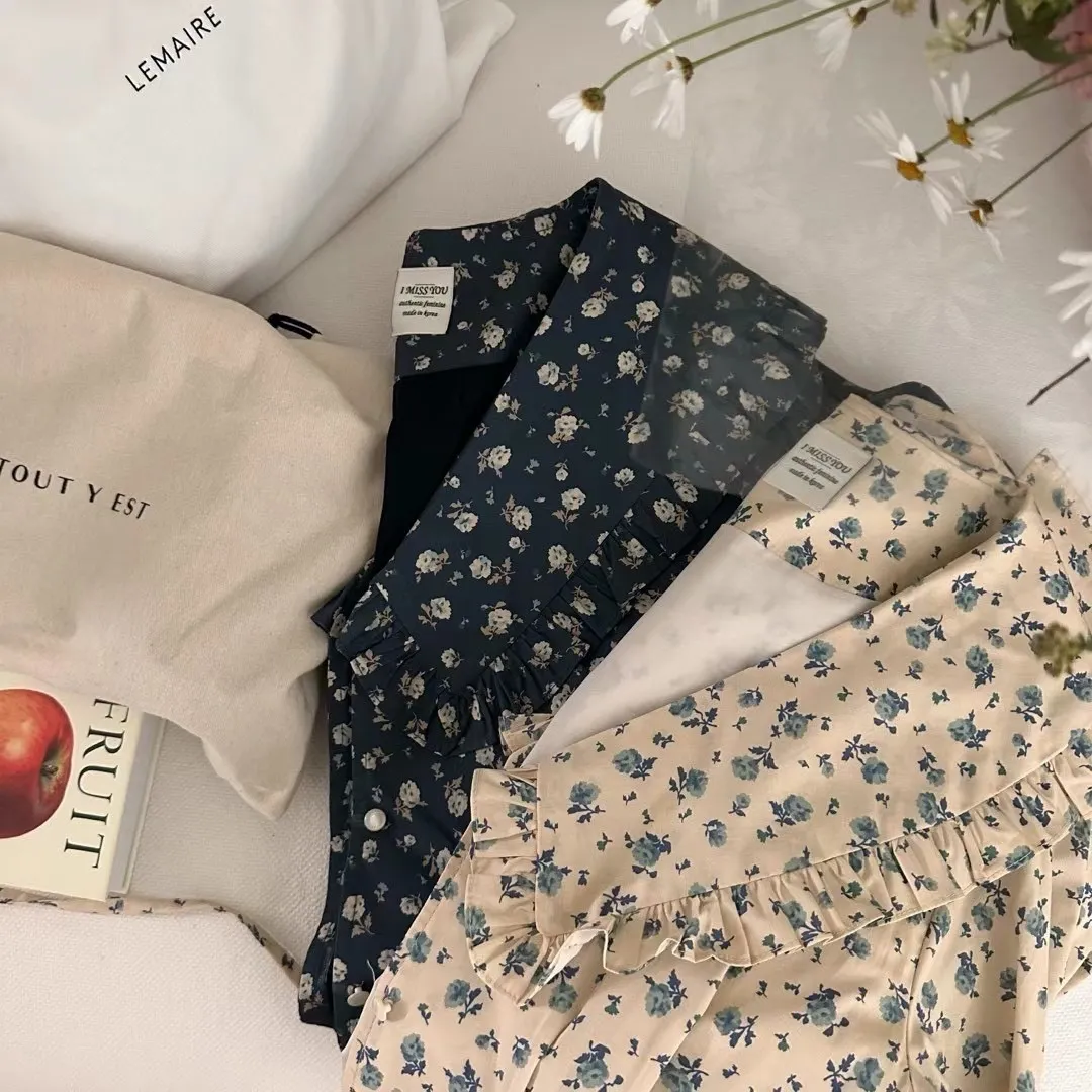棉 透氣舒適 有口袋 雙側腰綁繩 排釦穿脫 七分袖 荷葉滾邊翻領