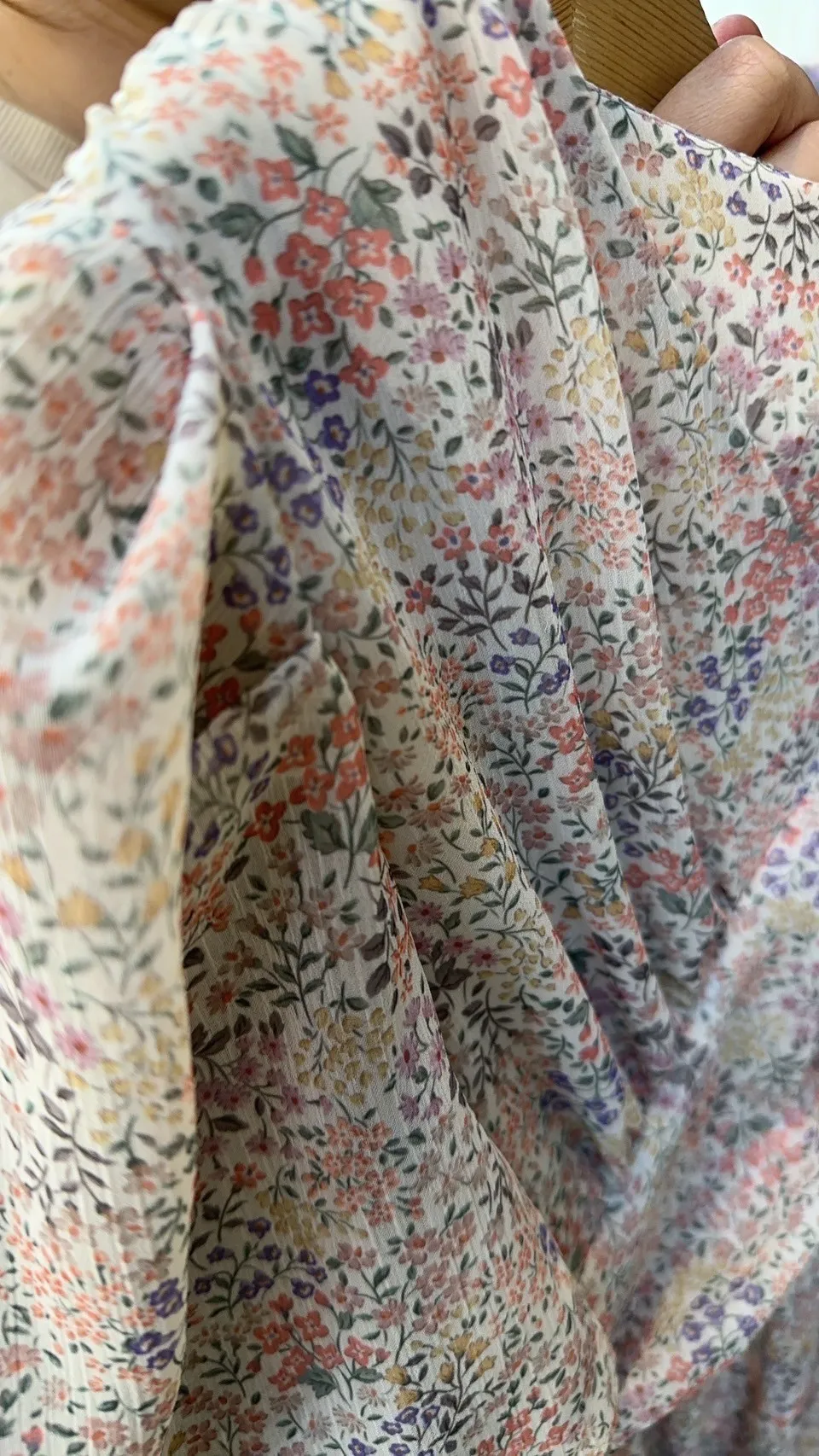 雪紡 輕盈面料 V領美胸抓皺 微高腰有綁帶 袖口寬鬆友善 穿到小L
