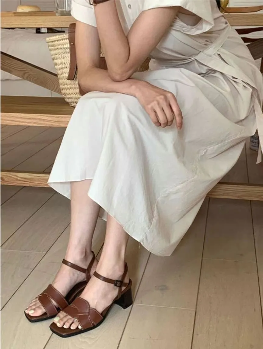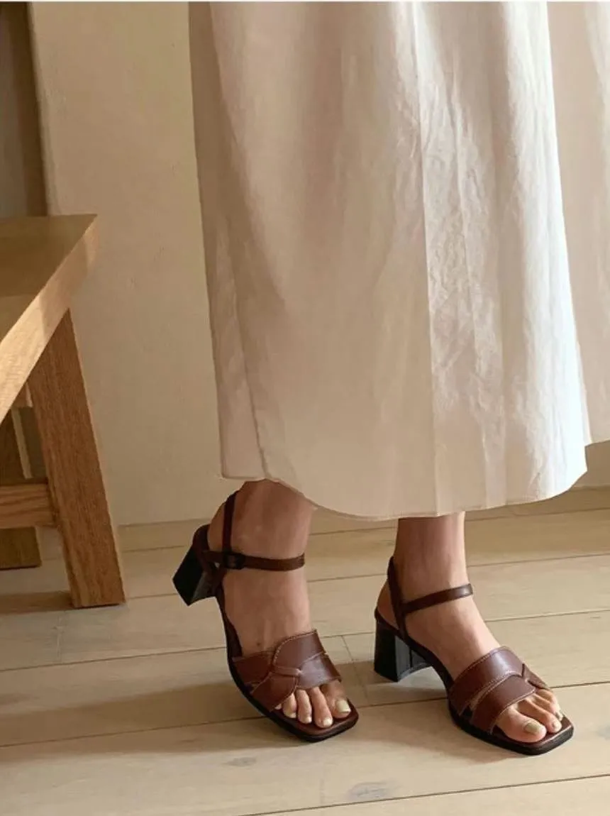牛皮 跟高約5公分 粗跟款 瘦腳肉腳皆大半號