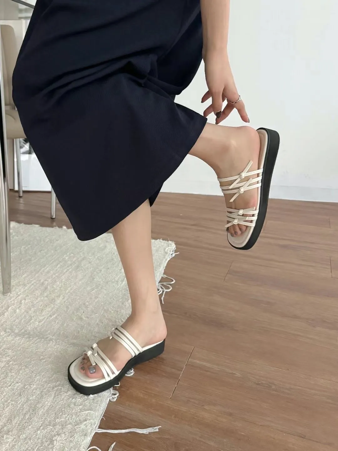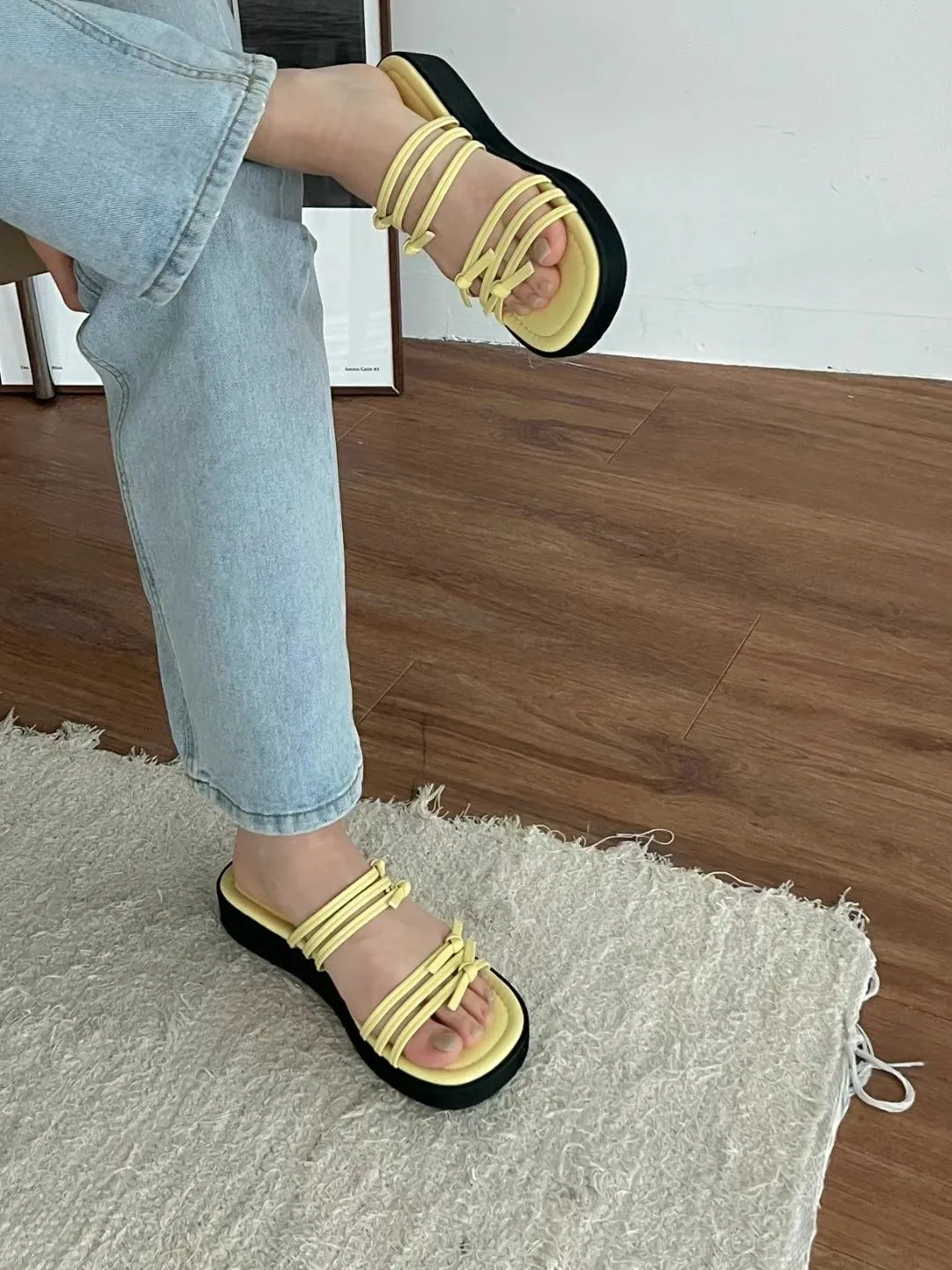 TA262厚底多橫條設計款拖鞋 白 黃 黑 225-250(有半號) $950