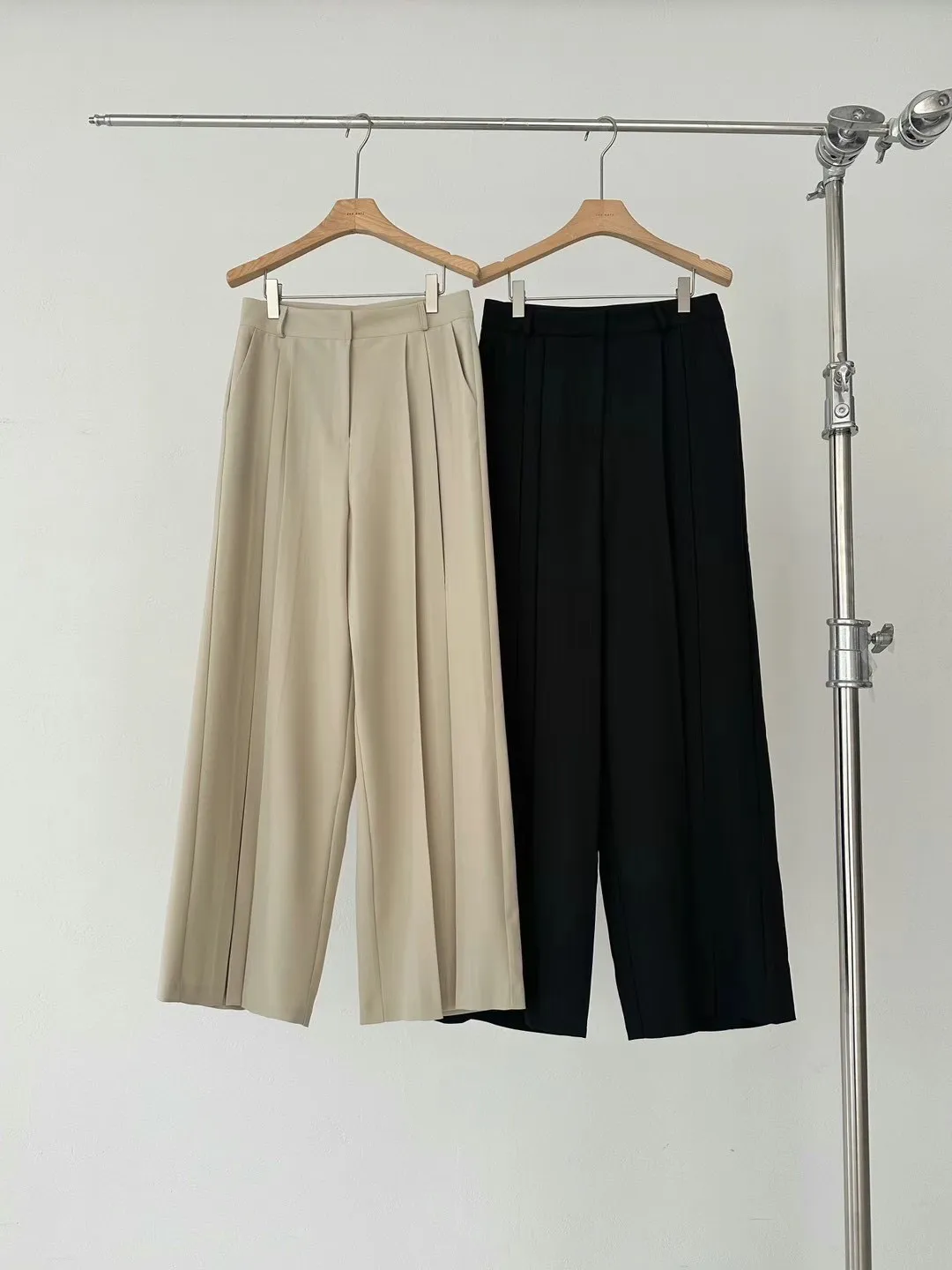 聚酯+彈力 藏釦鍊穿脫 有腰耳 褲管寬鬆空間感佳 有口袋 顯腿長