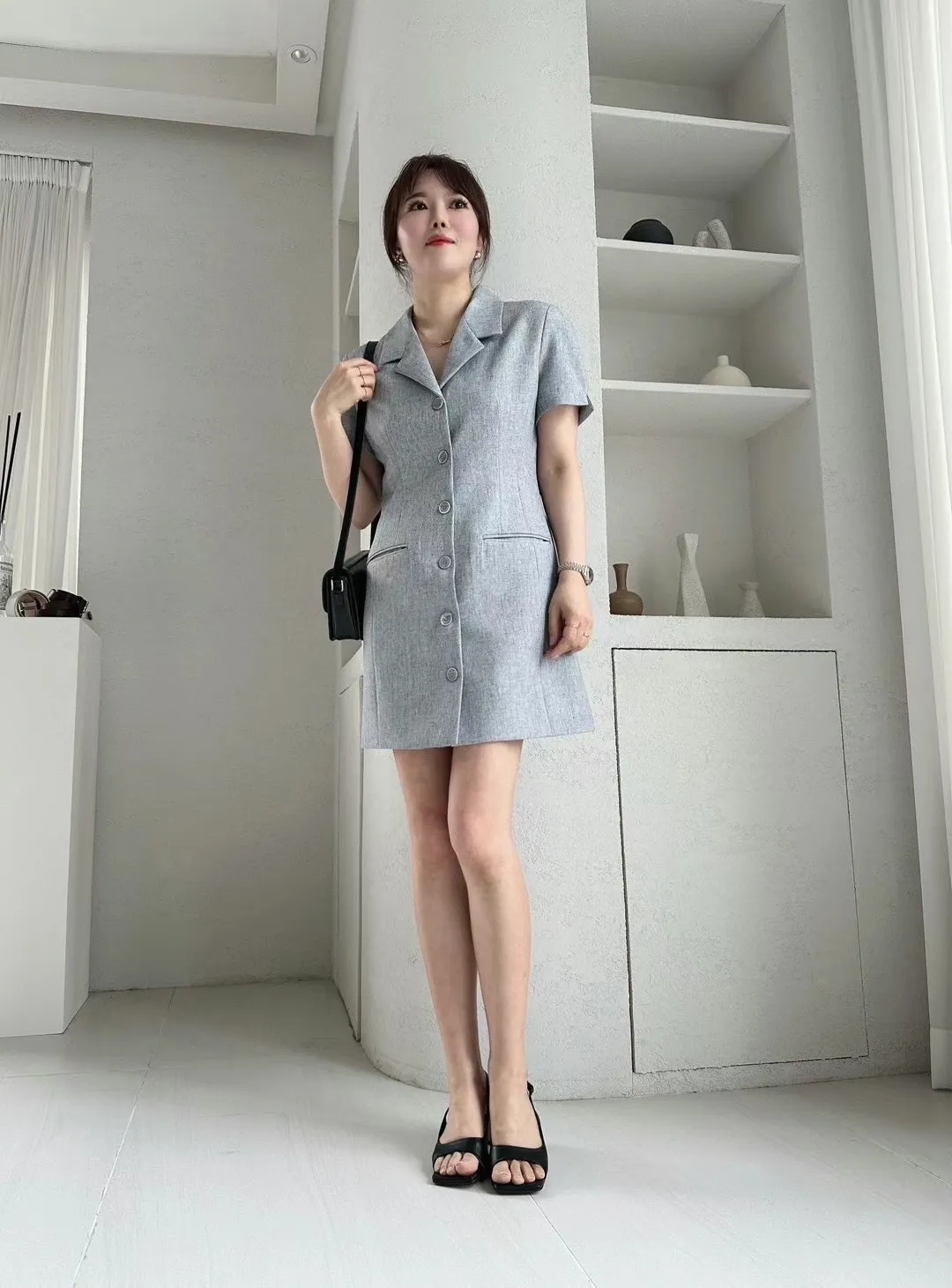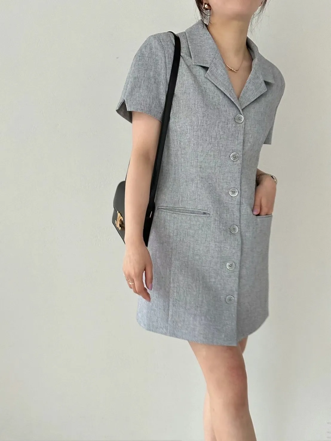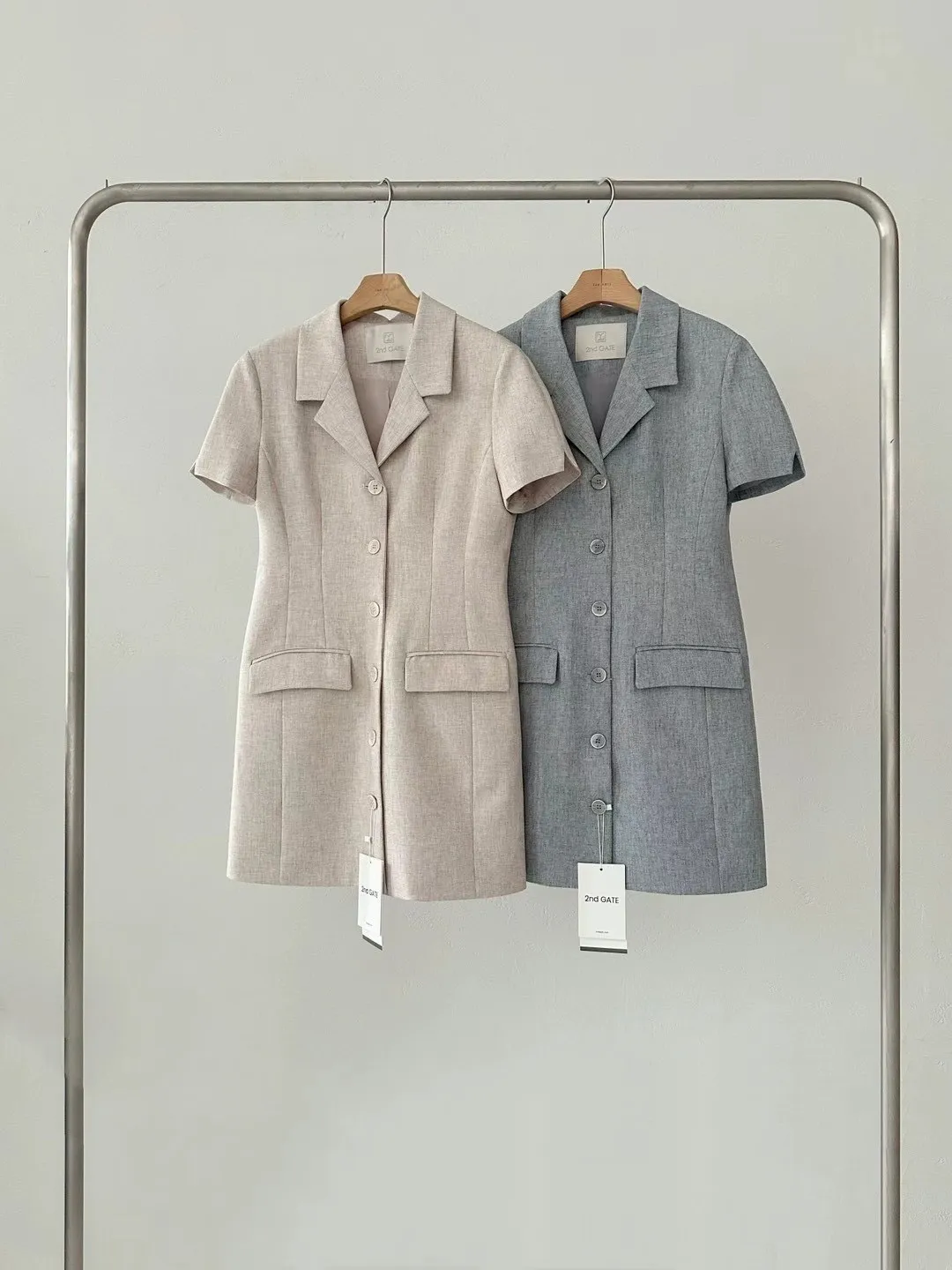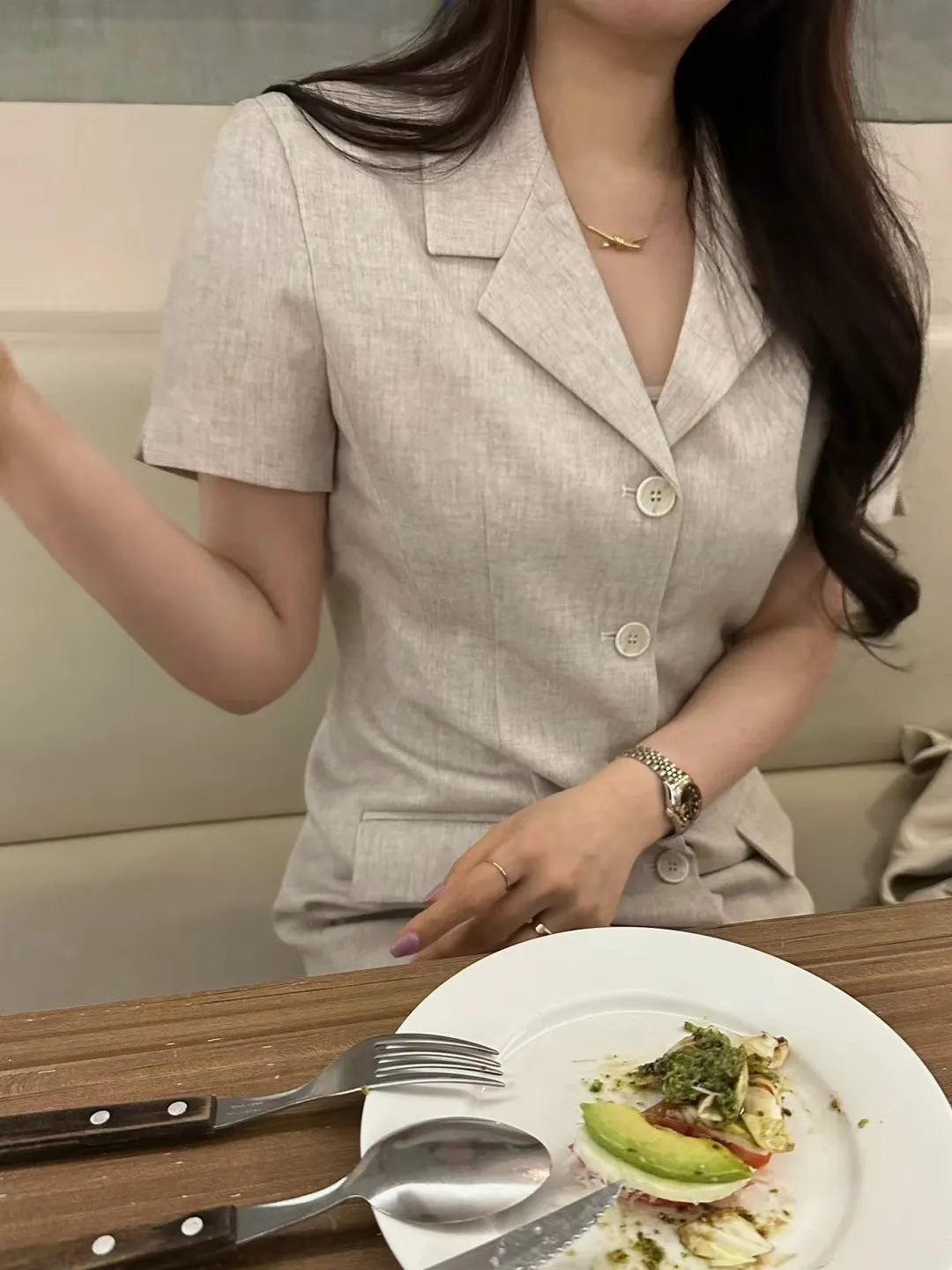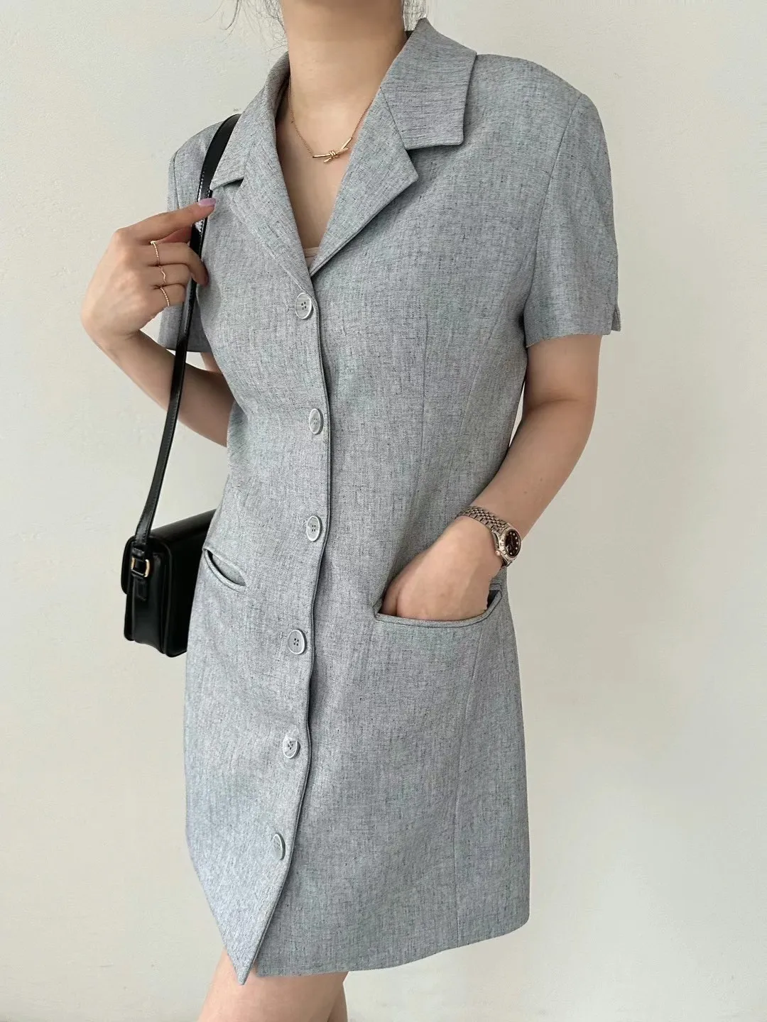 聚酯+亞麻+彈力 排釦穿脫 有口袋 透氣舒適 自然腰身曲線 混織面料