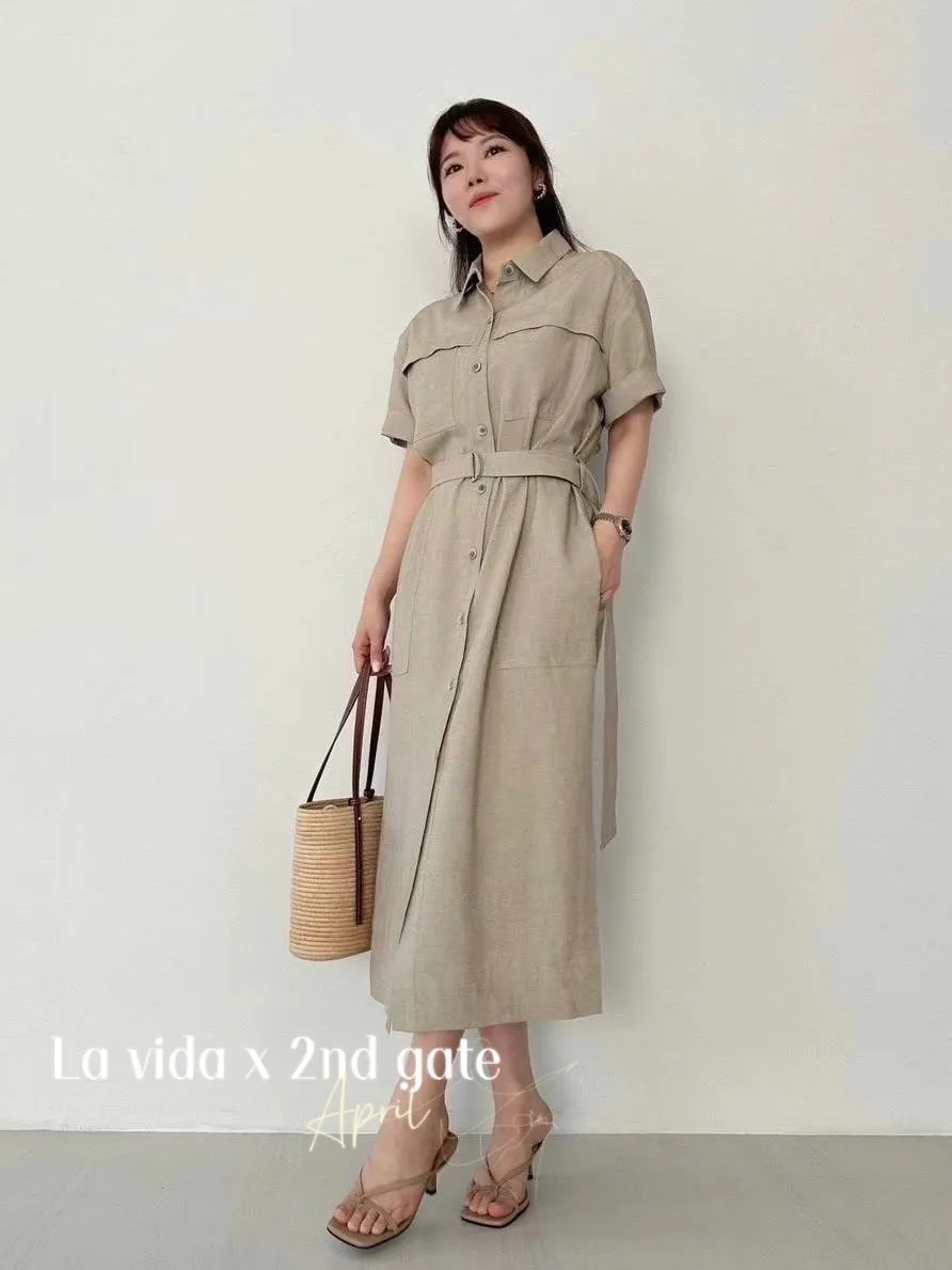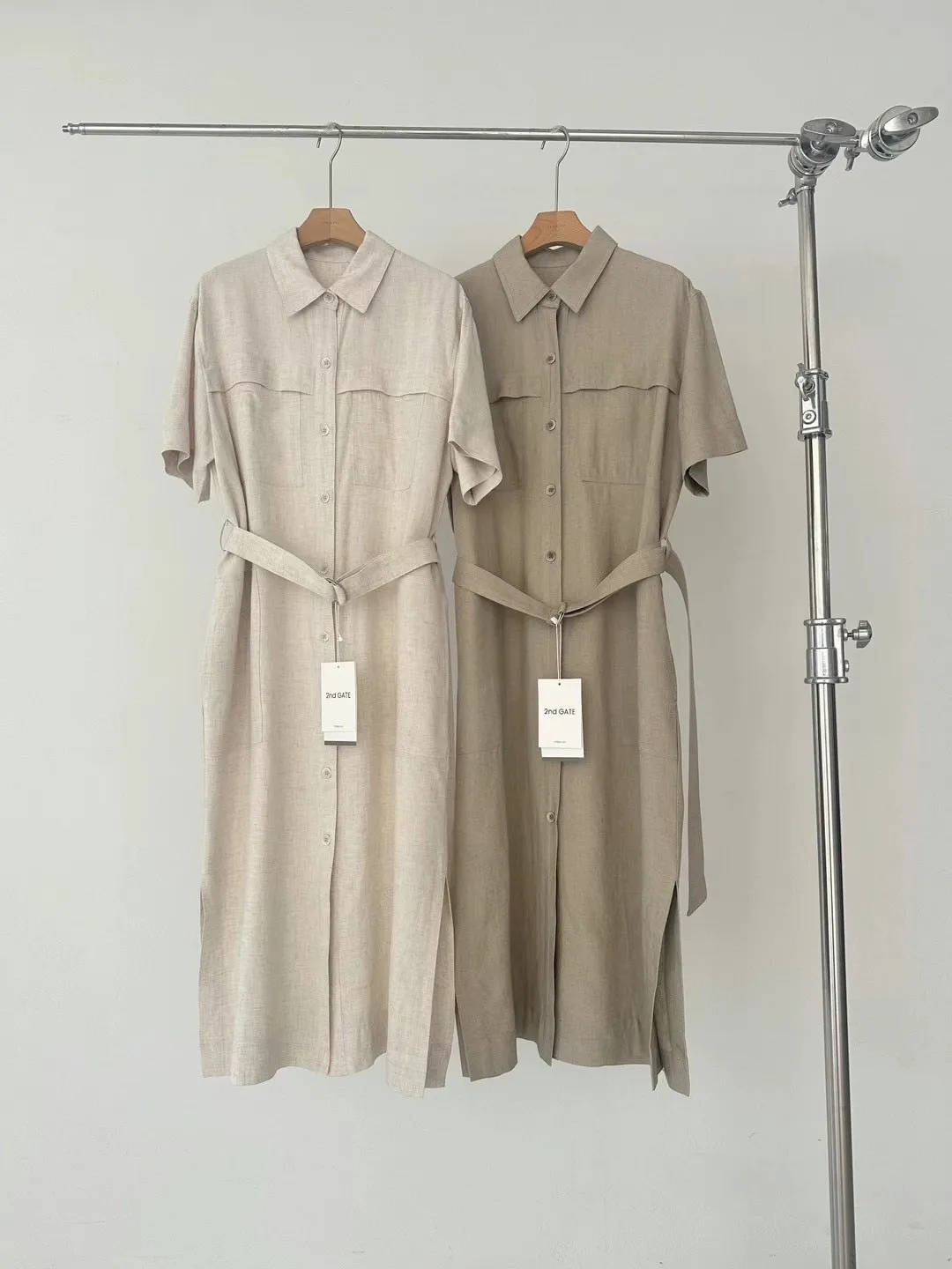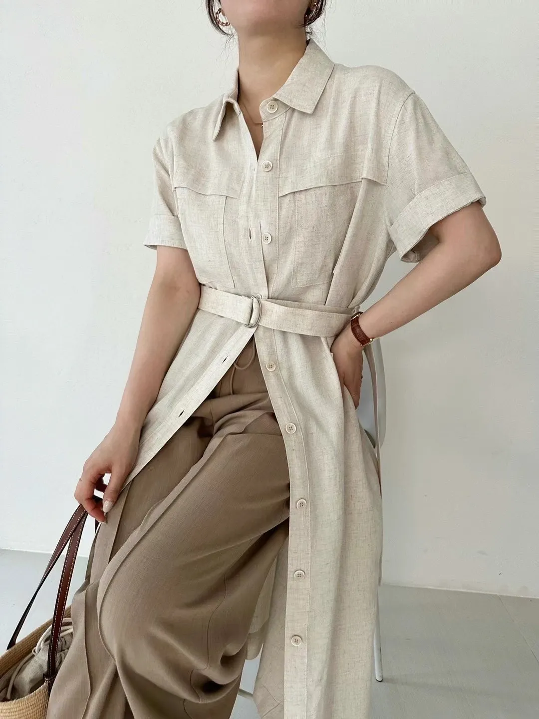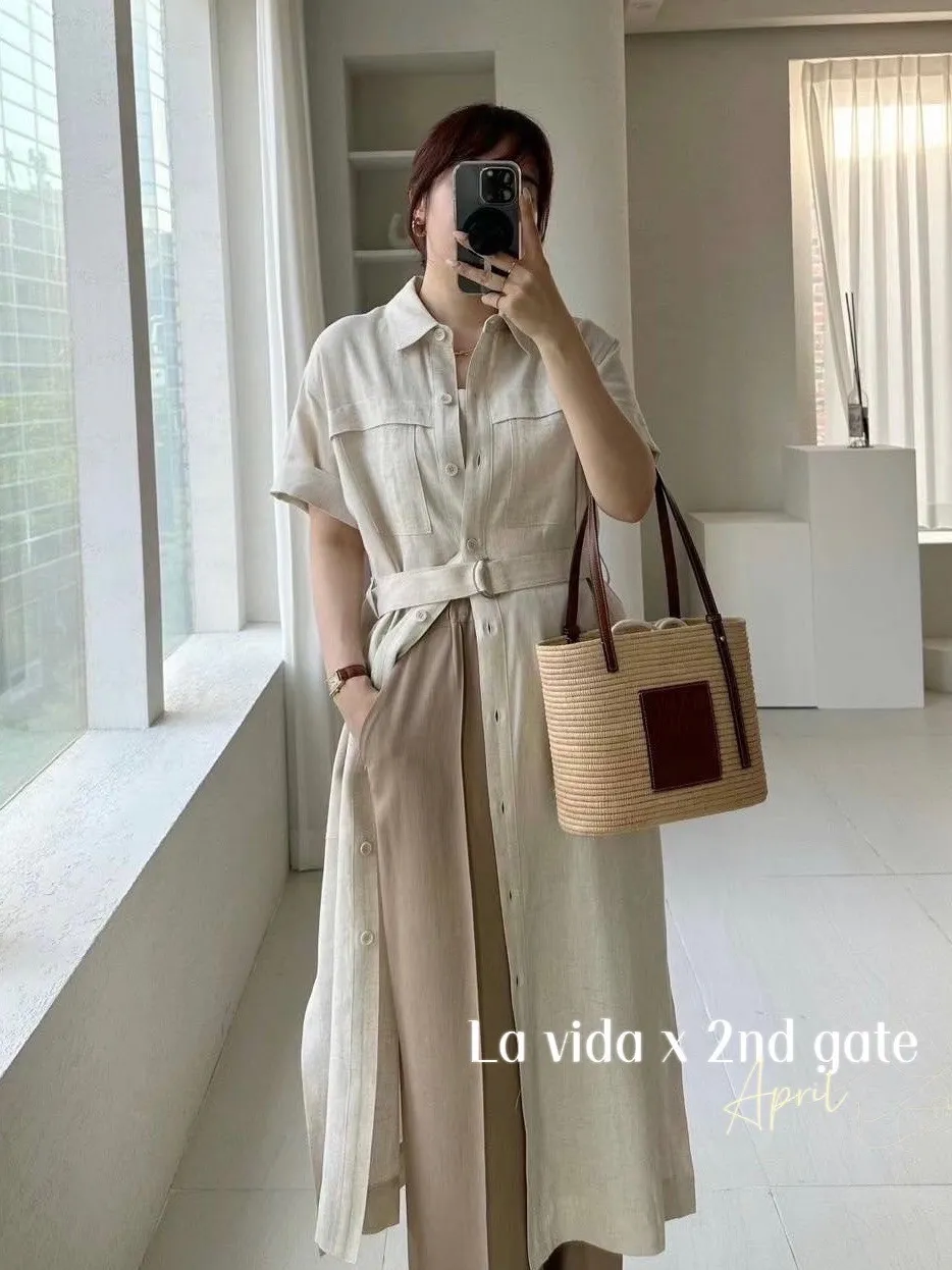 縲縈85%+亞麻 涼感透氣 側開叉 附腰綁帶 排釦穿脫 穿到L號