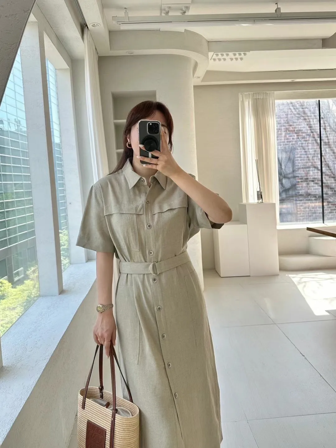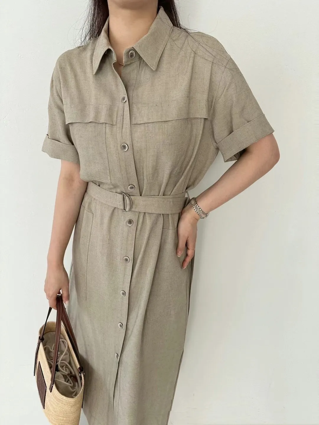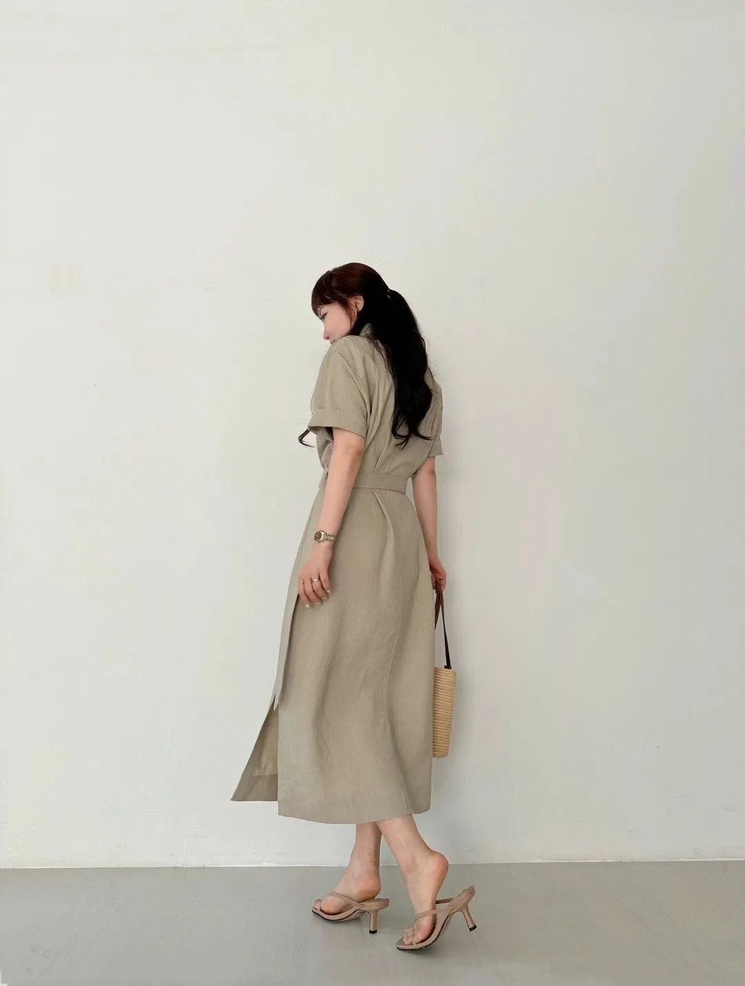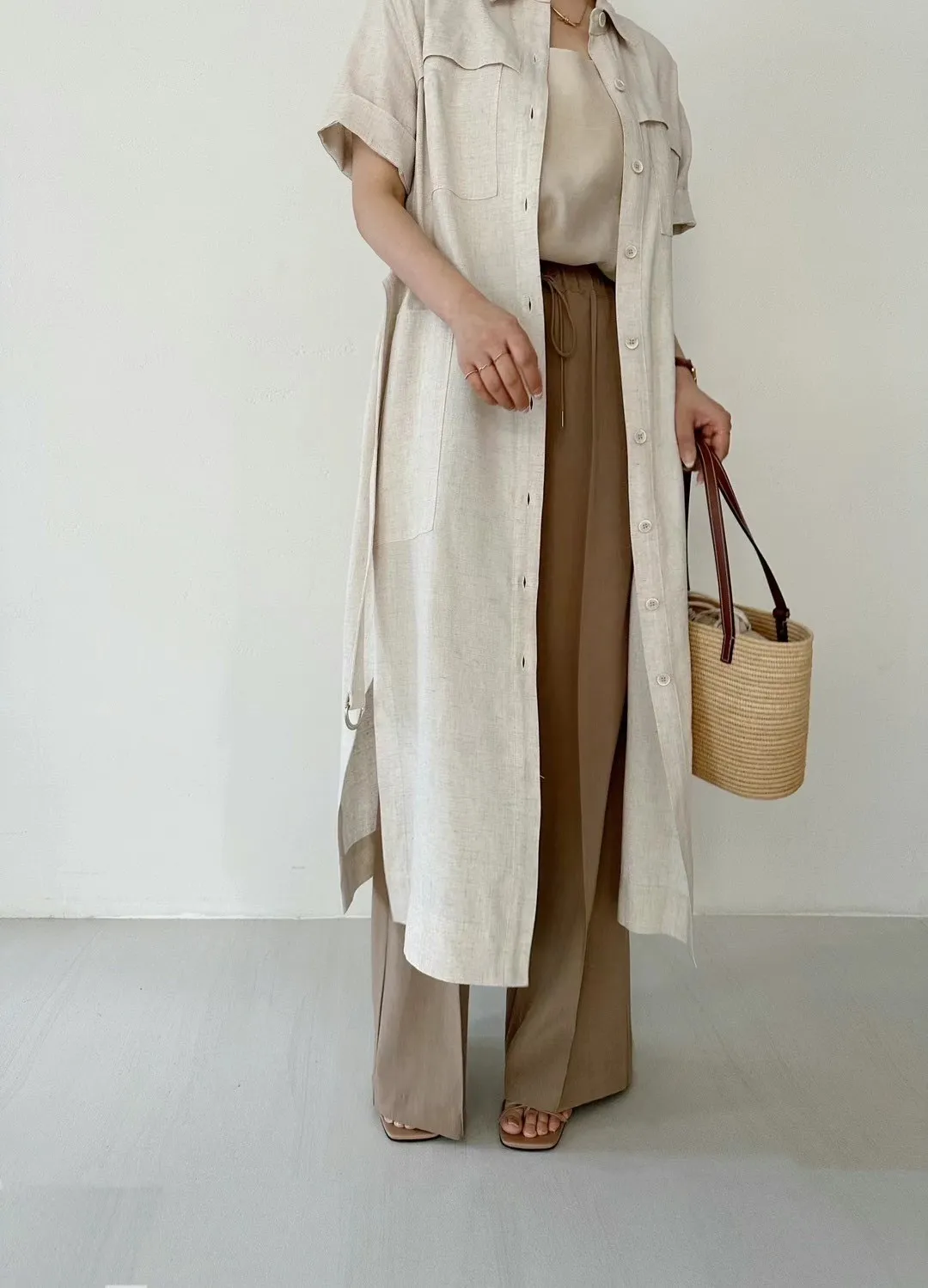縲縈85%+亞麻 涼感透氣 側開叉 附腰綁帶 排釦穿脫 穿到L號