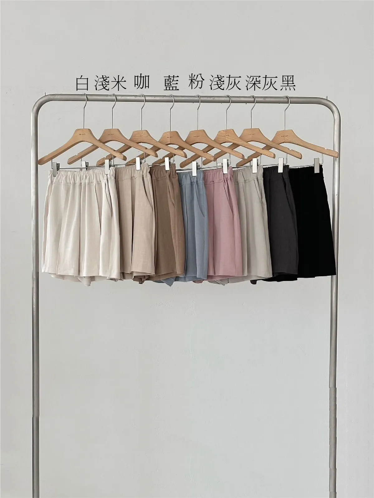 縲縈+聚酯+亞麻+彈力 舒適親膚 涼感 全腰鬆緊 有口袋 百搭神褲