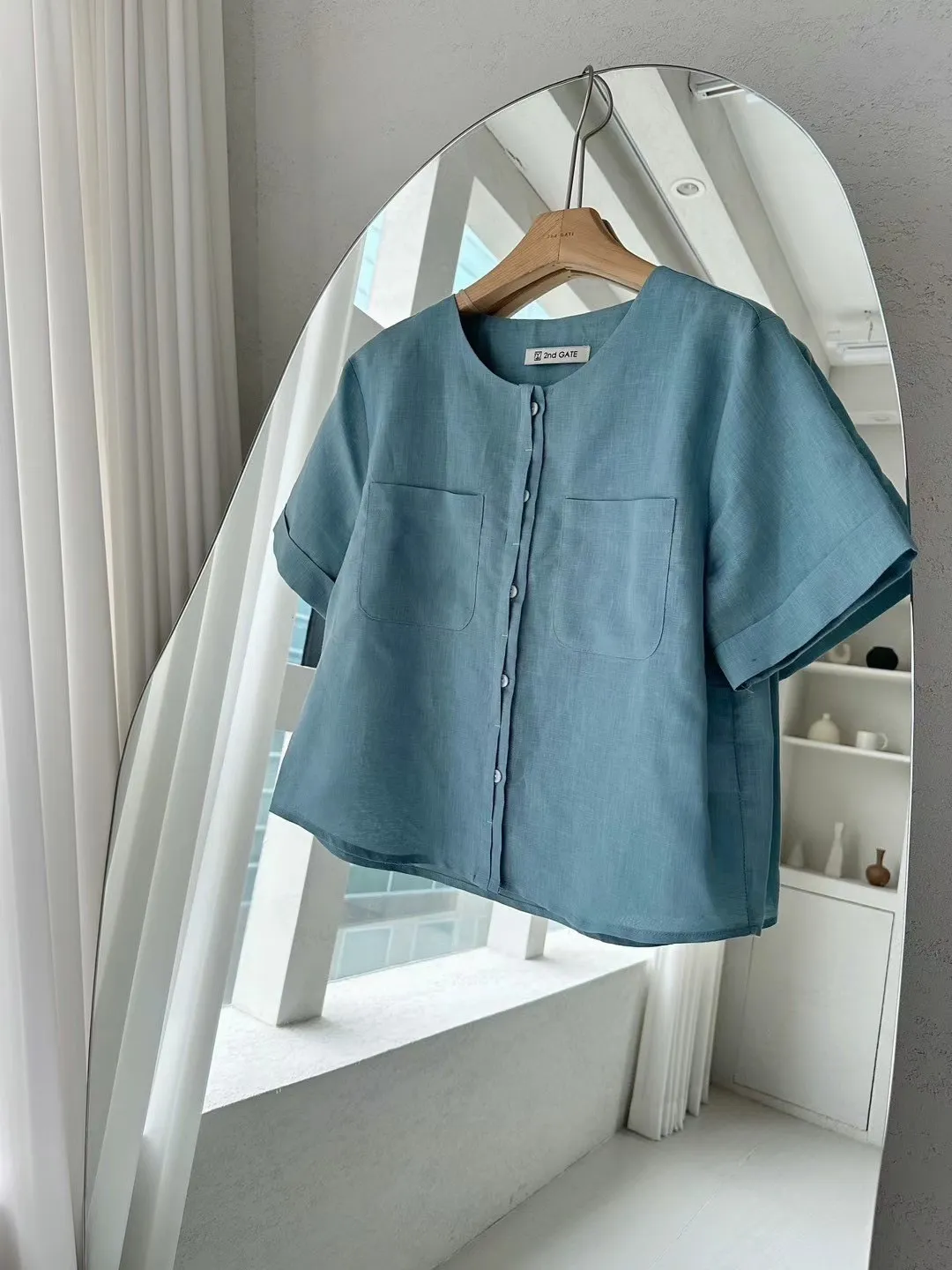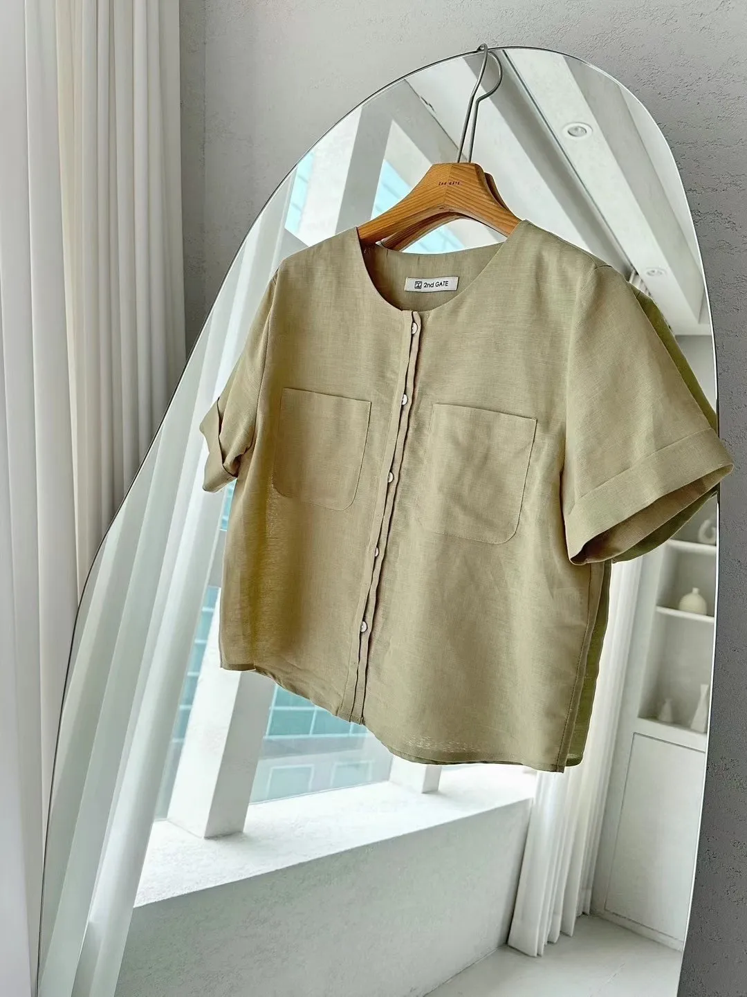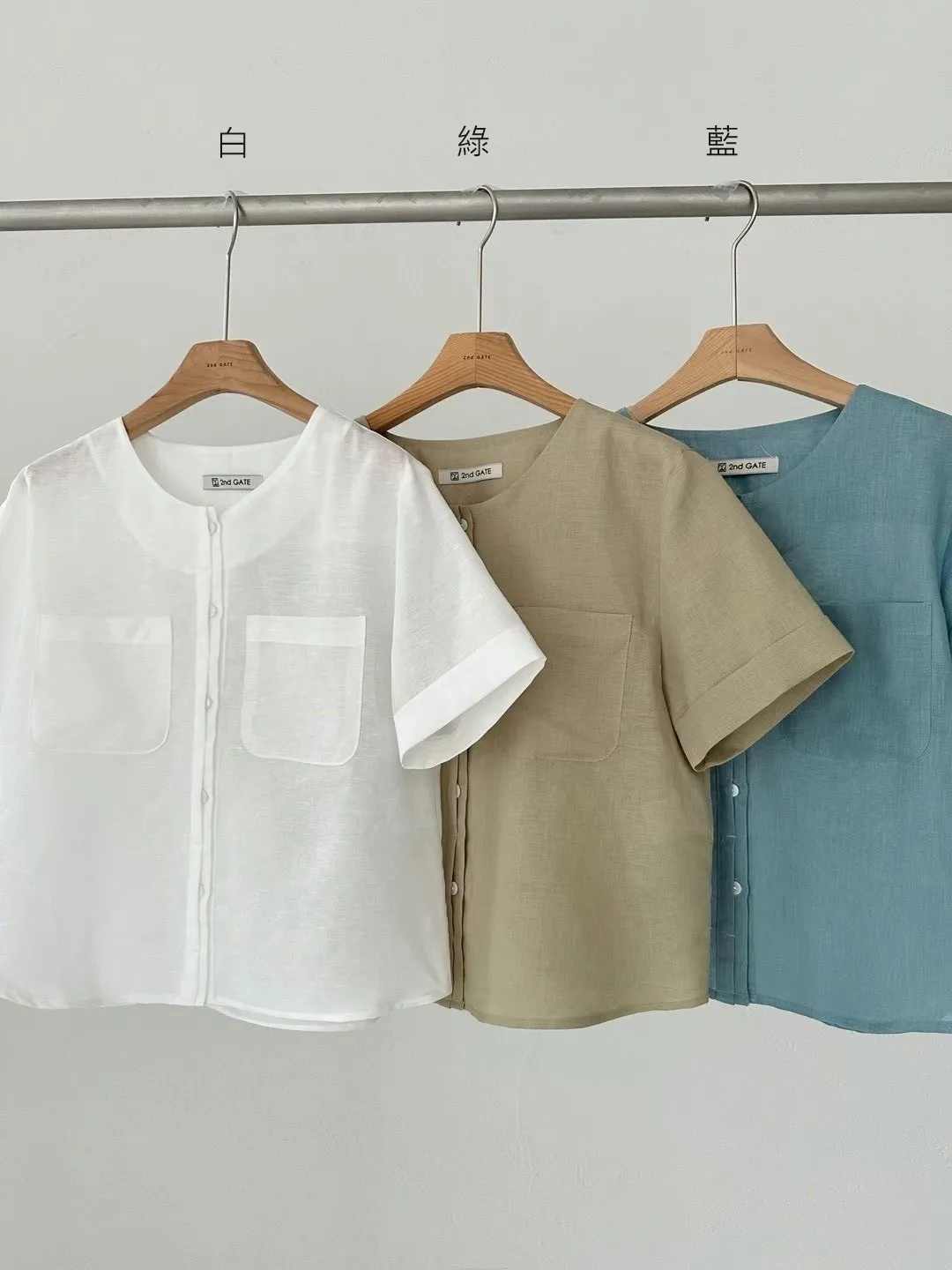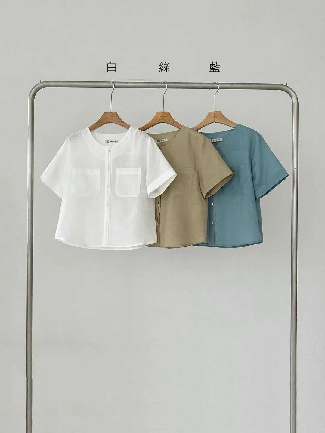 棉+麻 排釦穿脫 薄款透氣 寬鬆空間 白色透光