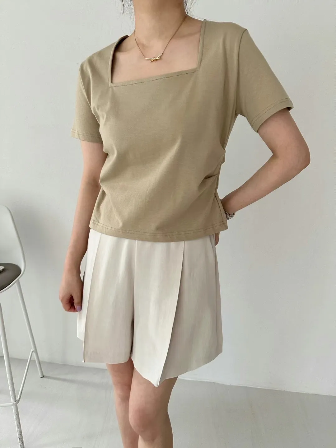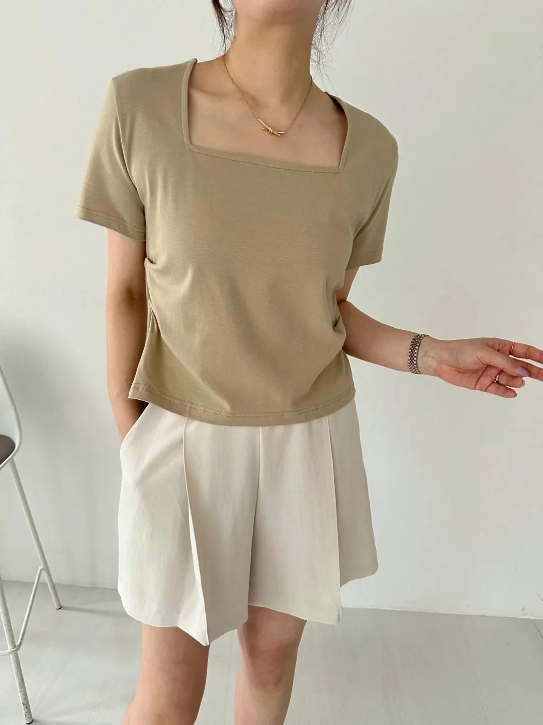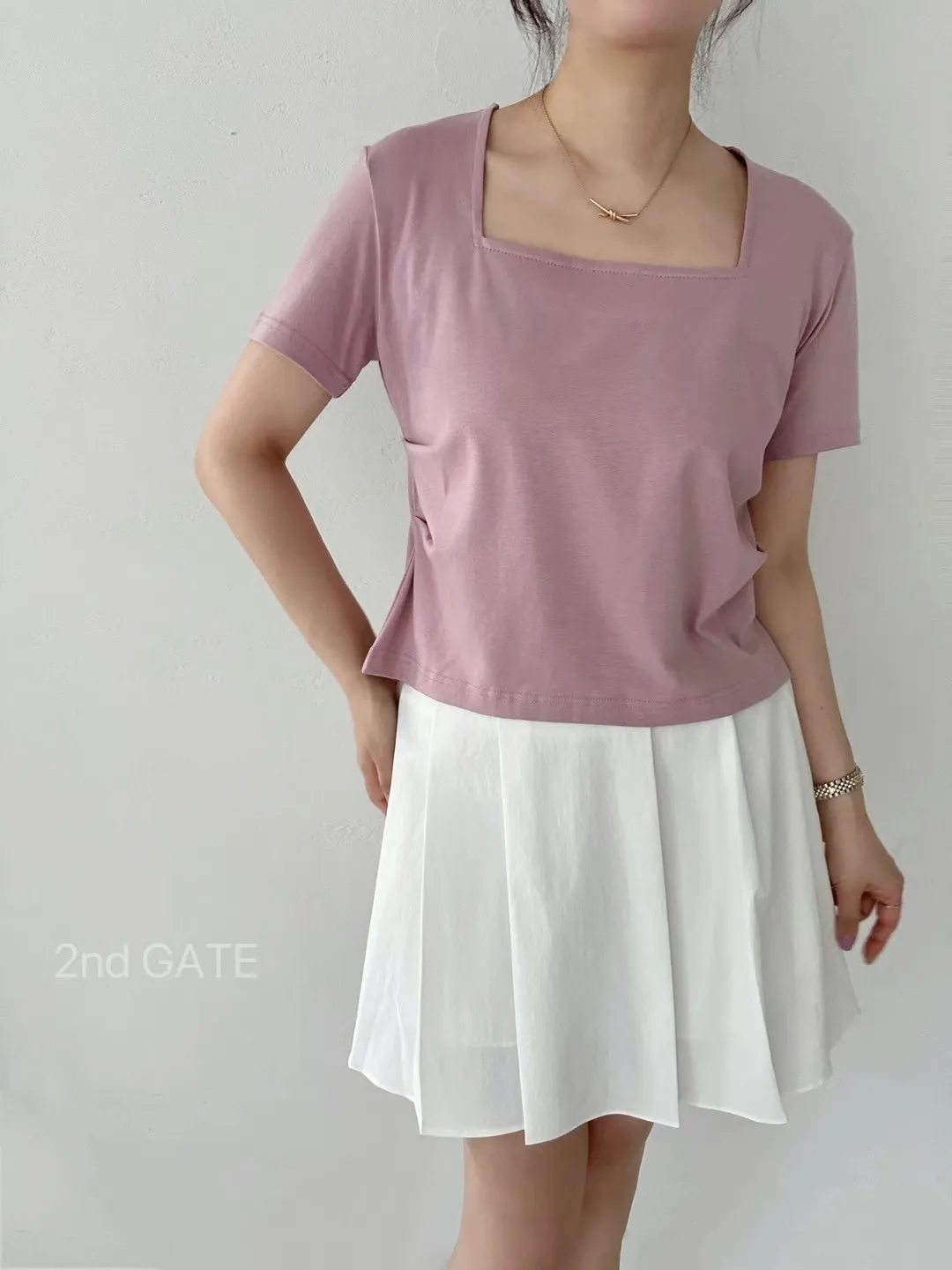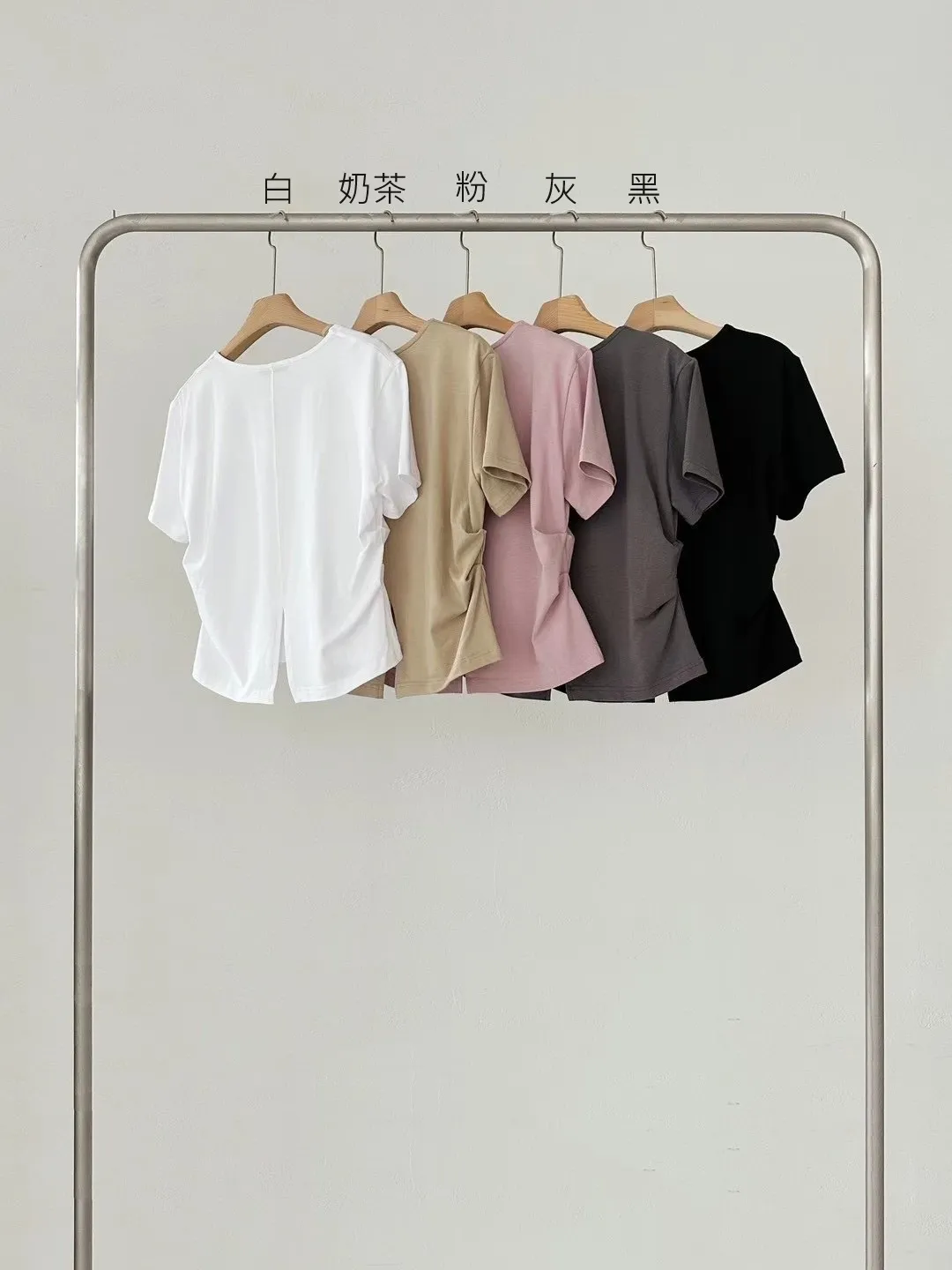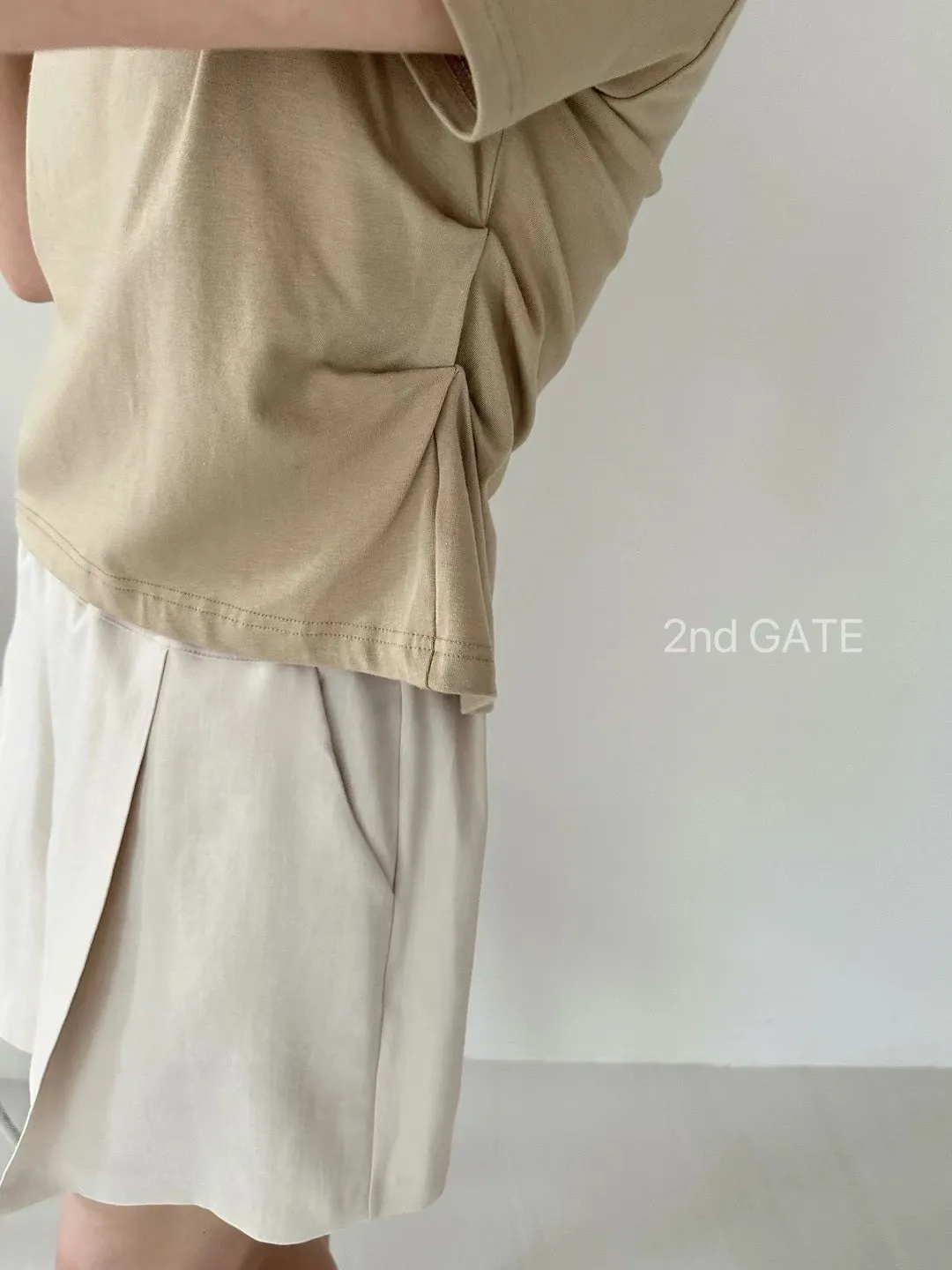 棉+莫代爾,前胸檔片,側腰抓皺收腰 下擺和背面開叉 前短後長