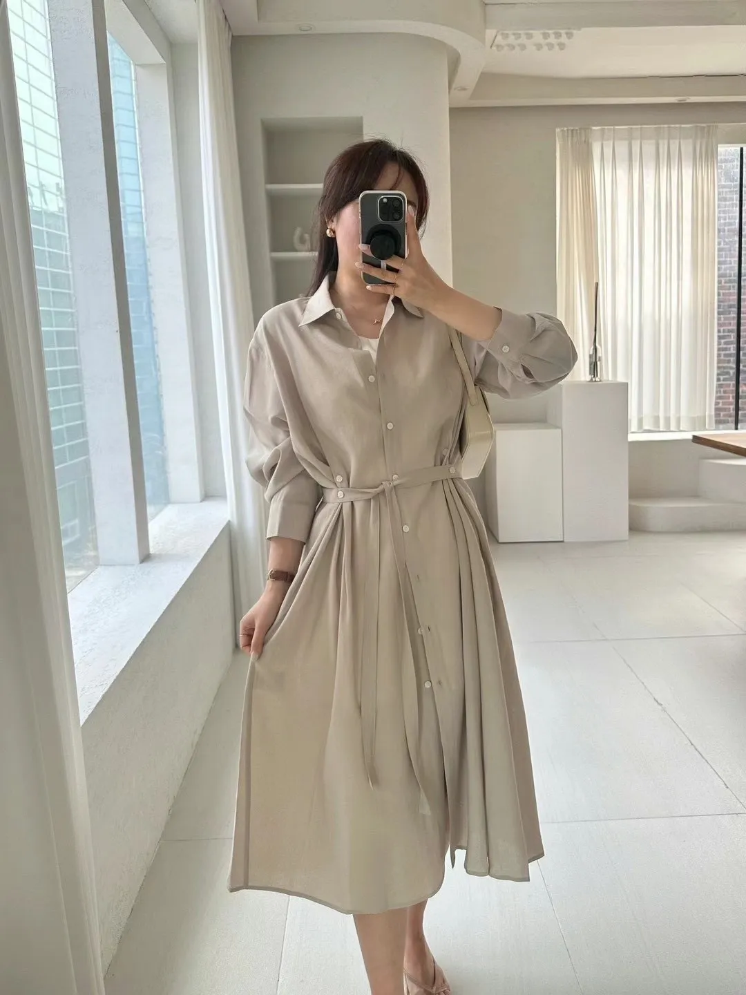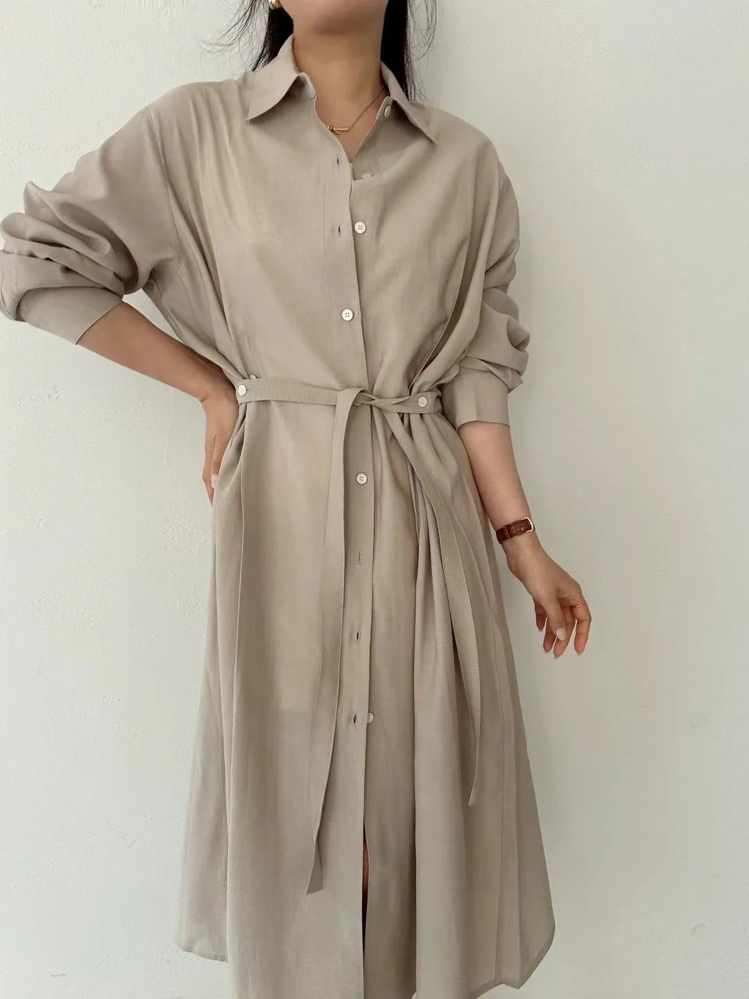 縲縈+聚酯 薄款 排釦穿脫 有腰帶 可洋裝可外套 側腰鈕釦可扣