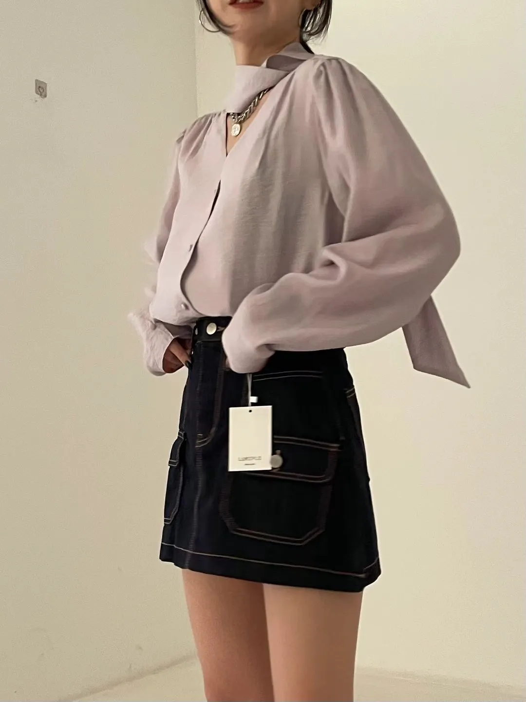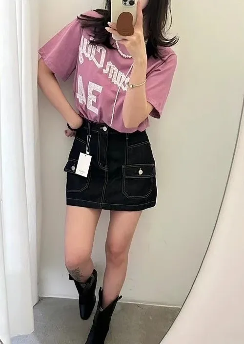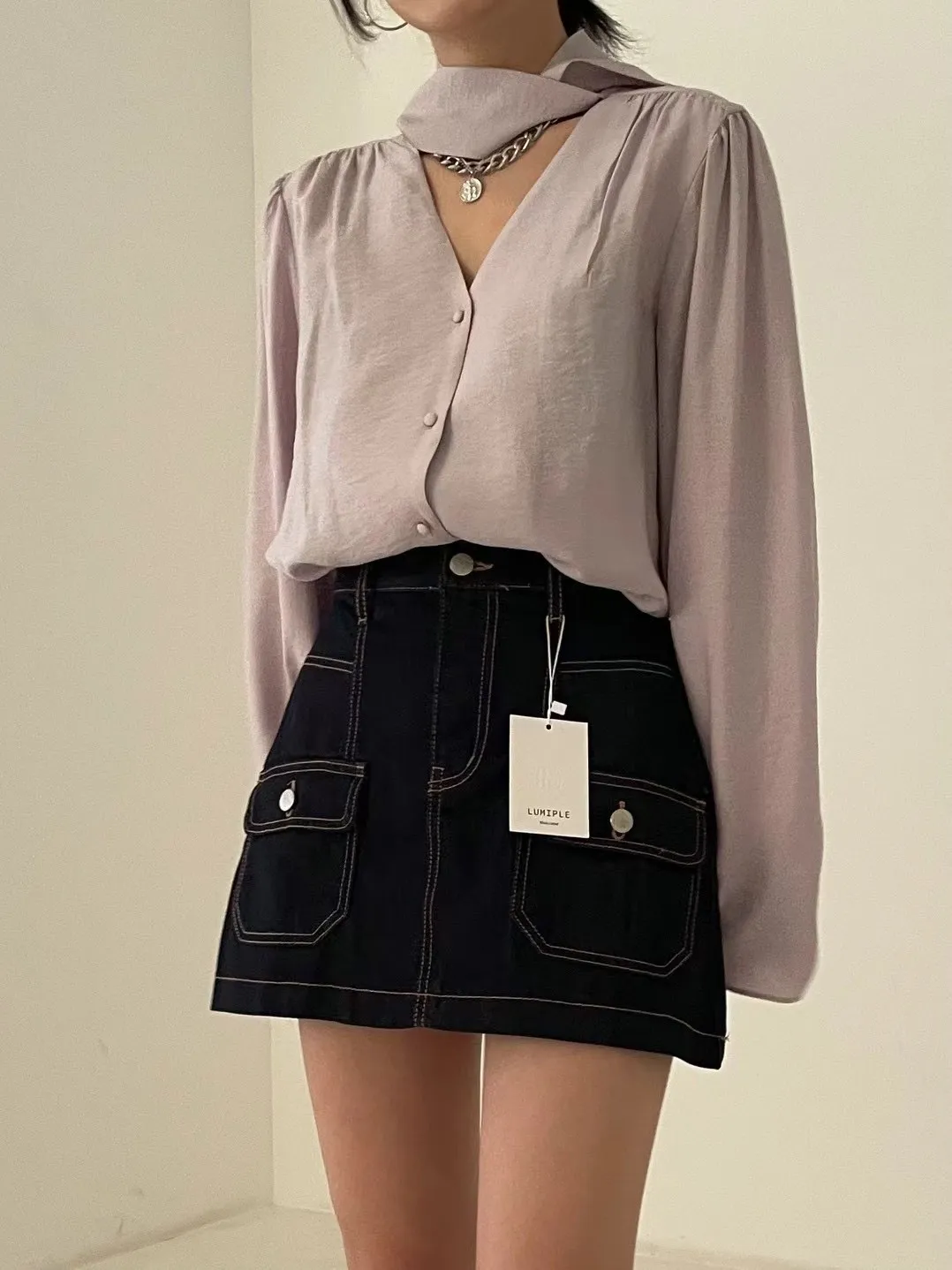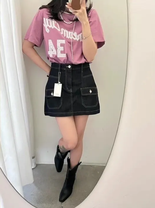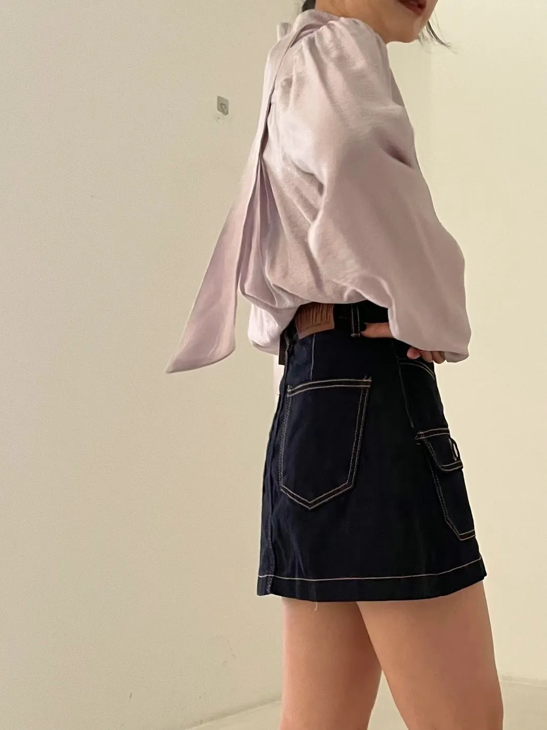 牛仔 質感跳色車線 雙口袋 IU演唱會同款 是褲裙唷