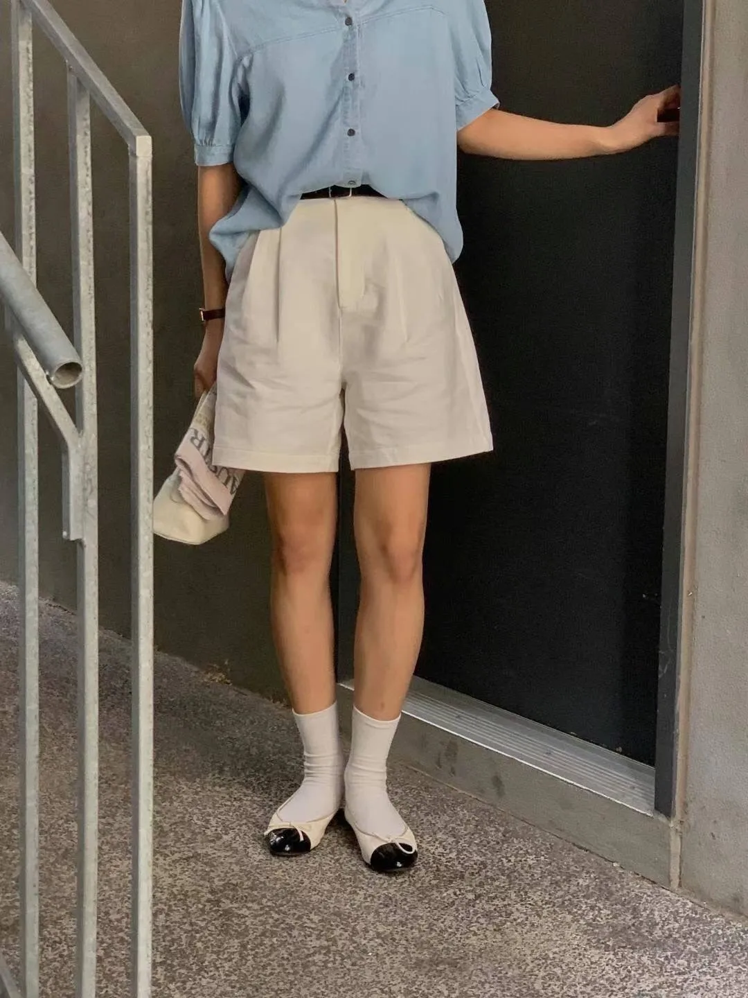 TA523百搭藏釦短褲 白 米 灰 S M L 官網價$960 線上價$930