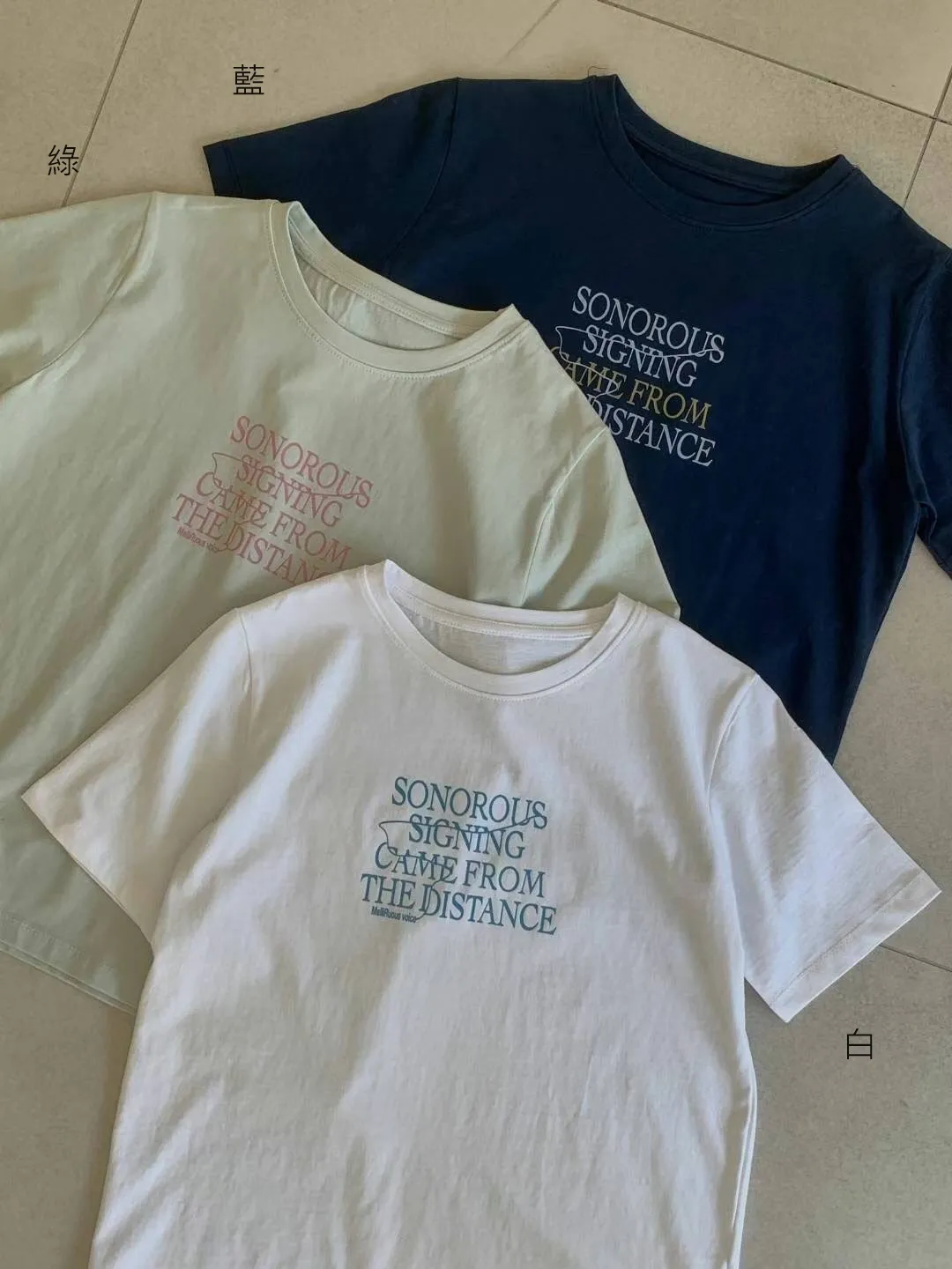 TA528可愛英文sonorous短袖Tshirt 白 藍 綠 官網價$590 線上價$560