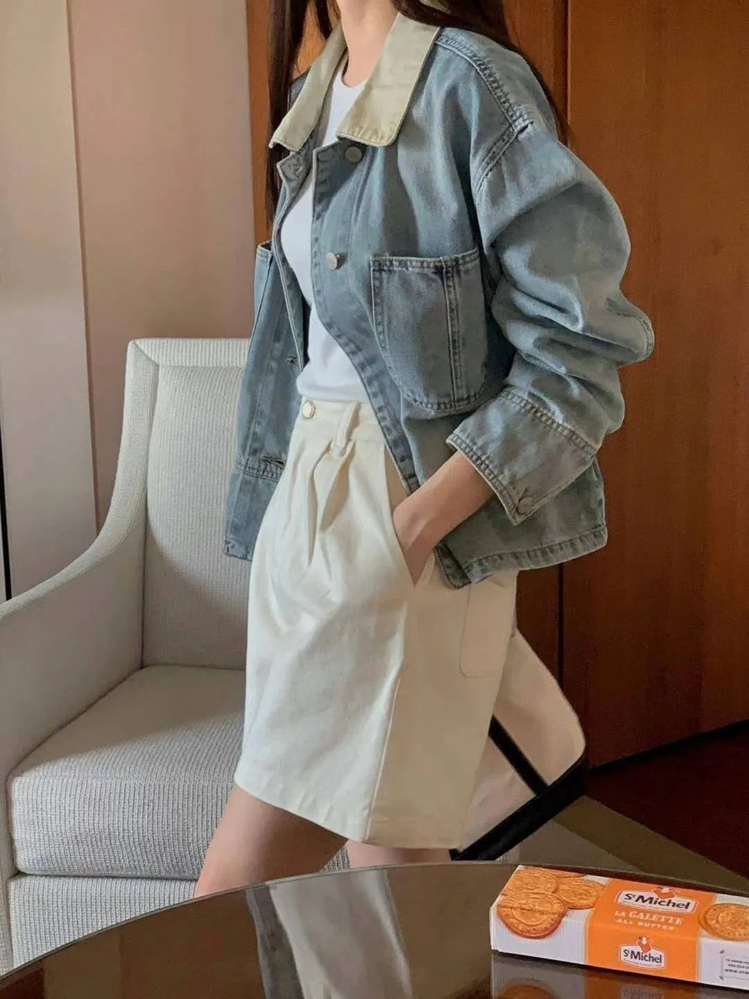 棉 軟牛仔 扣子穿脫 無內裡 薄款夏天可穿 復古刷色 折袖也有跳色