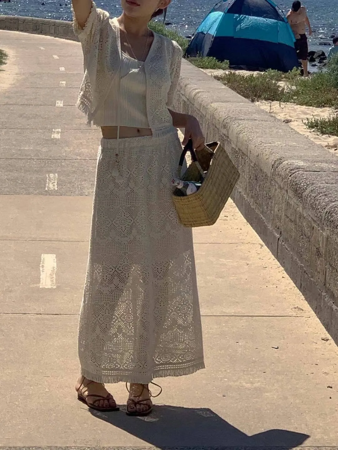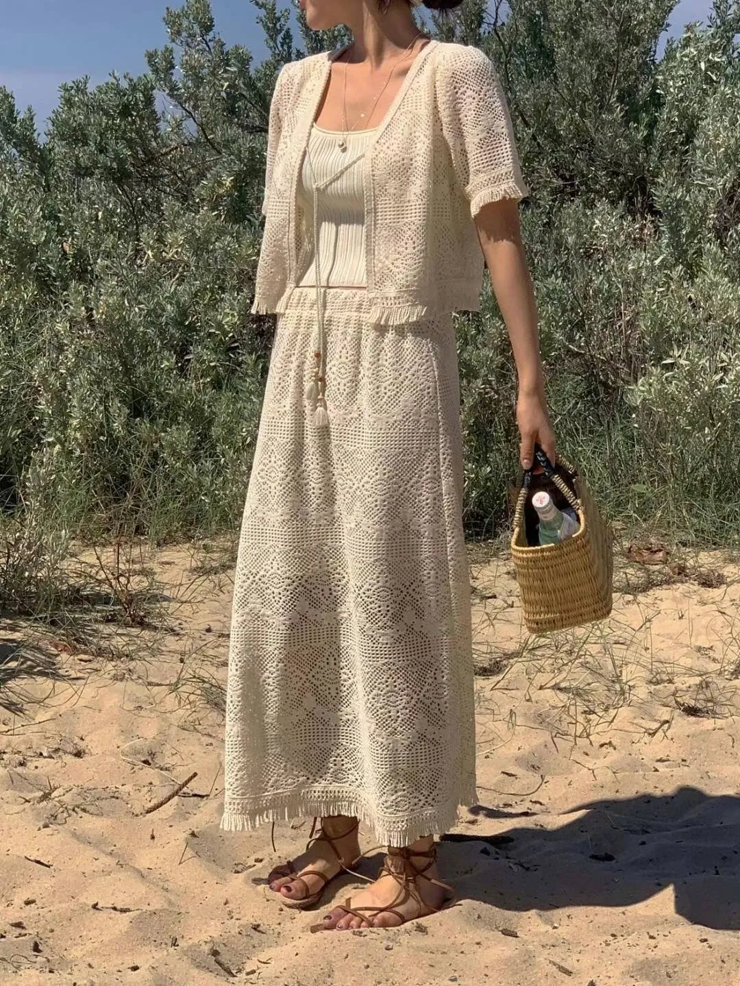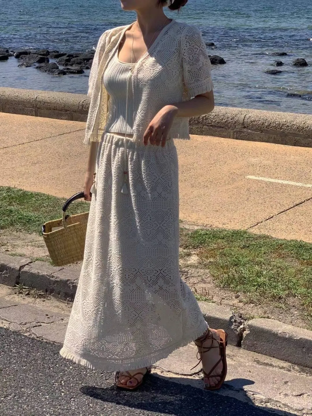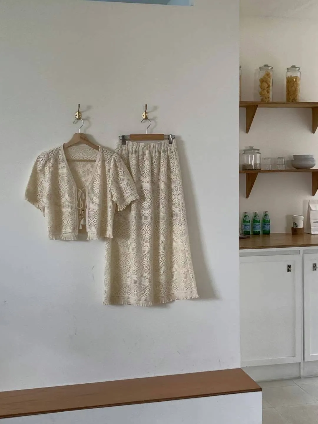 TA541套裝的簍空編織短袖外套 官網價$870 線上價$840
