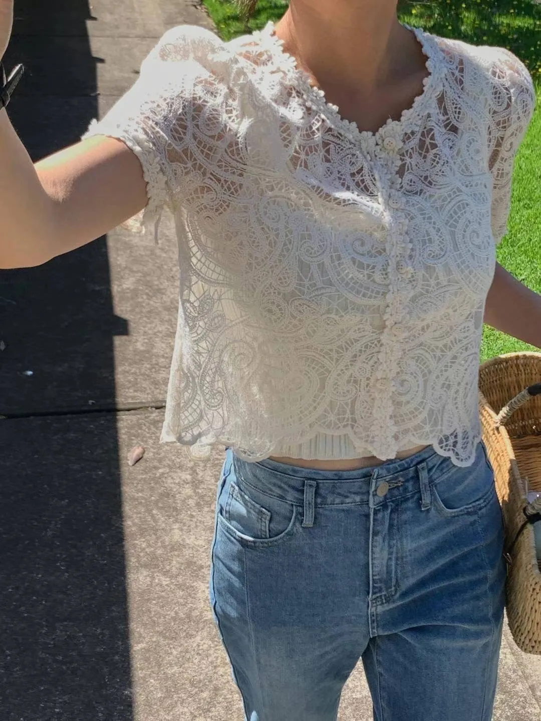 TA543極美透光網紗蕾絲上衣小外套 官網價$880 線上價$850