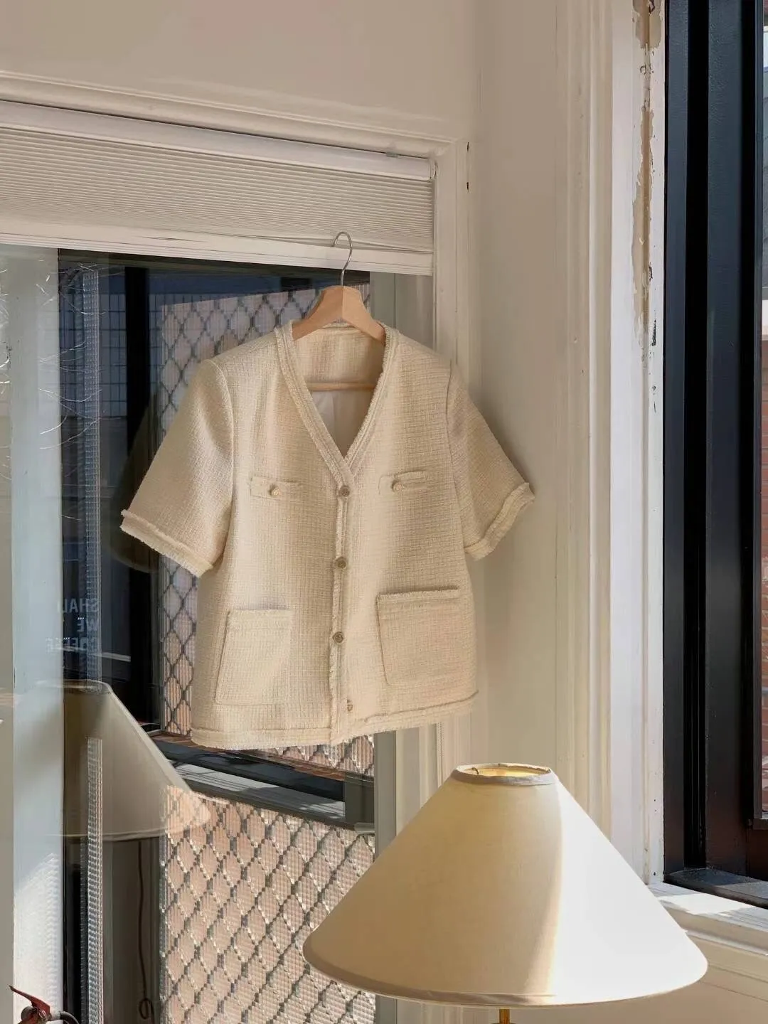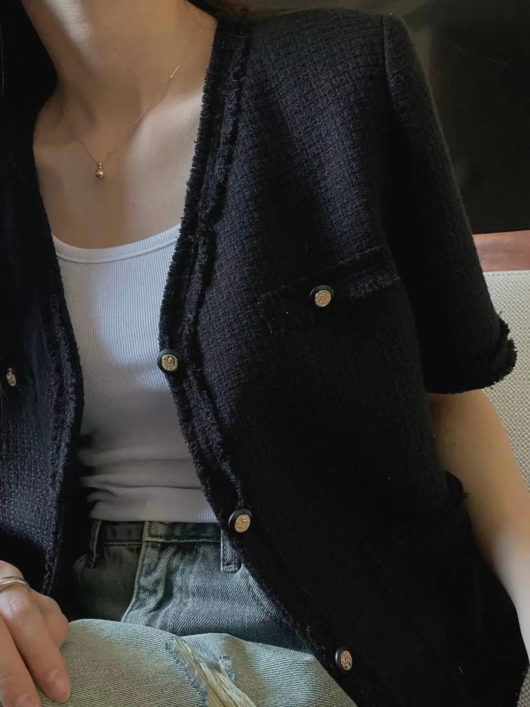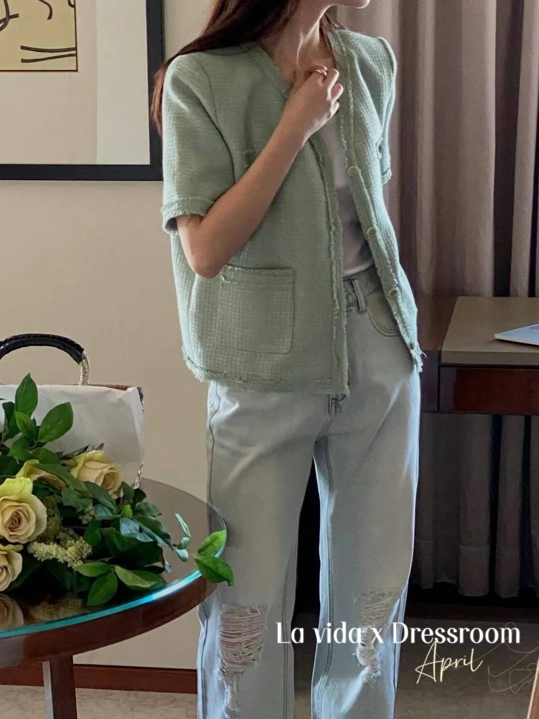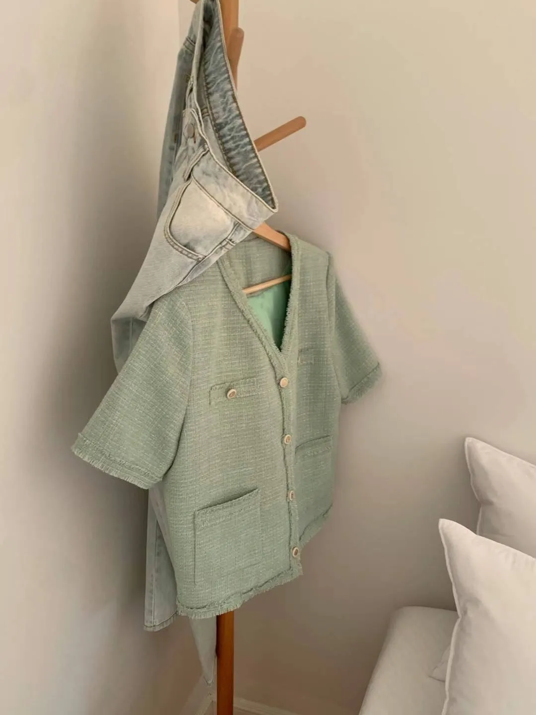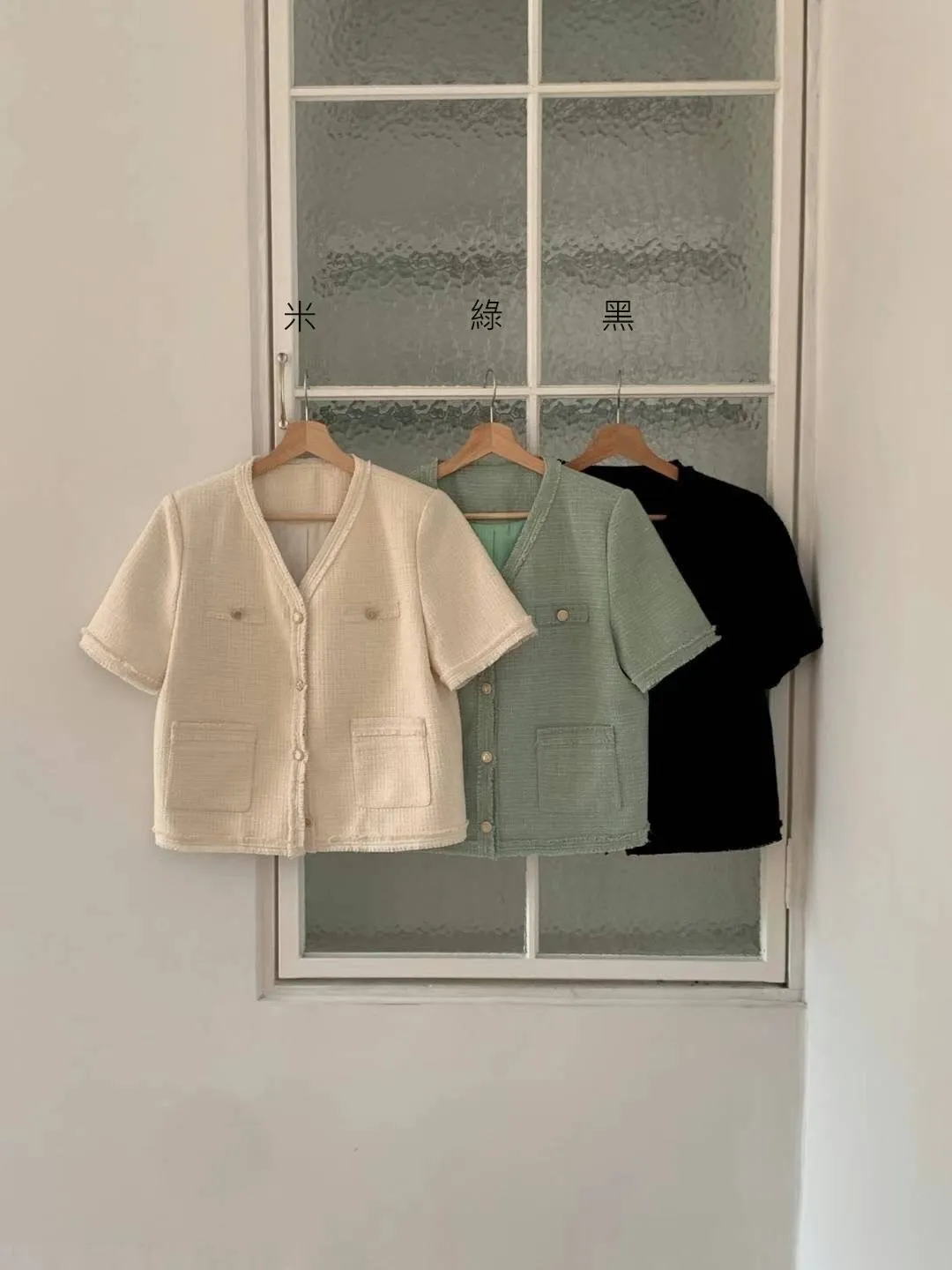 TA556雙口袋小香風短袖外套 米 綠 黑 S M 官網價$1480 線上價$1450