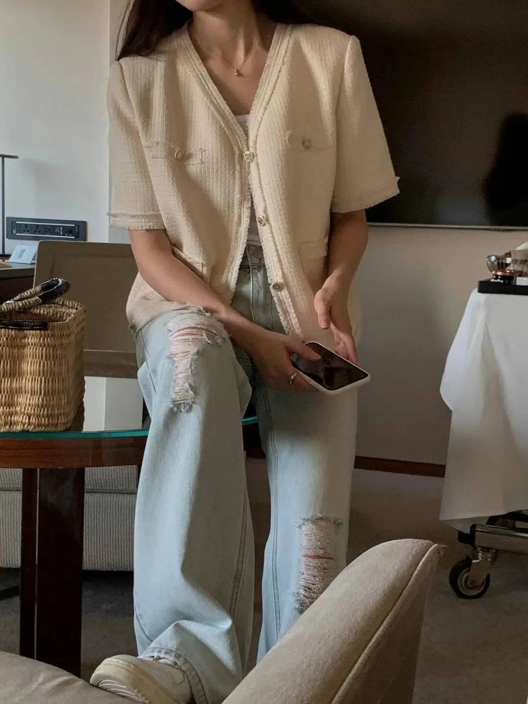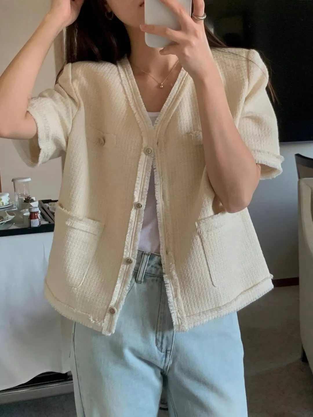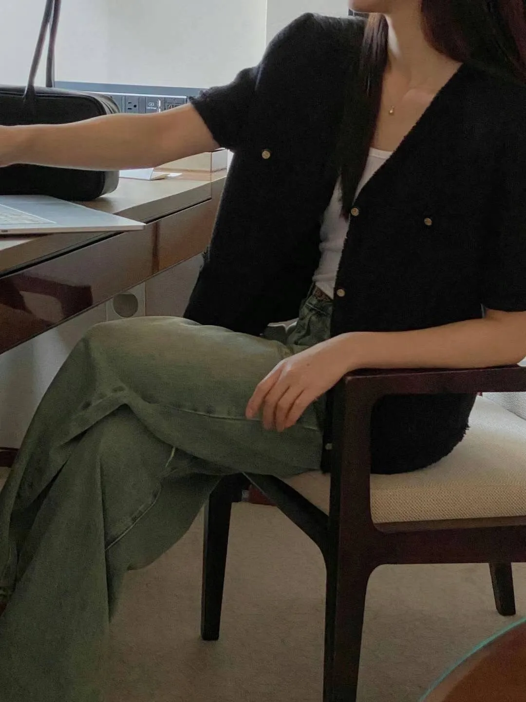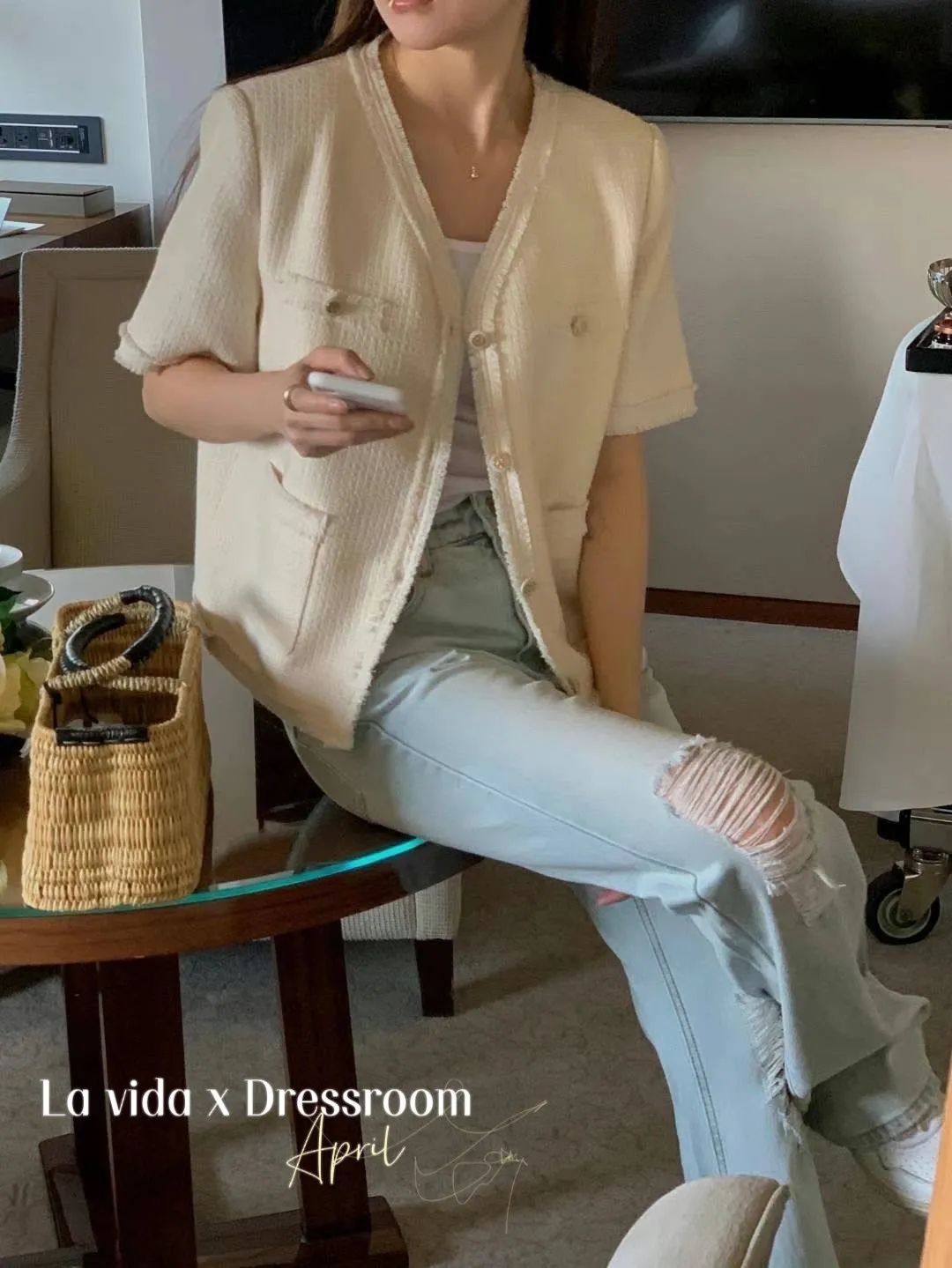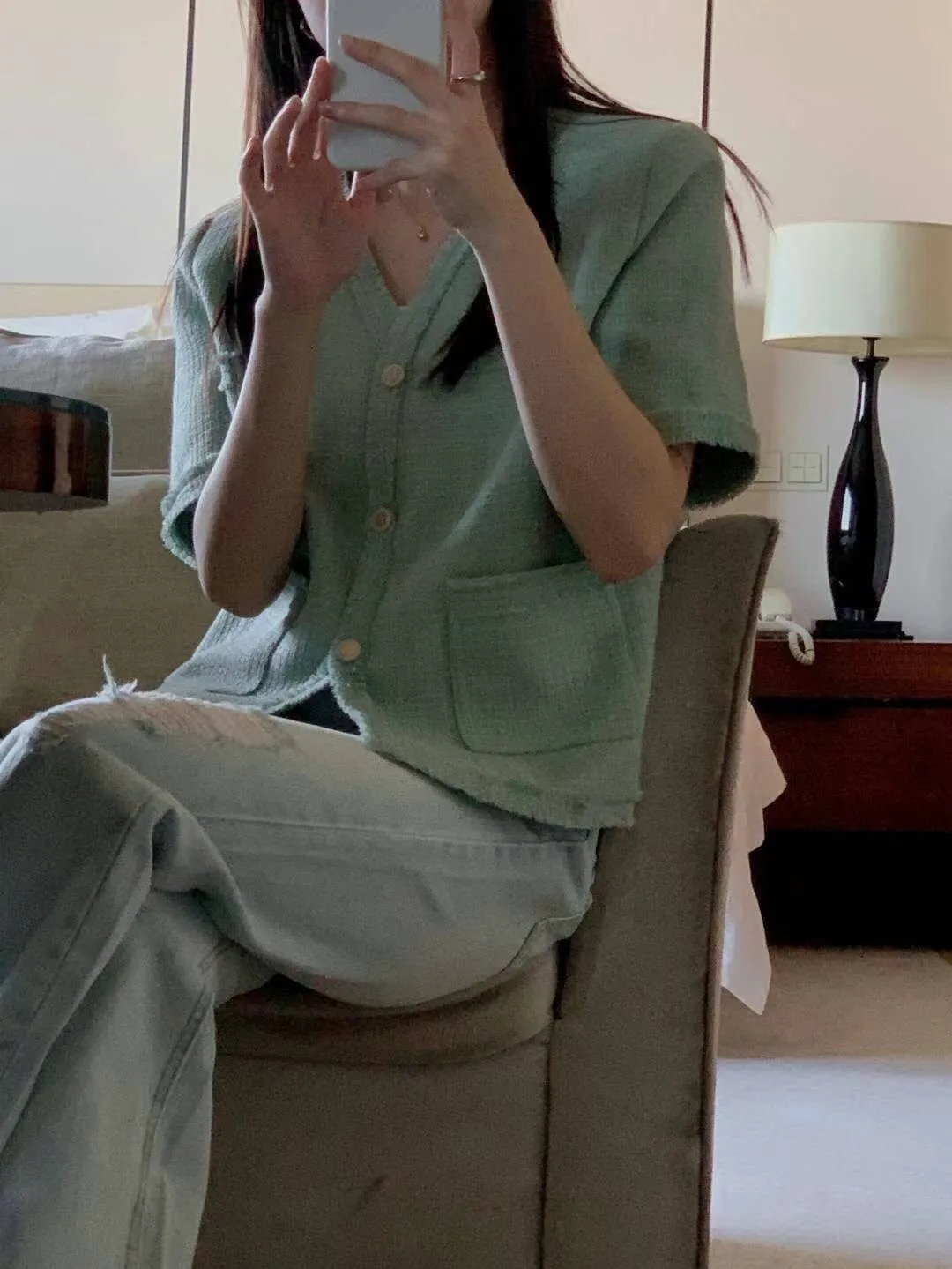 TA556雙口袋小香風短袖外套 米 綠 黑 S M 官網價$1480 線上價$1450