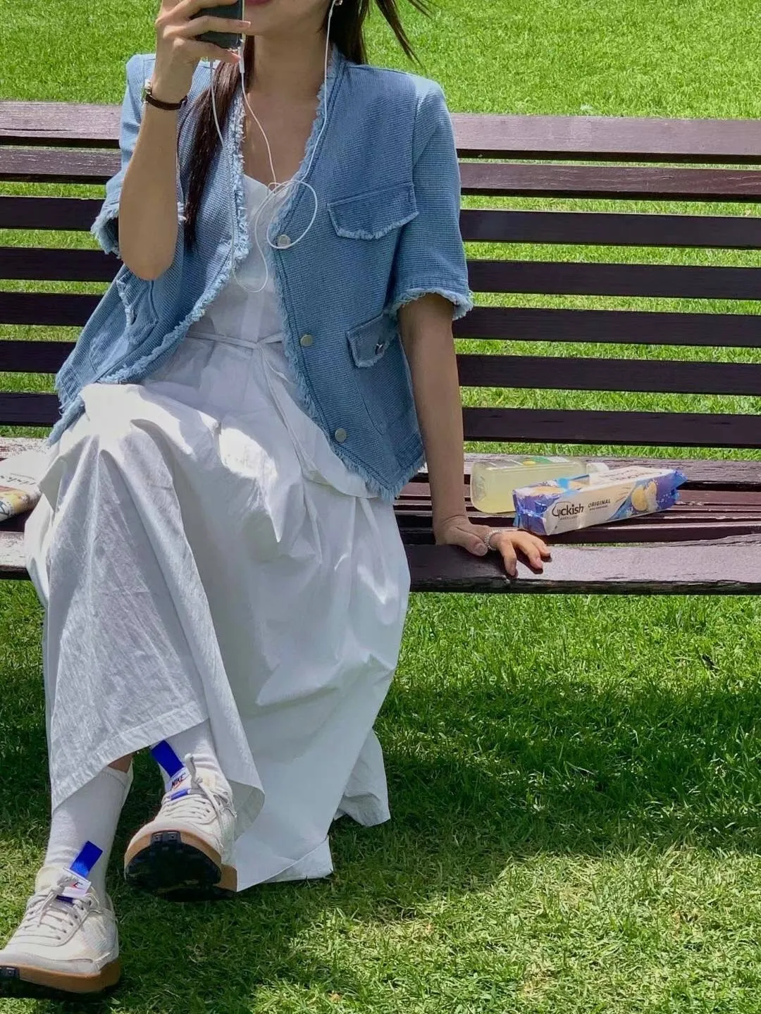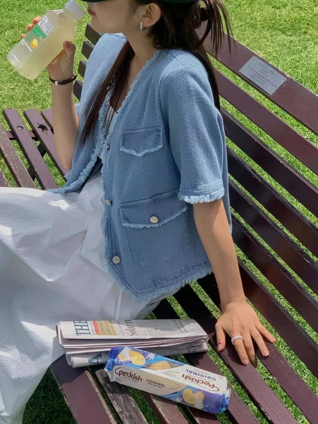 TA559牛仔休閒小香風短袖外套 S M 官網價$1290 線上價$1260