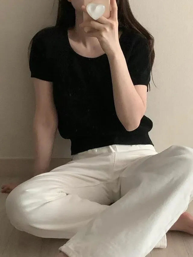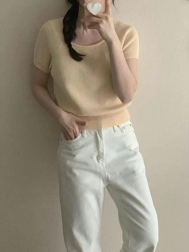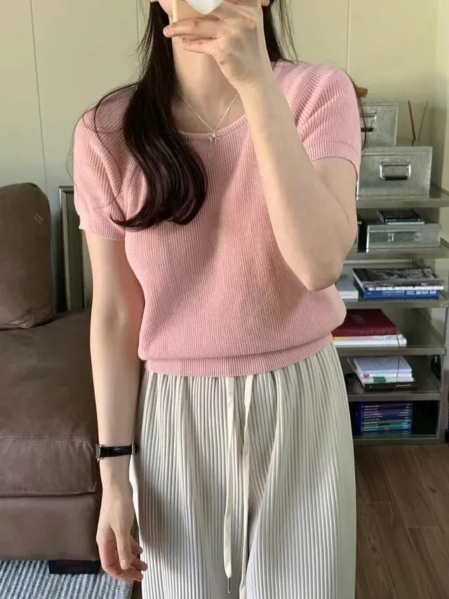 TA571馬卡龍短袖針織上衣 白 粉 黃 綠 黑 官網價$599 線上價$569