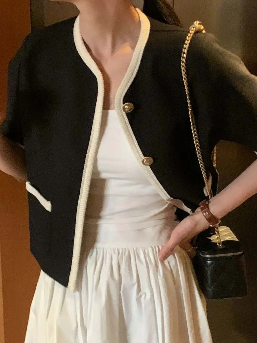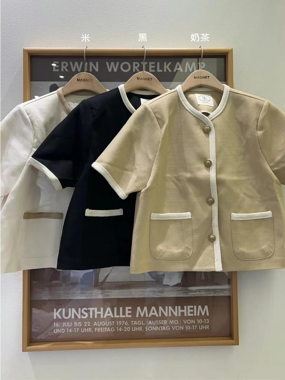 TA580跳色滾邊雙口袋小香風外套 米 黑 奶茶 官網價$1660 線上價$1630
